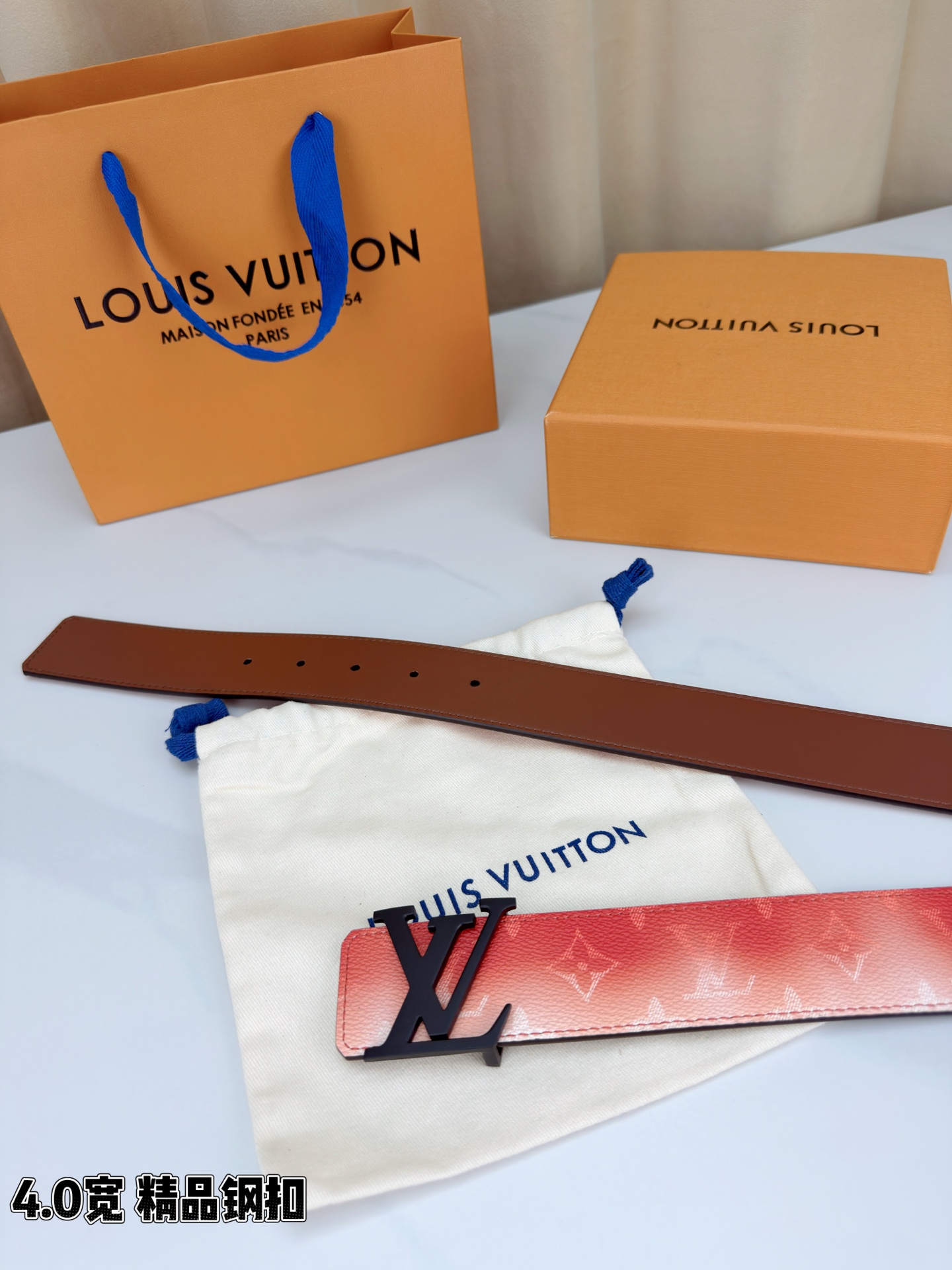 这款皮带是AAAAA 1:1 质量 (非常棒). 使用了和原版一模一样的材料. 商标部分也保持了和路易威登/Louis Vuitton一样. 图片拍摄是实物皮带拍摄, 您所收到的实物保证和我们图片一模一样.