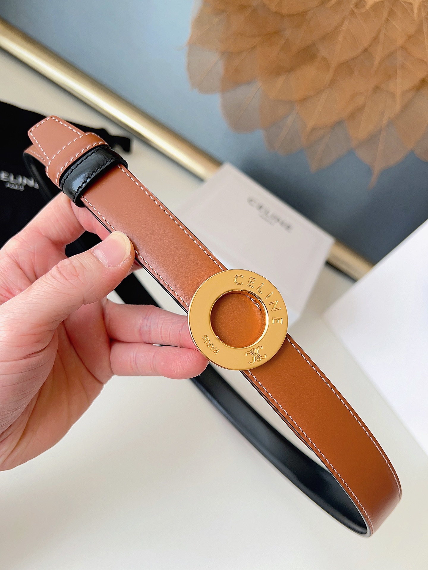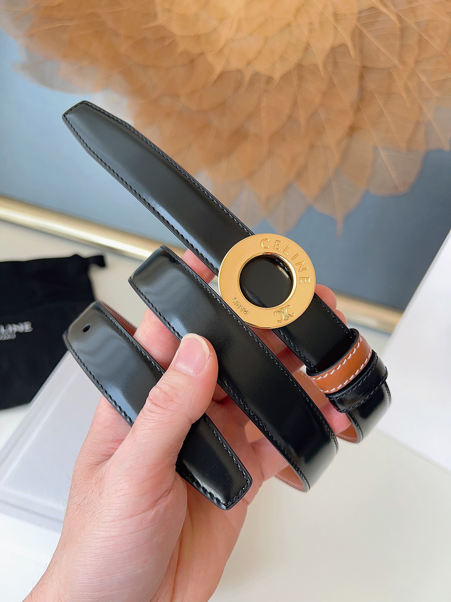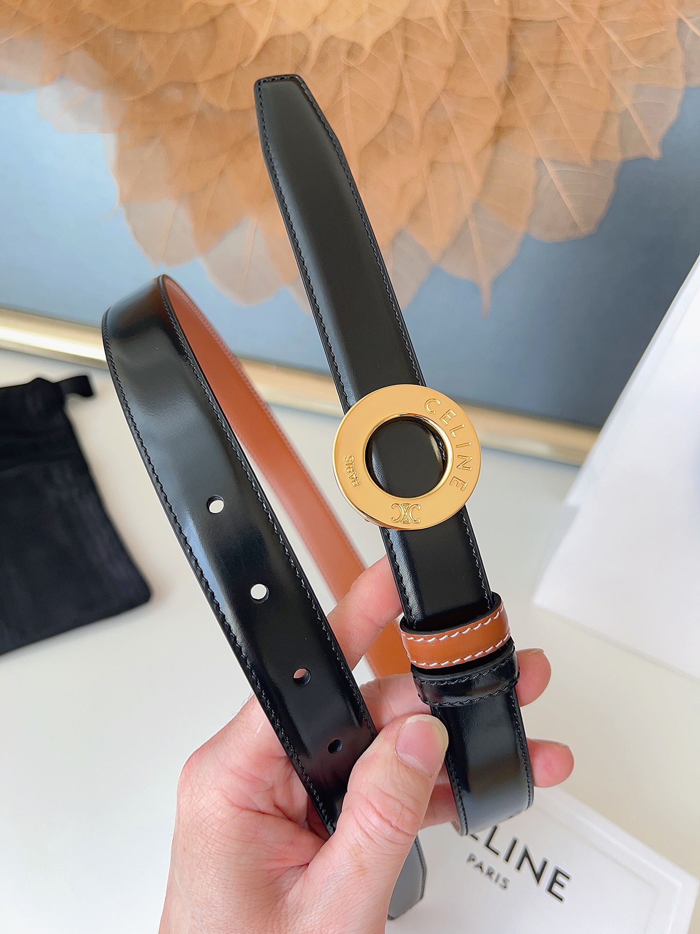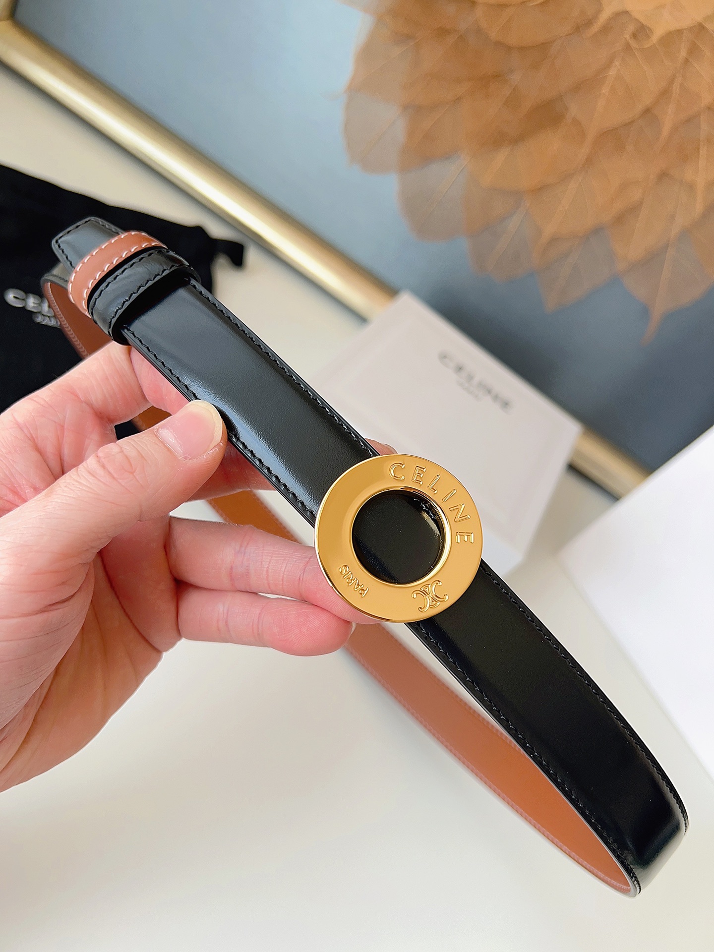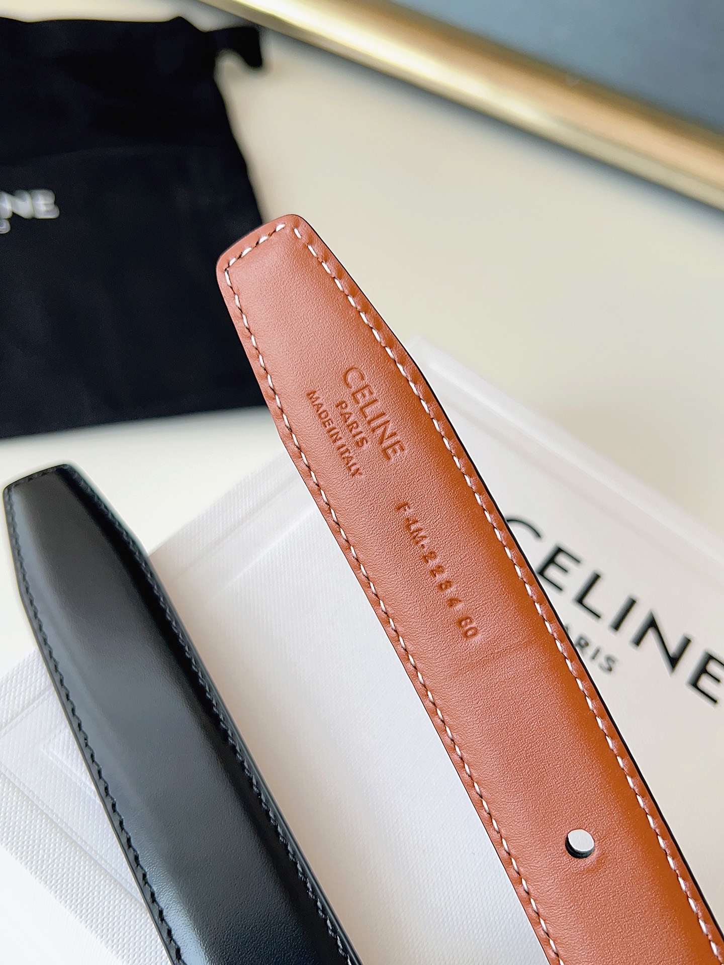 这款皮带是AAAAA 1:1 质量 (非常棒). 使用了和原版一模一样的材料. 商标部分也保持了和思琳/Celine一样. 图片拍摄是实物皮带拍摄, 您所收到的实物保证和我们图片一模一样.