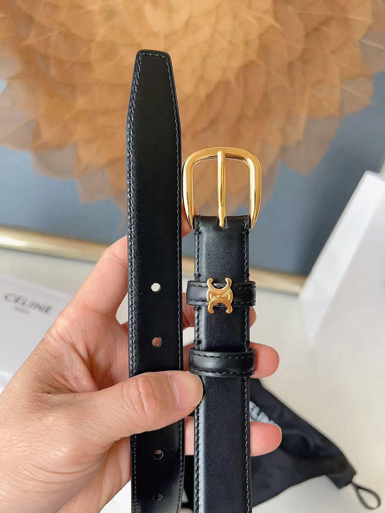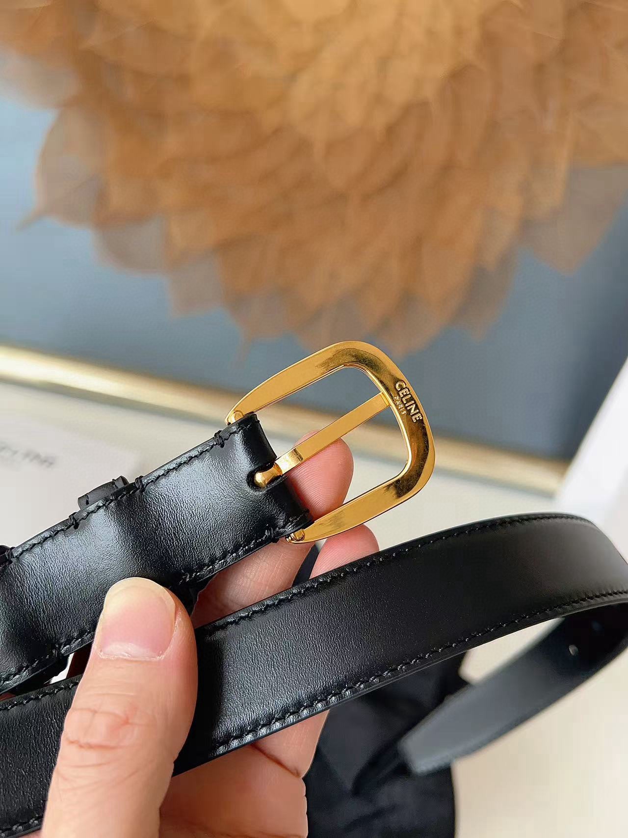 这款皮带是AAAAA 1:1 质量 (非常棒). 使用了和原版一模一样的材料. 商标部分也保持了和思琳/Celine一样. 图片拍摄是实物皮带拍摄, 您所收到的实物保证和我们图片一模一样.