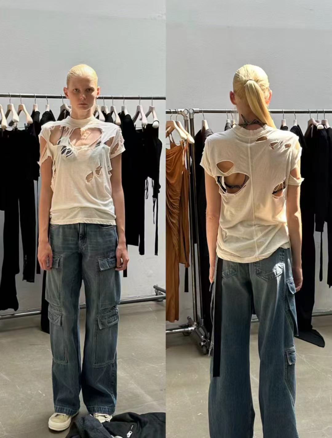 这款衣服是AAAAA 1:1 质量 (非常棒). 使用了和原版一模一样的材料. 商标部分也保持了和里克·欧文斯/Rick Owens一样. 图片拍摄是实物衣服拍摄, 您所收到的实物保证和我们图片一模一样.