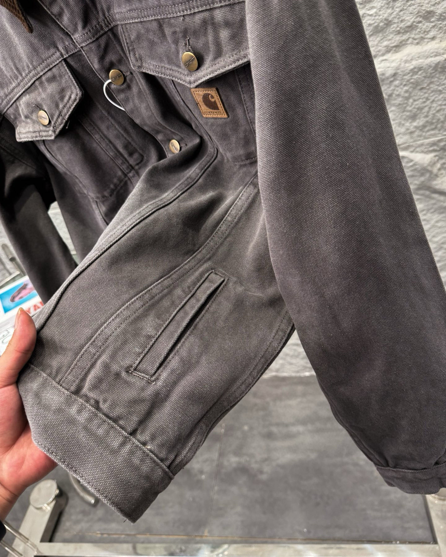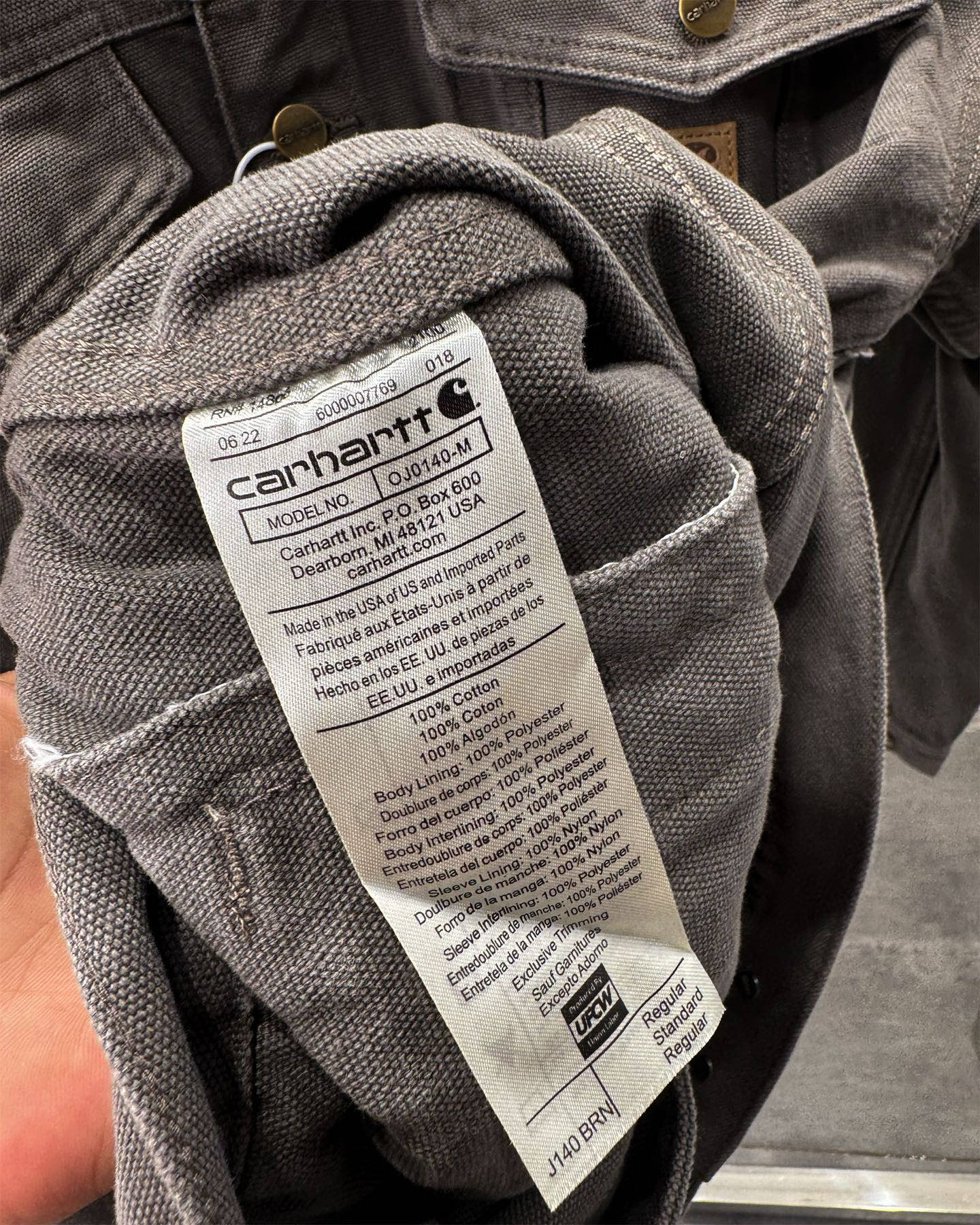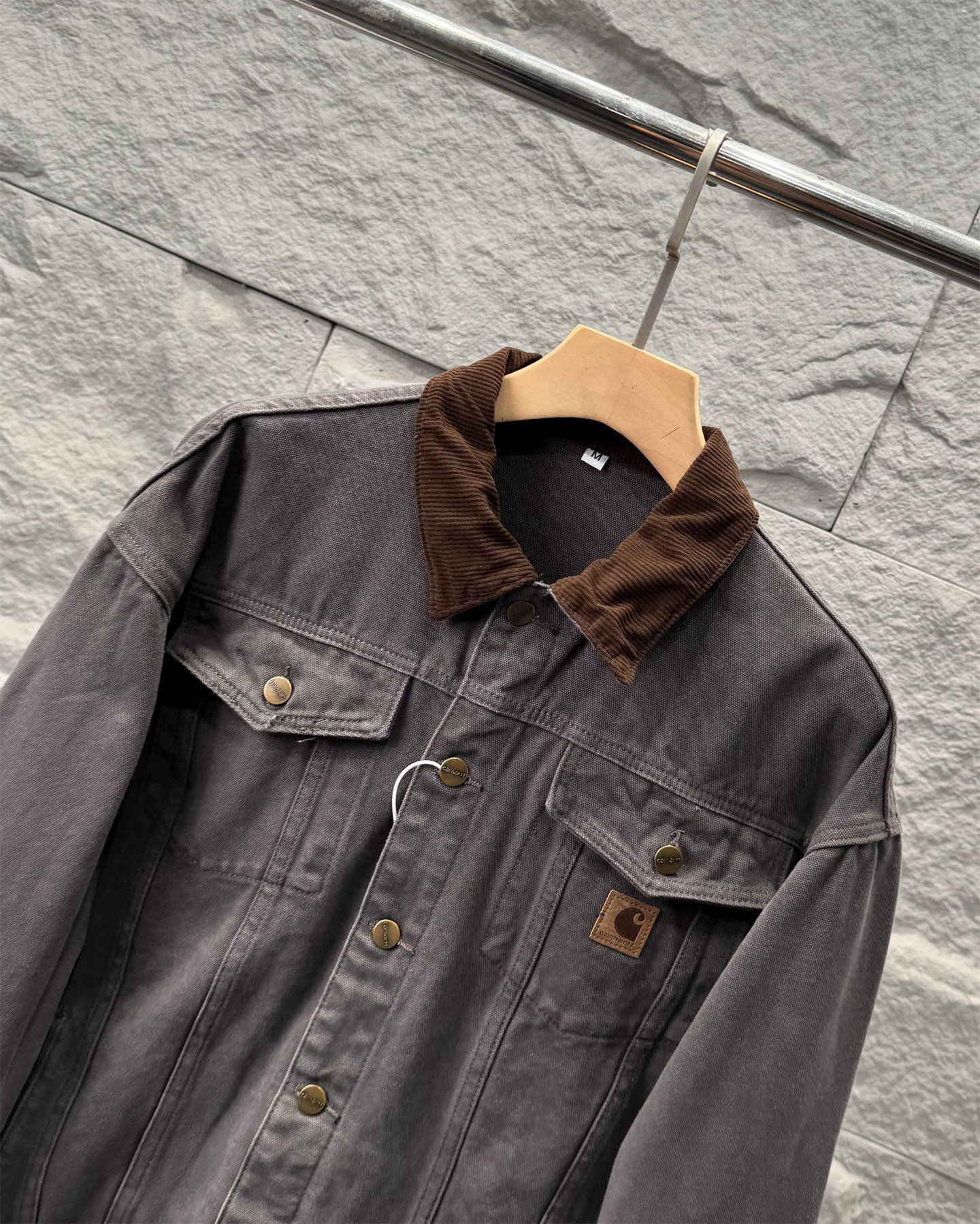 这款衣服是AAAAA 1:1 质量 (非常棒). 使用了和原版一模一样的材料. 商标部分也保持了和Carhartt一样. 图片拍摄是实物衣服拍摄, 您所收到的实物保证和我们图片一模一样.