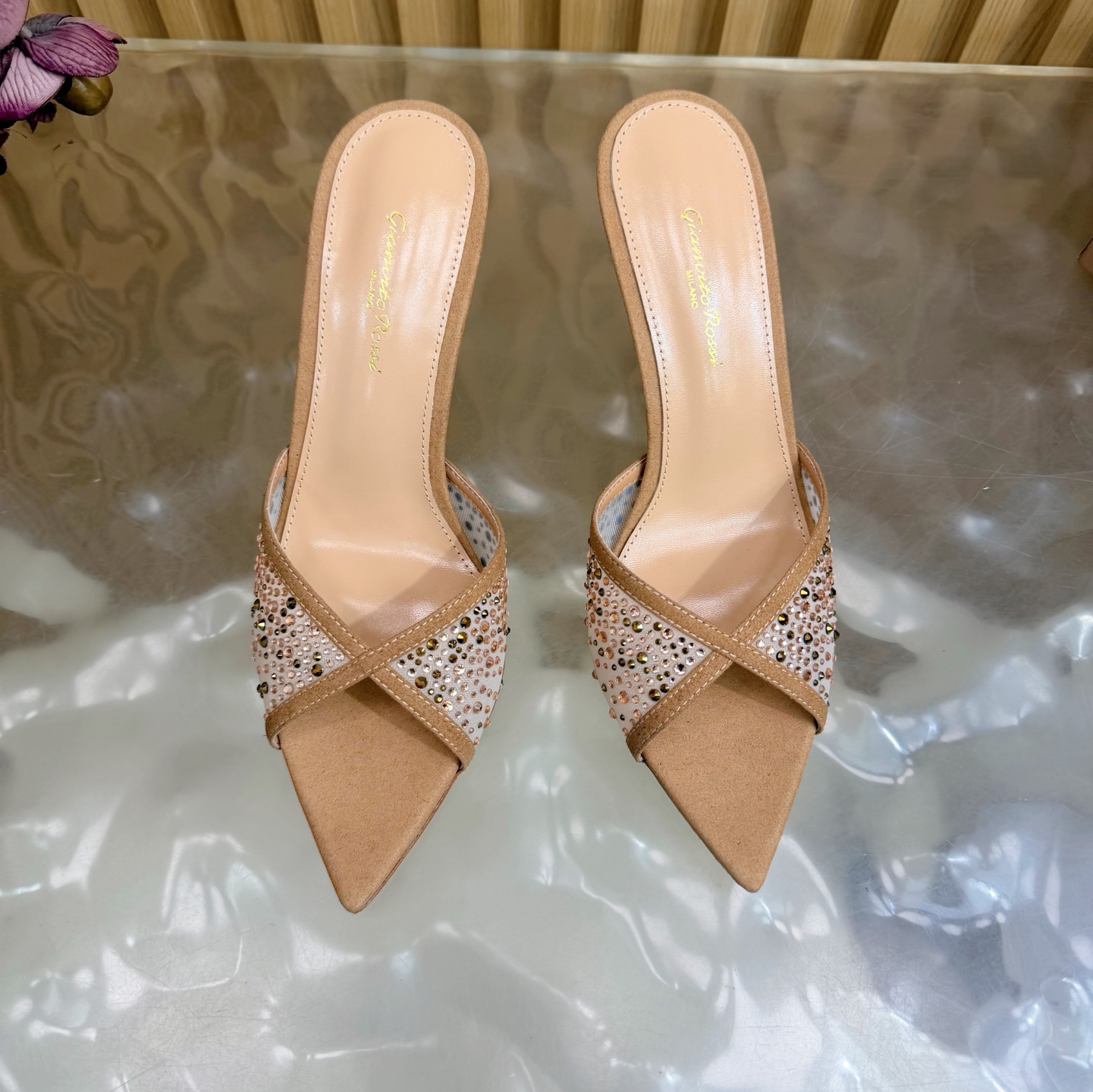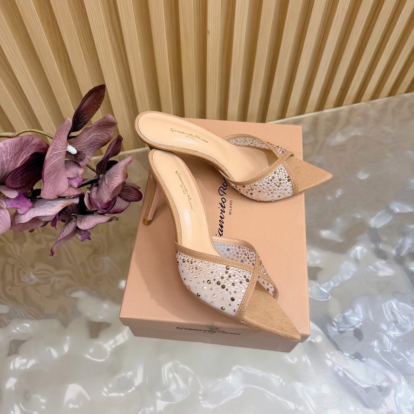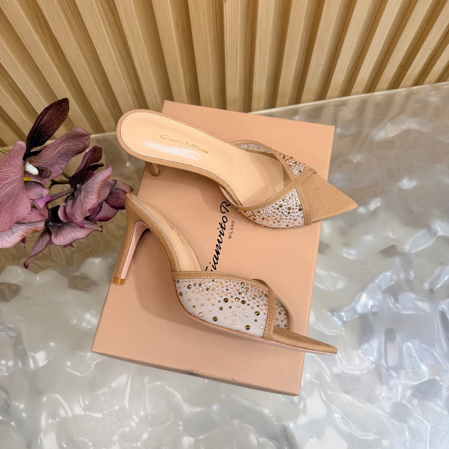 这款鞋子是AAAAA 1:1 质量 (非常棒). 使用了和原版一模一样的材料. 商标部分也保持了和Gianvito Rossi一样. 图片拍摄是实物鞋子拍摄, 您所收到的实物保证和我们图片一模一样.