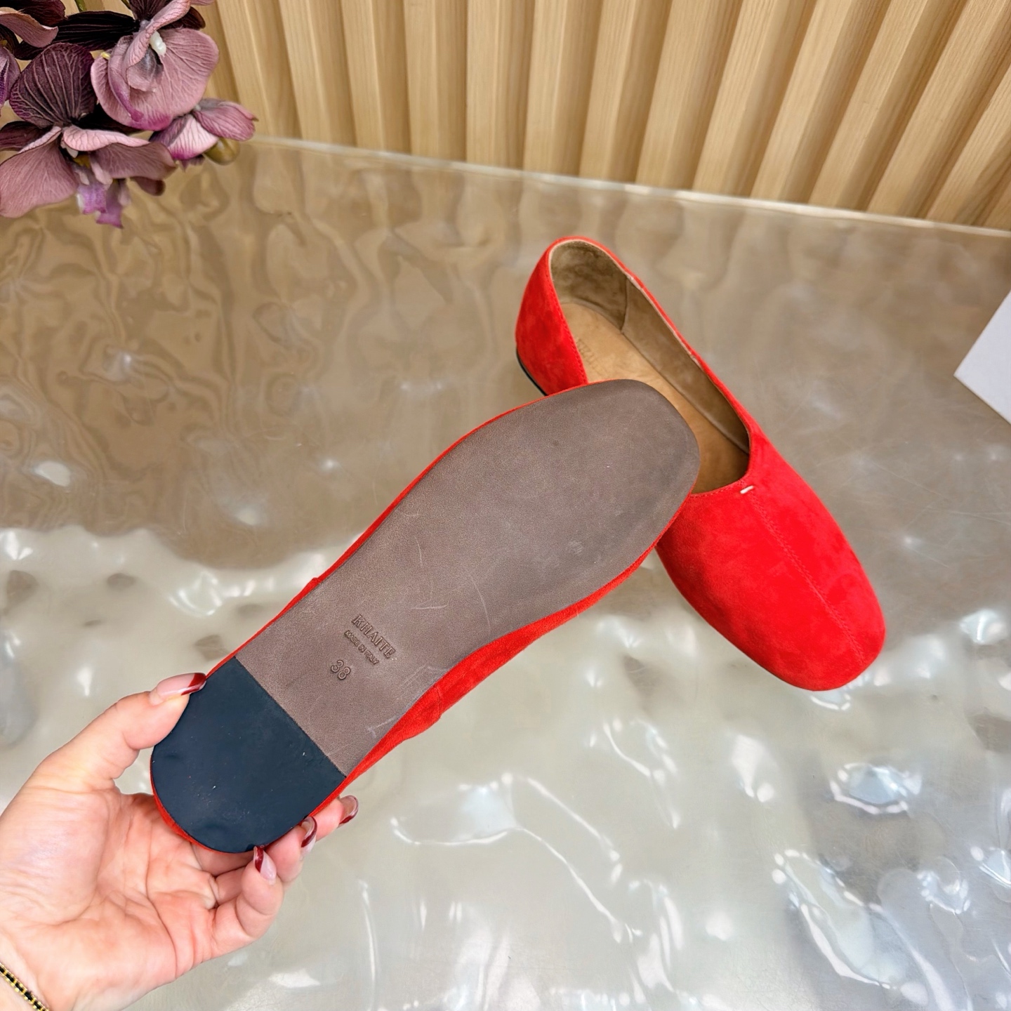这款鞋子是AAAAA 1:1 质量 (非常棒). 使用了和原版一模一样的材料. 商标部分也保持了和Khaite一样. 图片拍摄是实物鞋子拍摄, 您所收到的实物保证和我们图片一模一样.
