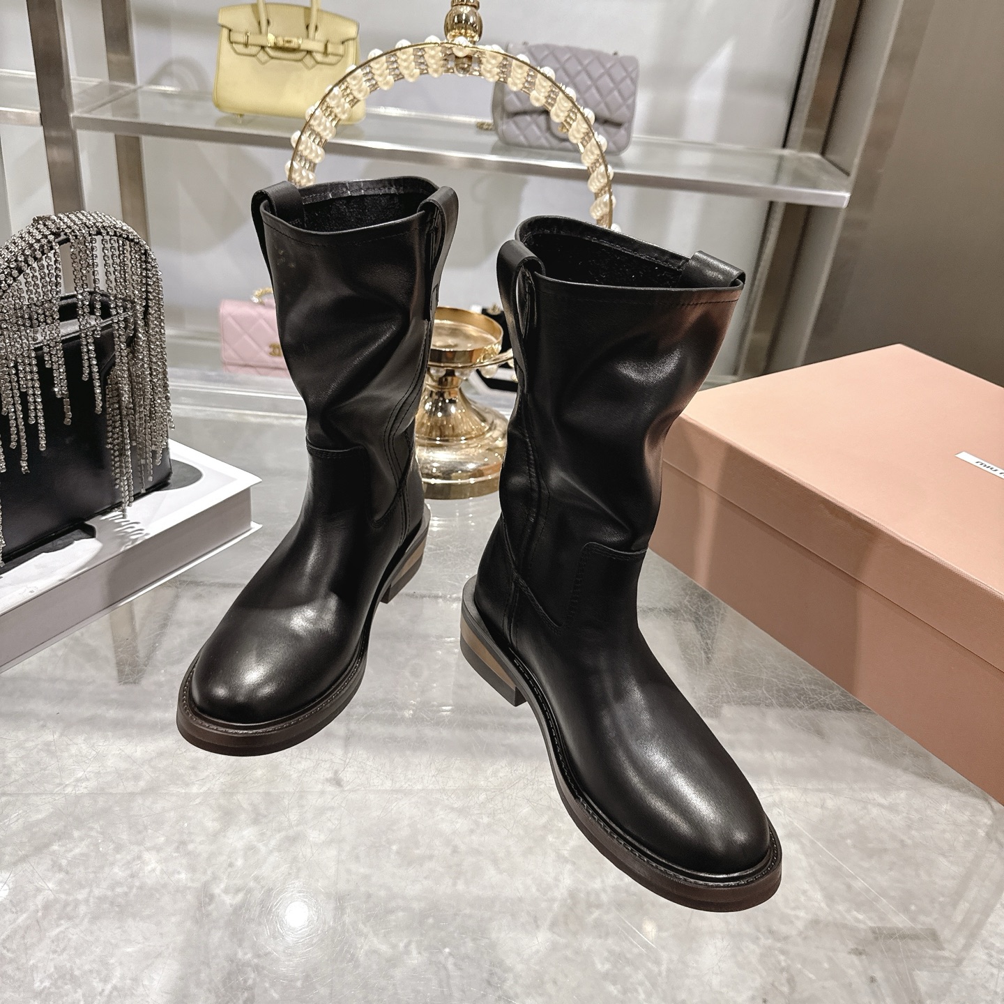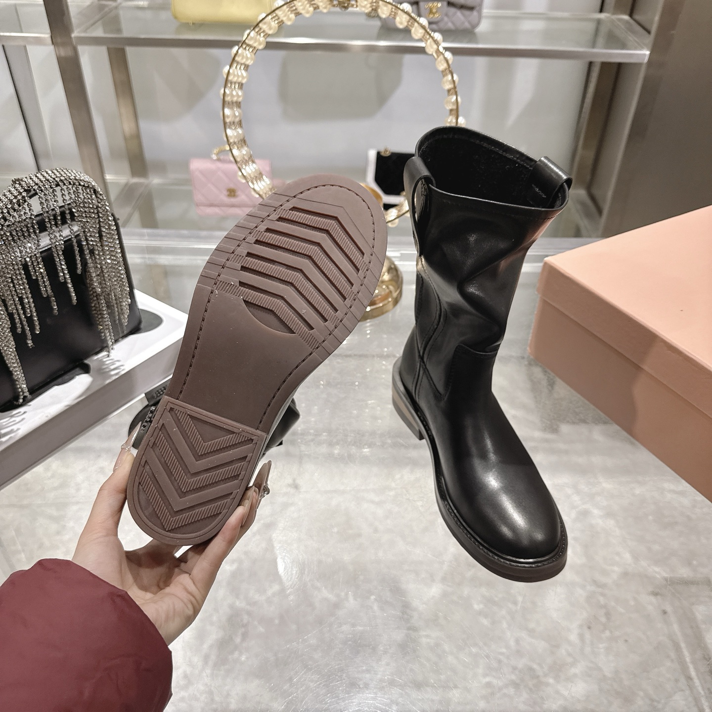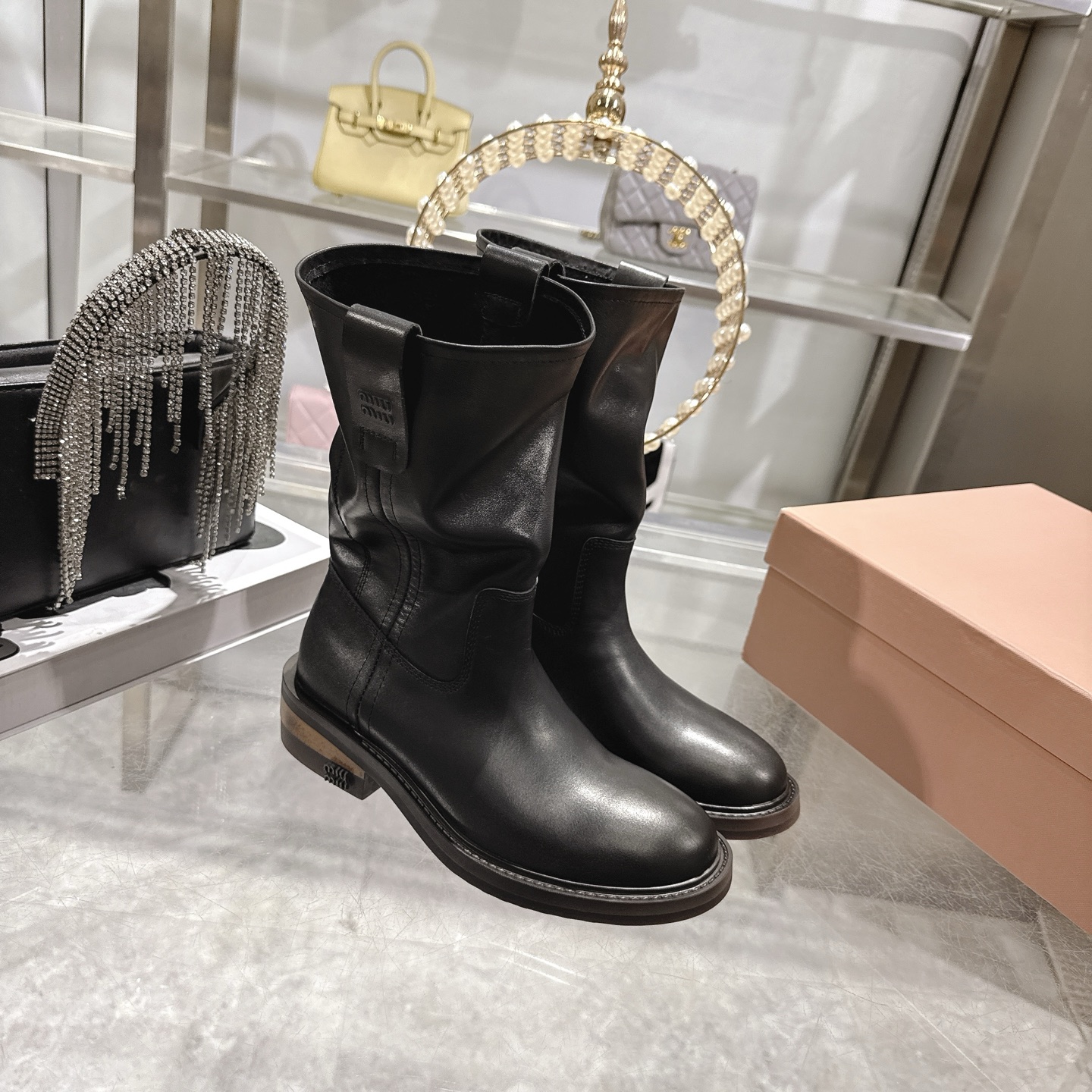 这款鞋子是AAAAA 1:1 质量 (非常棒). 使用了和原版一模一样的材料. 商标部分也保持了和缪缪/Miu Miu一样. 图片拍摄是实物鞋子拍摄, 您所收到的实物保证和我们图片一模一样.