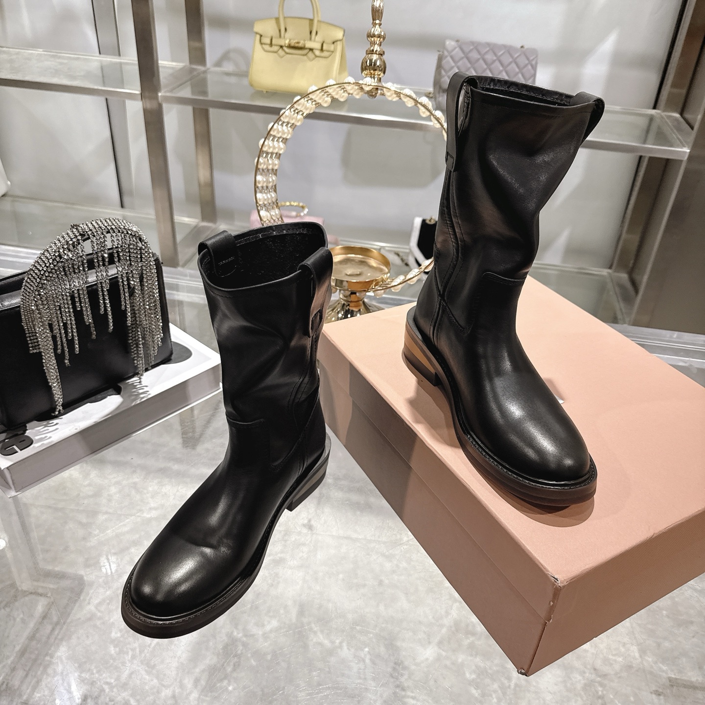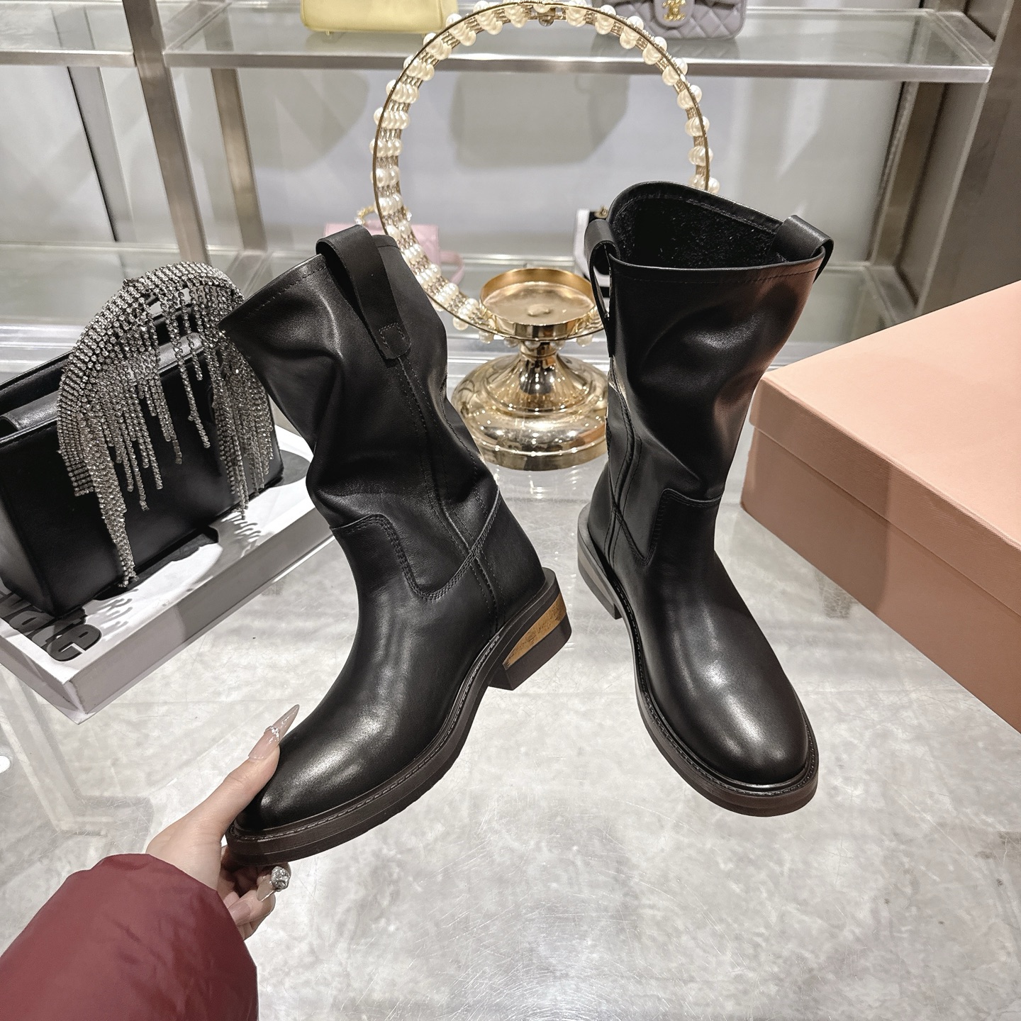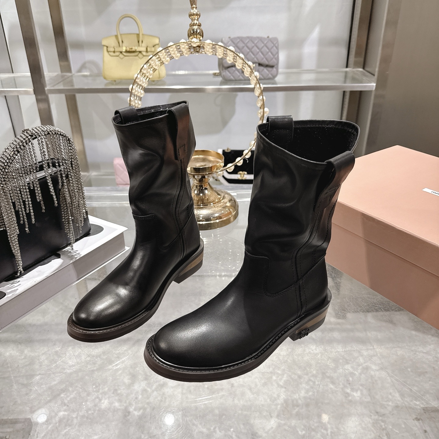 这款鞋子是AAAAA 1:1 质量 (非常棒). 使用了和原版一模一样的材料. 商标部分也保持了和缪缪/Miu Miu一样. 图片拍摄是实物鞋子拍摄, 您所收到的实物保证和我们图片一模一样.