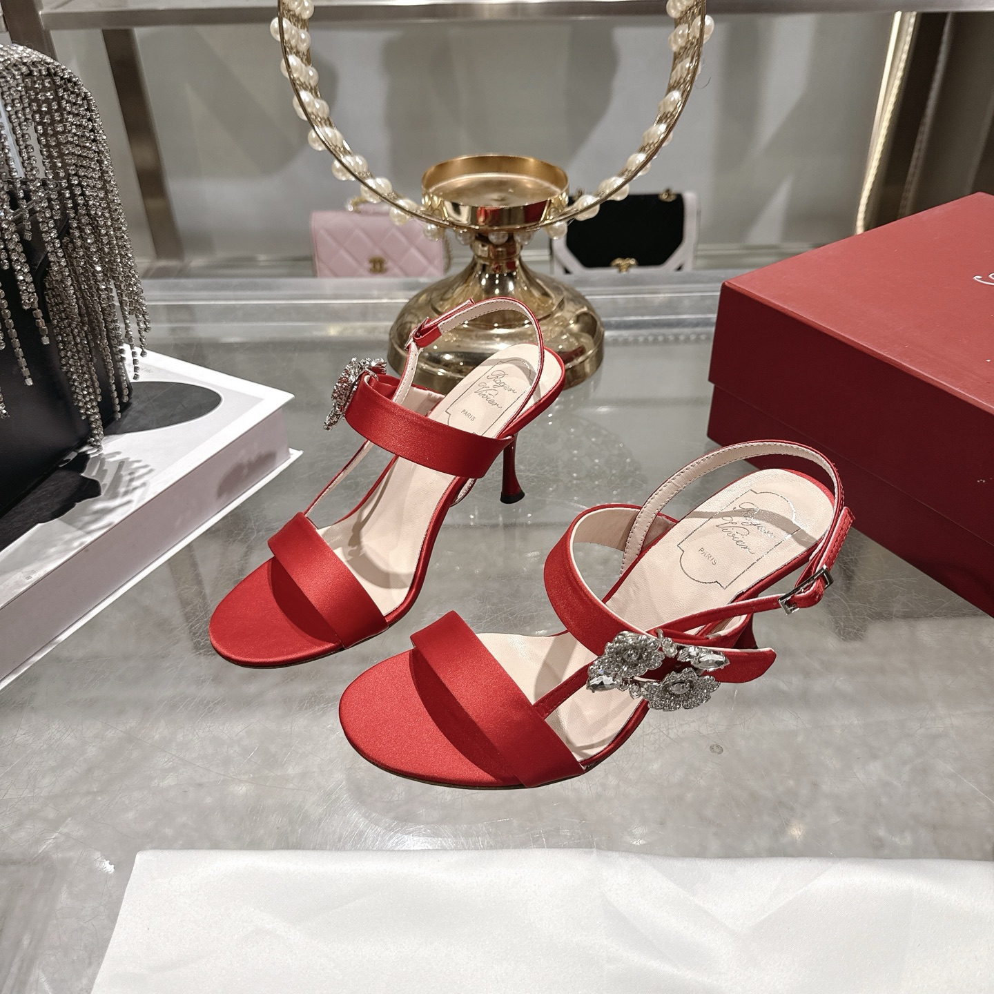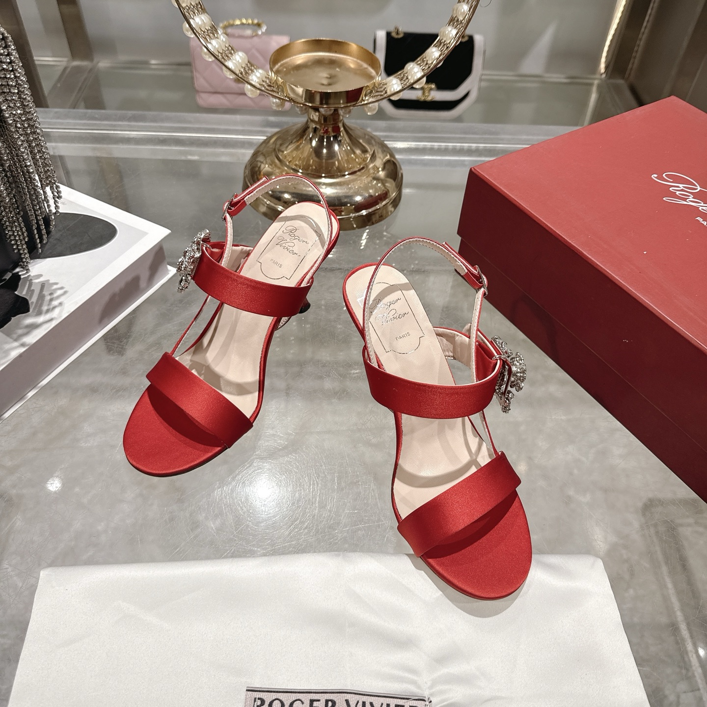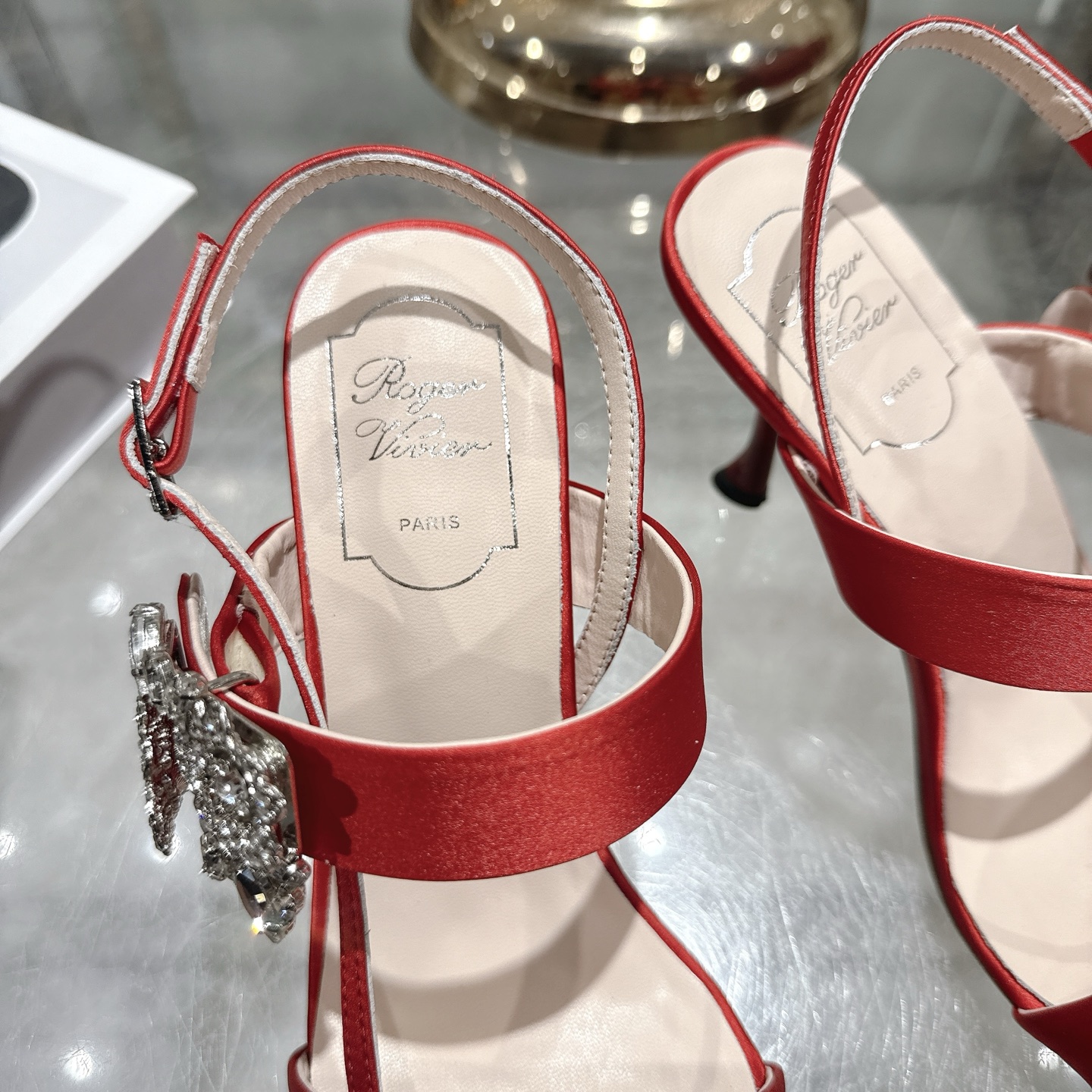 这款鞋子是AAAAA 1:1 质量 (非常棒). 使用了和原版一模一样的材料. 商标部分也保持了和罗杰维维耶/Roger Vivier一样. 图片拍摄是实物鞋子拍摄, 您所收到的实物保证和我们图片一模一样.