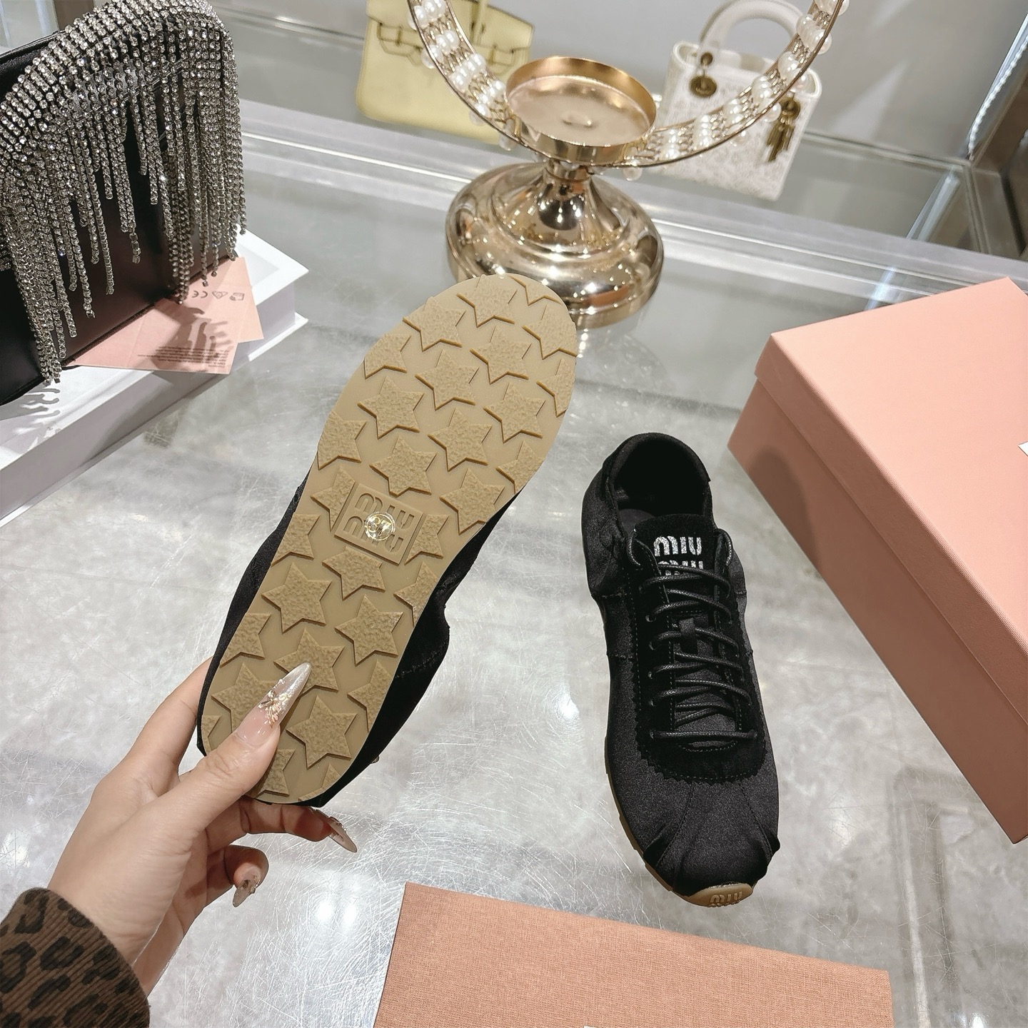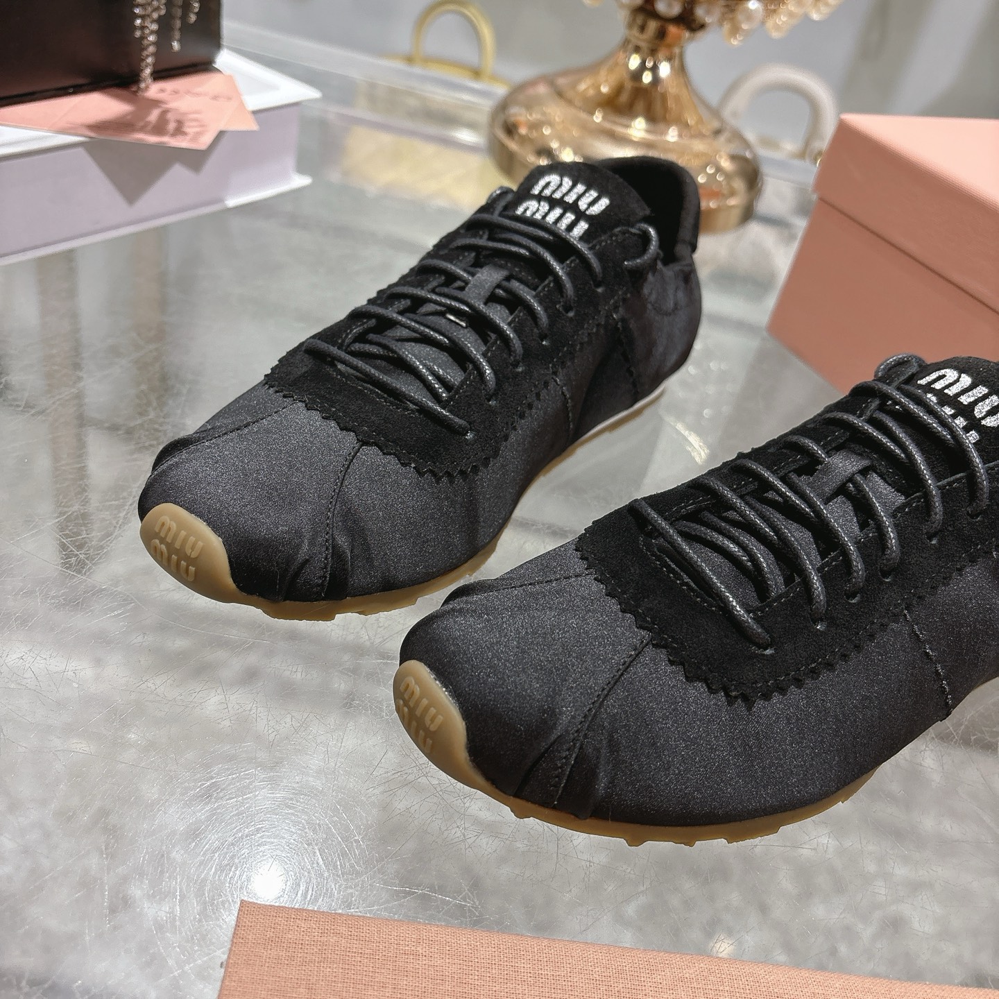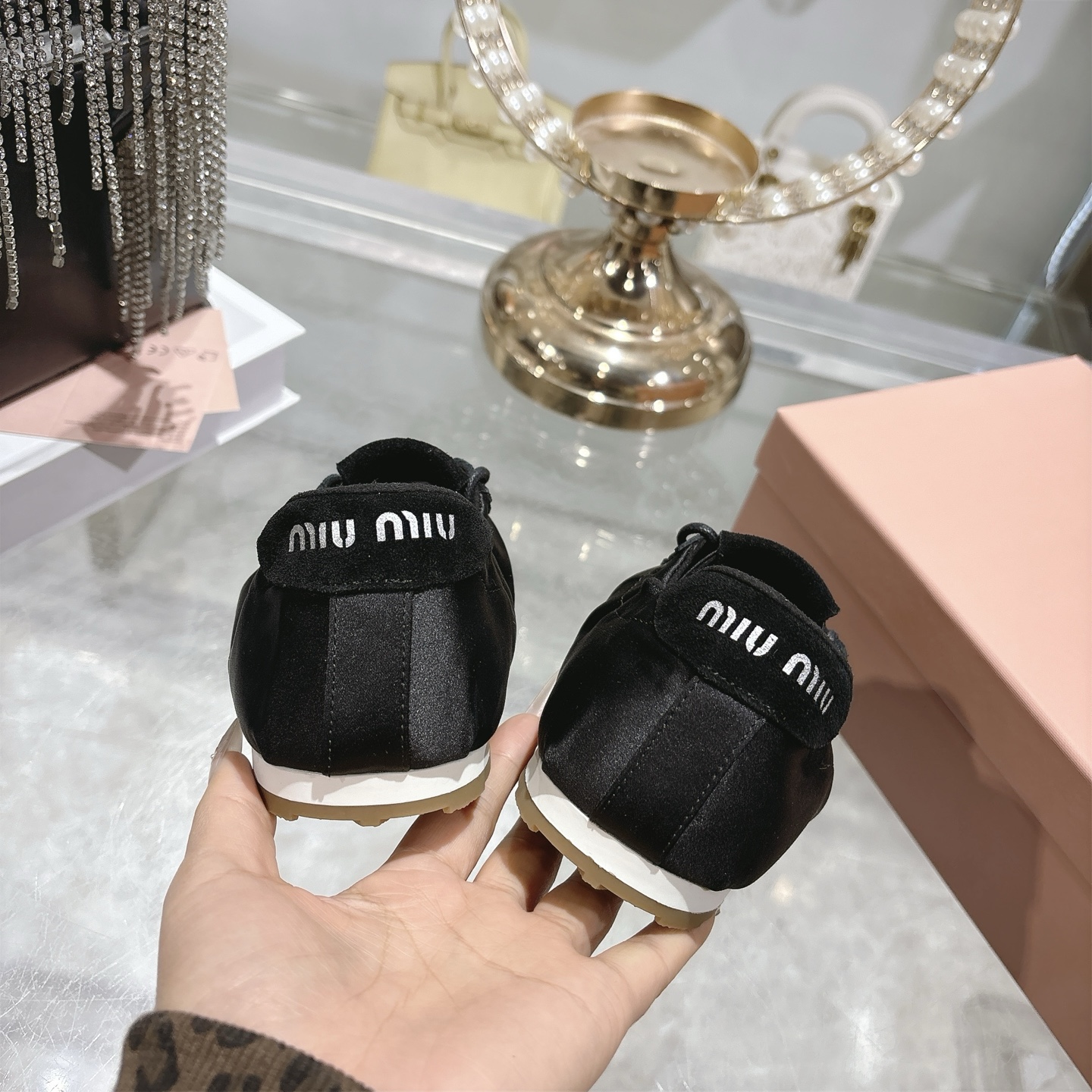 这款鞋子是AAAAA 1:1 质量 (非常棒). 使用了和原版一模一样的材料. 商标部分也保持了和缪缪/Miu Miu一样. 图片拍摄是实物鞋子拍摄, 您所收到的实物保证和我们图片一模一样.