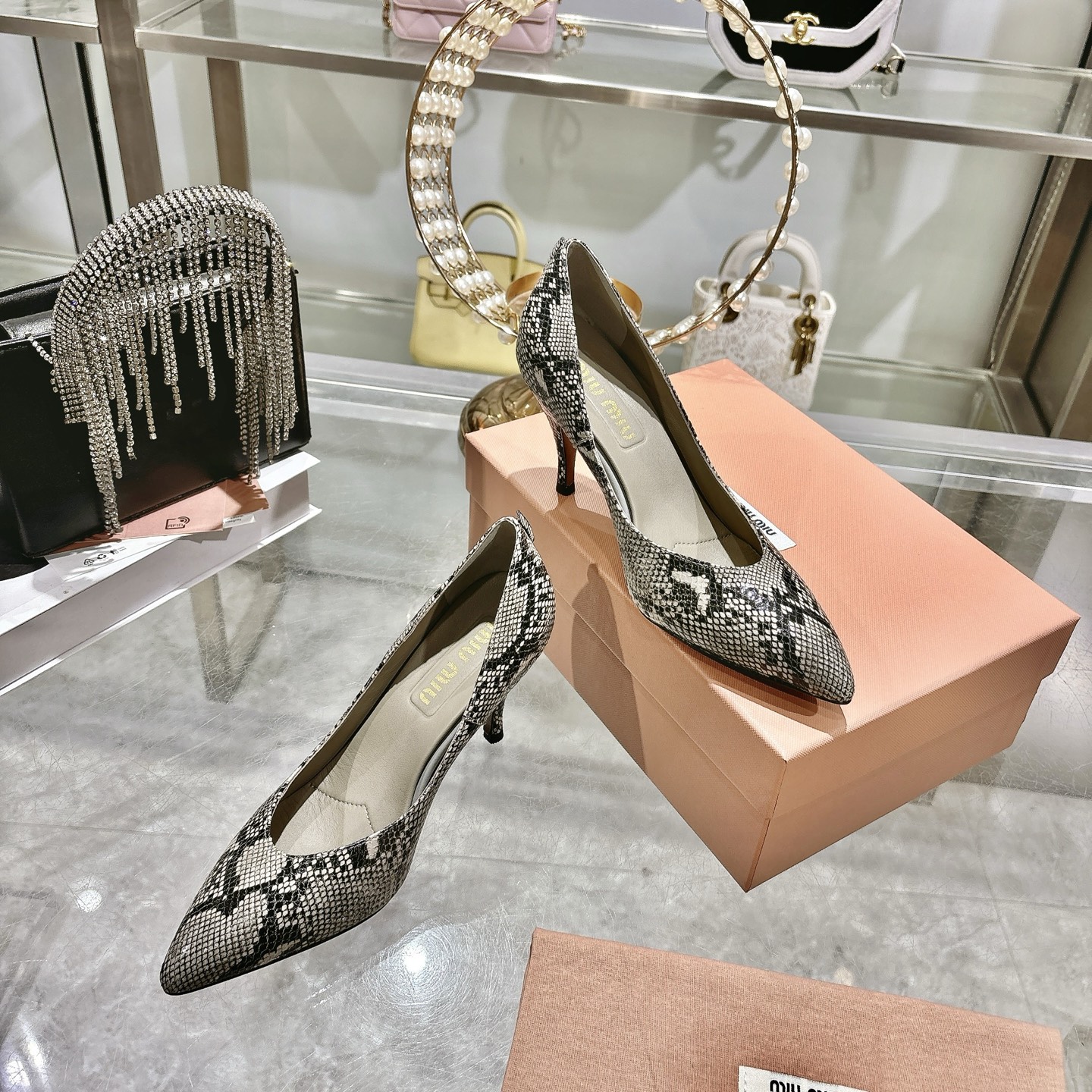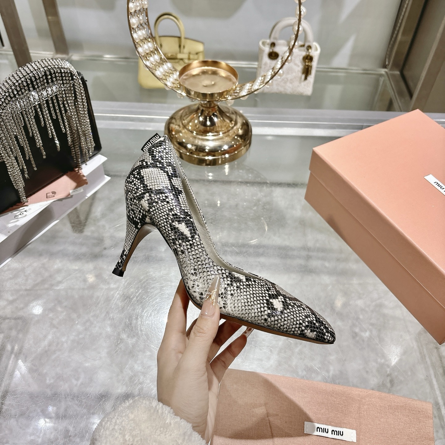 这款鞋子是AAAAA 1:1 质量 (非常棒). 使用了和原版一模一样的材料. 商标部分也保持了和缪缪/Miu Miu一样. 图片拍摄是实物鞋子拍摄, 您所收到的实物保证和我们图片一模一样.