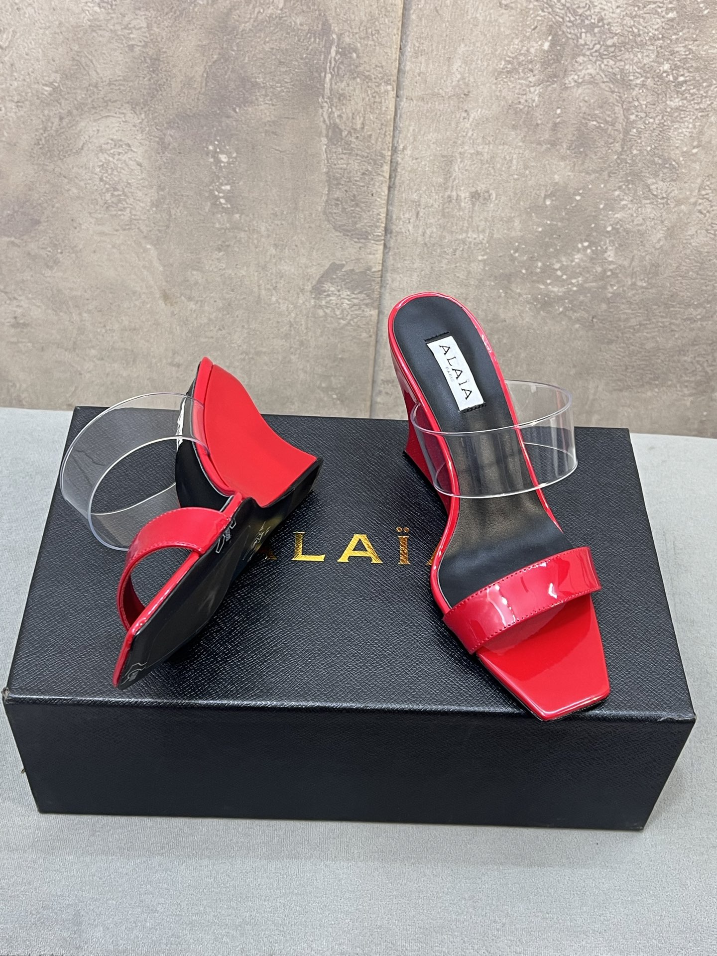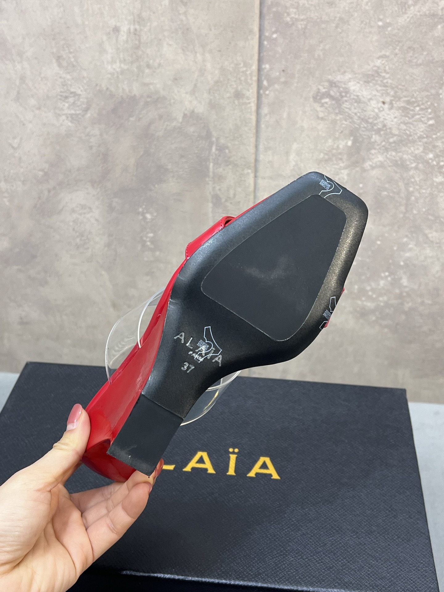 这款鞋子是AAAAA 1:1 质量 (非常棒). 使用了和原版一模一样的材料. 商标部分也保持了和Alaia一样. 图片拍摄是实物鞋子拍摄, 您所收到的实物保证和我们图片一模一样.