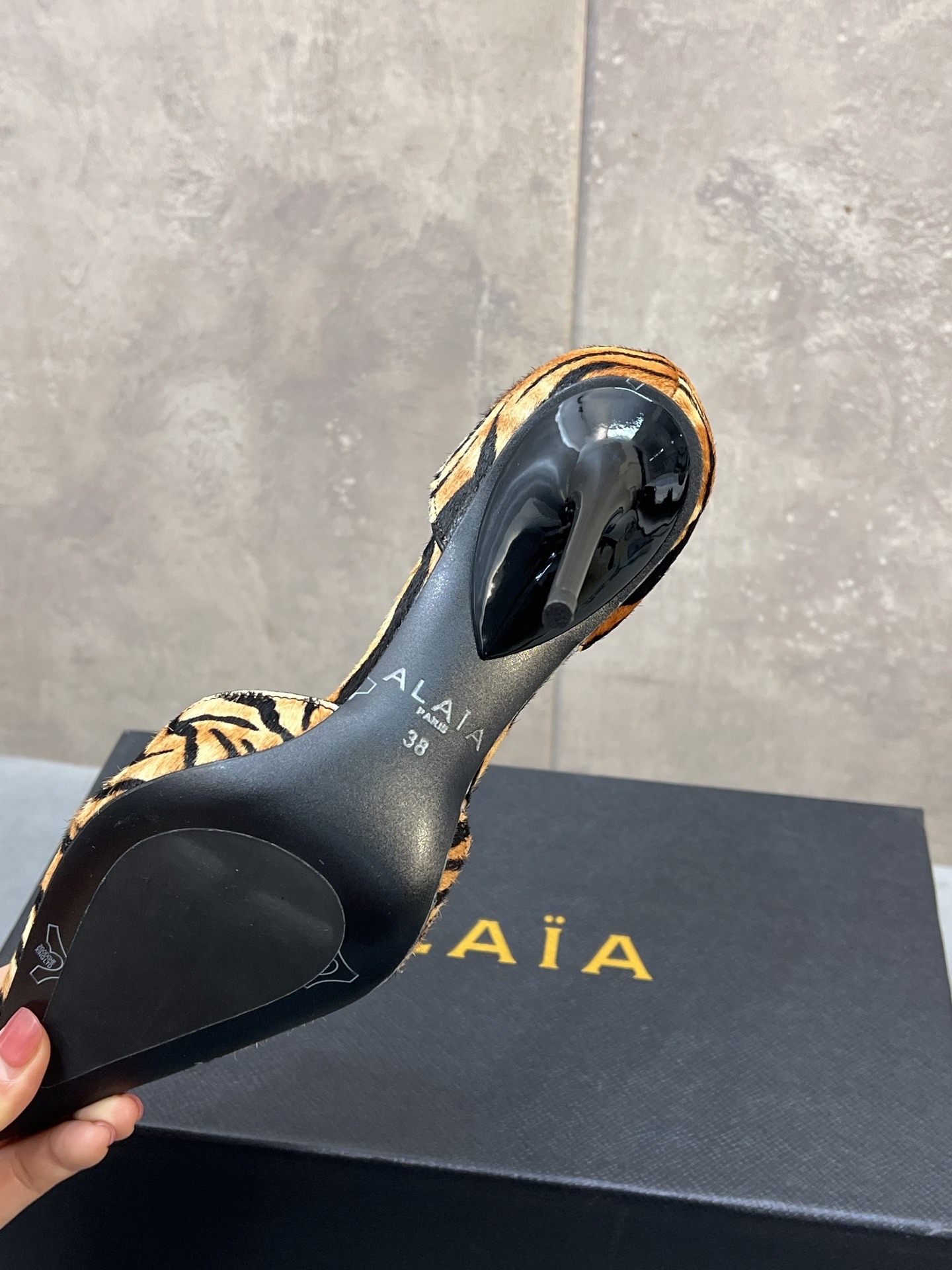 这款鞋子是AAAAA 1:1 质量 (非常棒). 使用了和原版一模一样的材料. 商标部分也保持了和Alaia一样. 图片拍摄是实物鞋子拍摄, 您所收到的实物保证和我们图片一模一样.