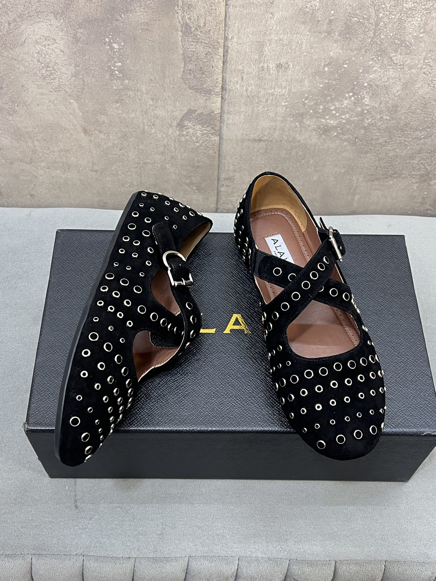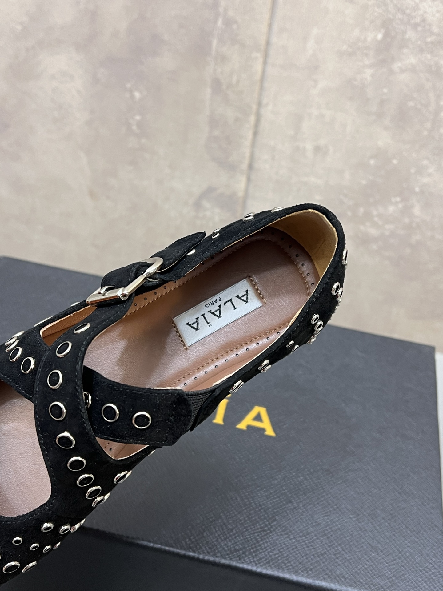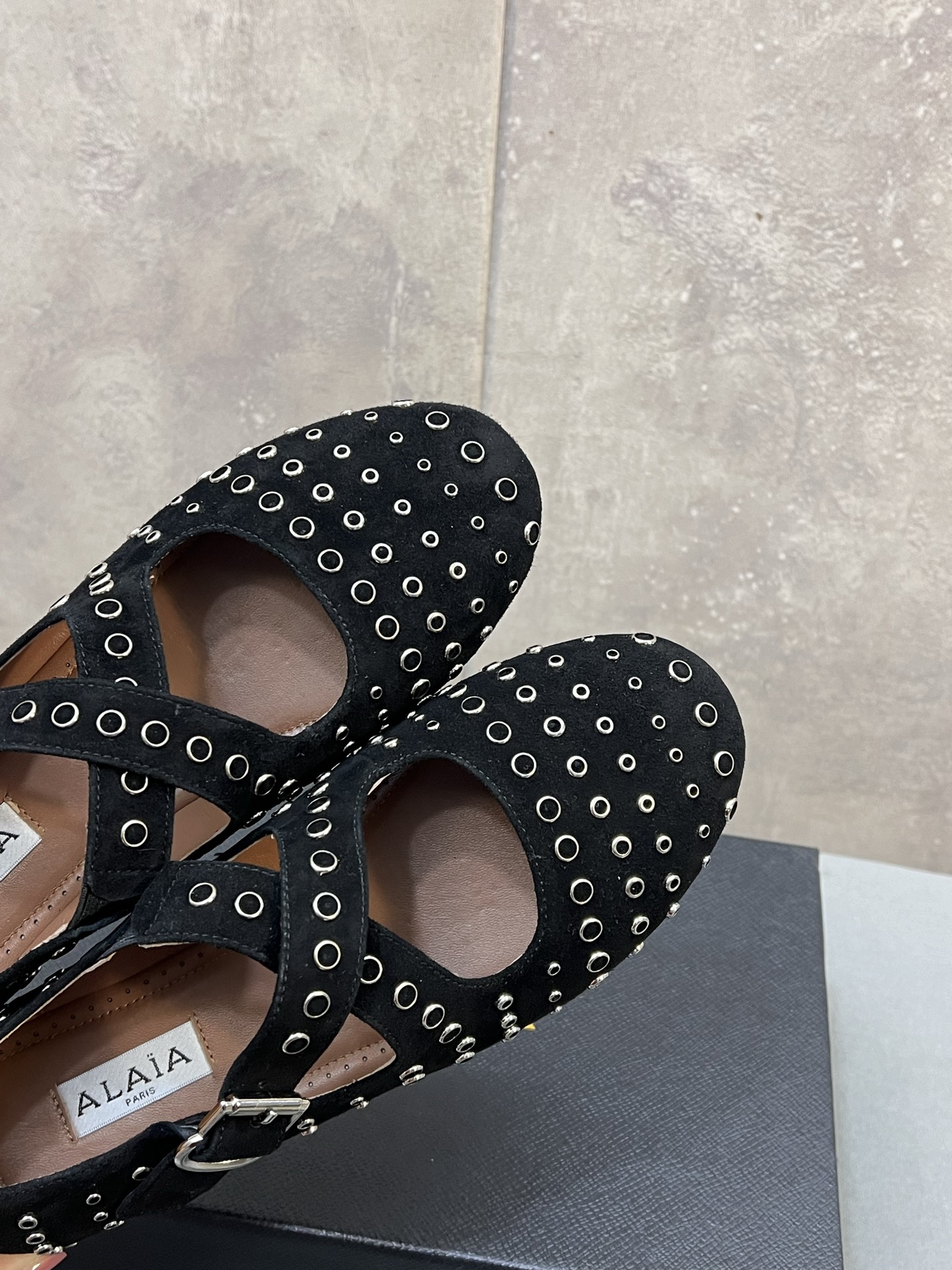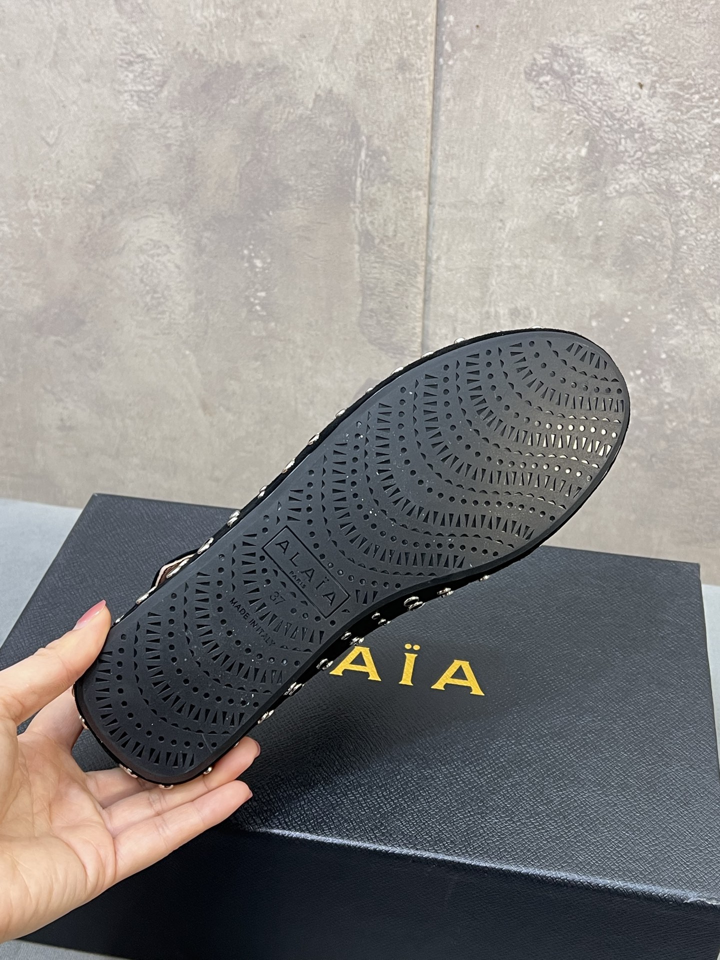 这款鞋子是AAAAA 1:1 质量 (非常棒). 使用了和原版一模一样的材料. 商标部分也保持了和Alaia一样. 图片拍摄是实物鞋子拍摄, 您所收到的实物保证和我们图片一模一样.