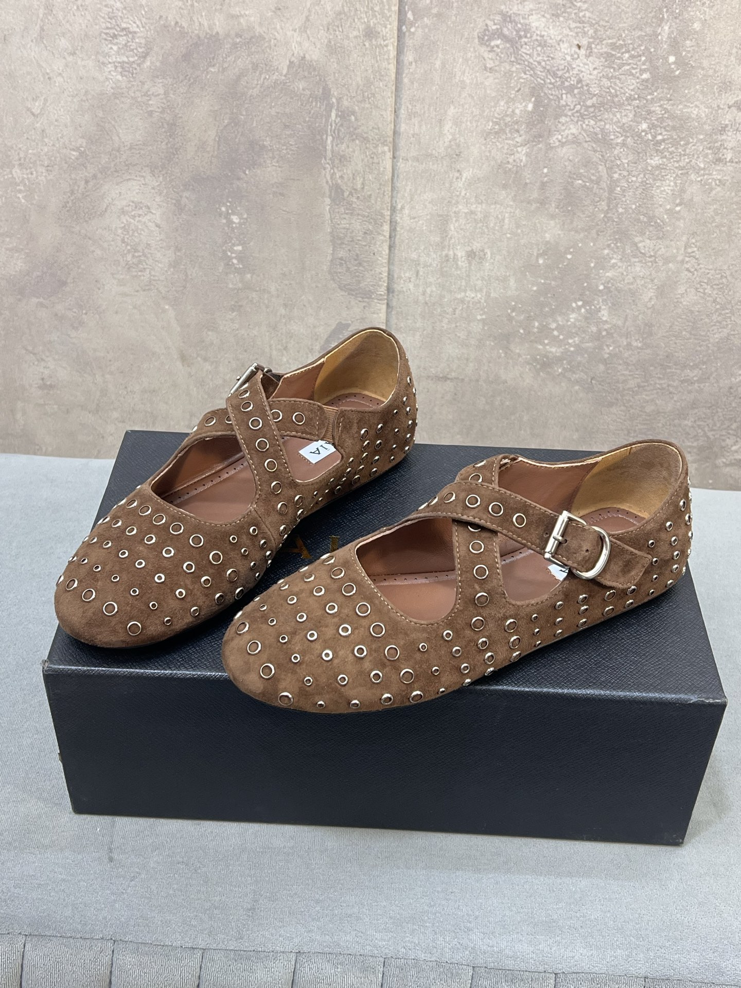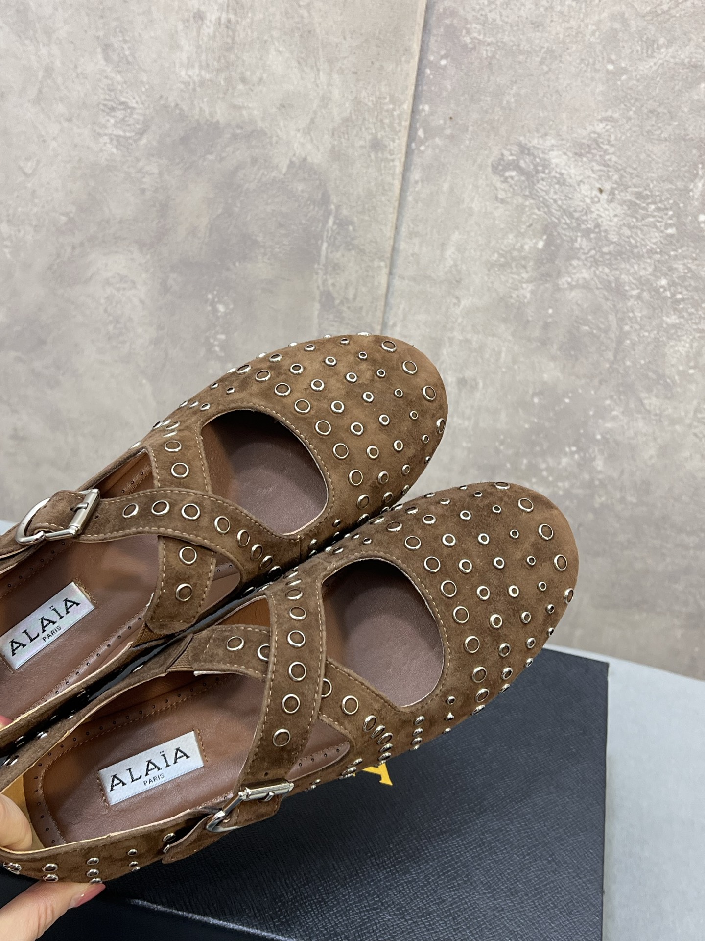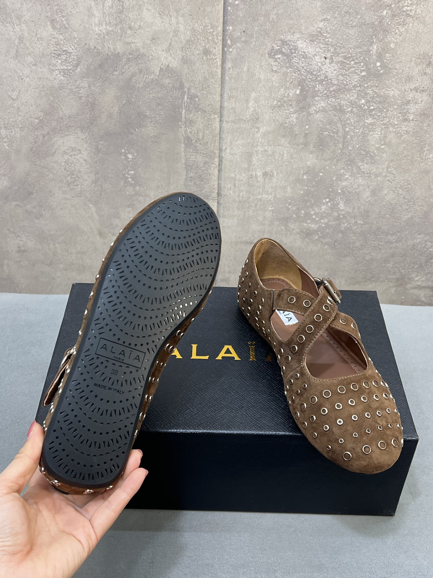 这款鞋子是AAAAA 1:1 质量 (非常棒). 使用了和原版一模一样的材料. 商标部分也保持了和Alaia一样. 图片拍摄是实物鞋子拍摄, 您所收到的实物保证和我们图片一模一样.
