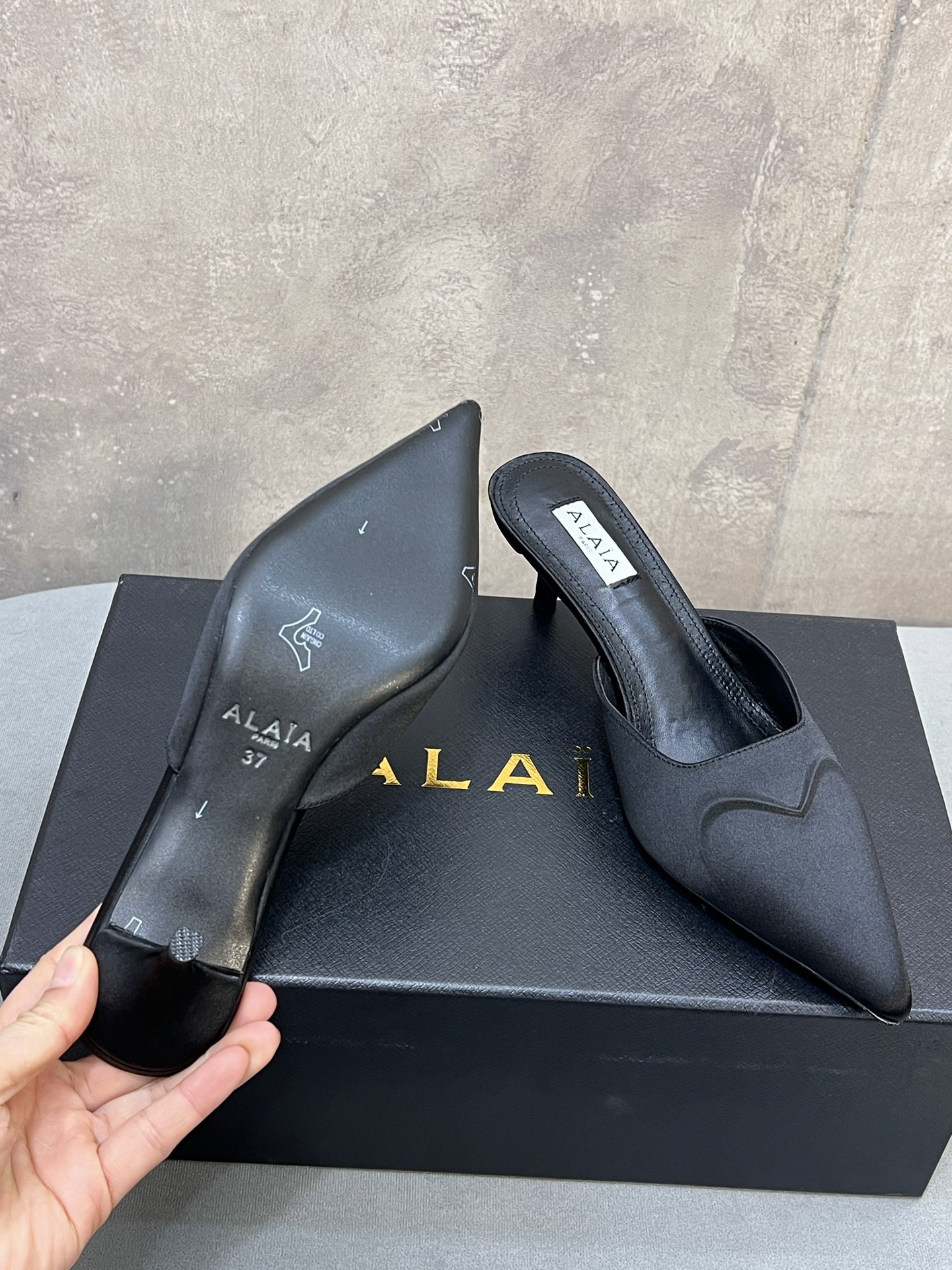 这款鞋子是AAAAA 1:1 质量 (非常棒). 使用了和原版一模一样的材料. 商标部分也保持了和Alaia一样. 图片拍摄是实物鞋子拍摄, 您所收到的实物保证和我们图片一模一样.