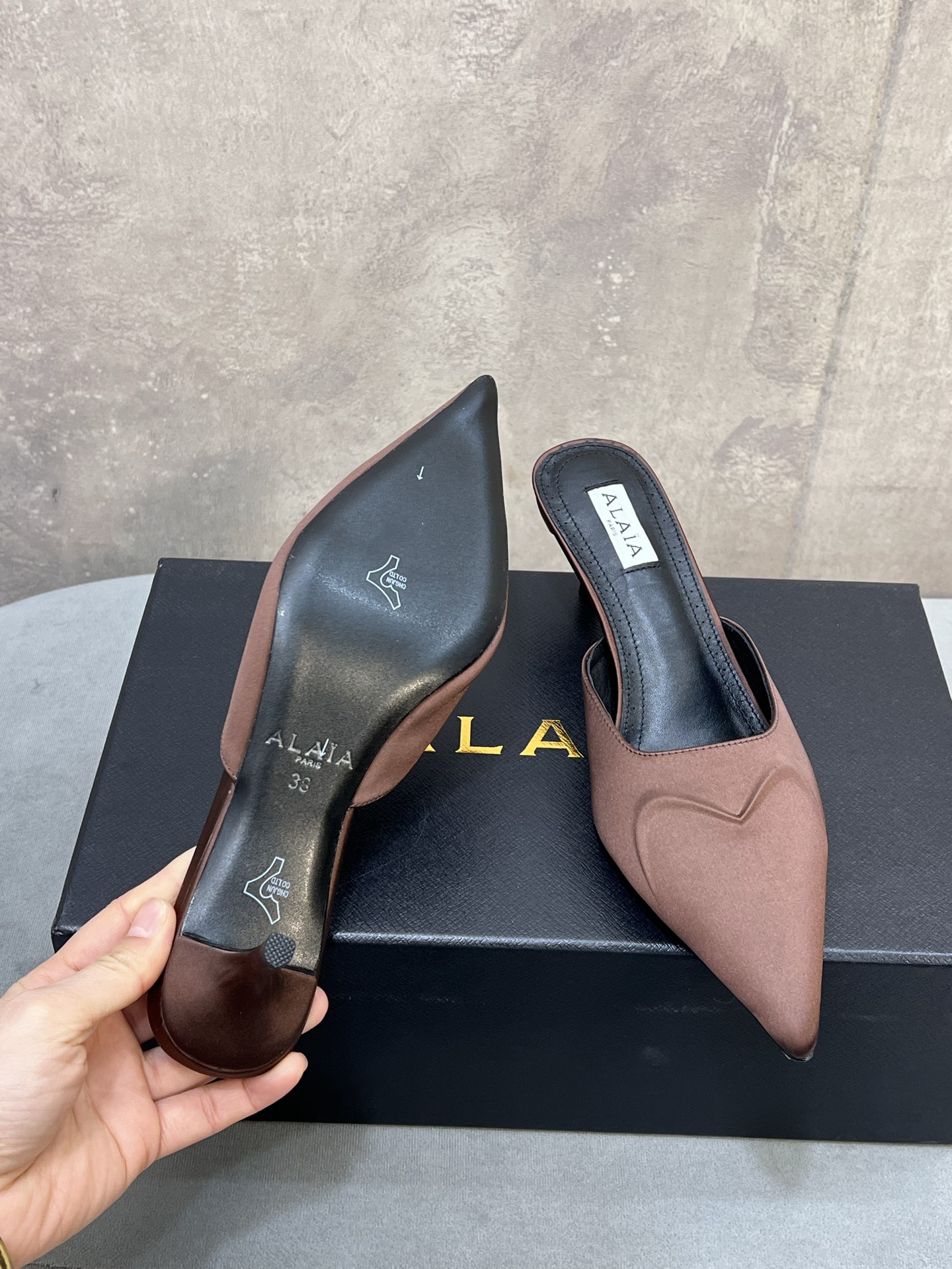 这款鞋子是AAAAA 1:1 质量 (非常棒). 使用了和原版一模一样的材料. 商标部分也保持了和Alaia一样. 图片拍摄是实物鞋子拍摄, 您所收到的实物保证和我们图片一模一样.