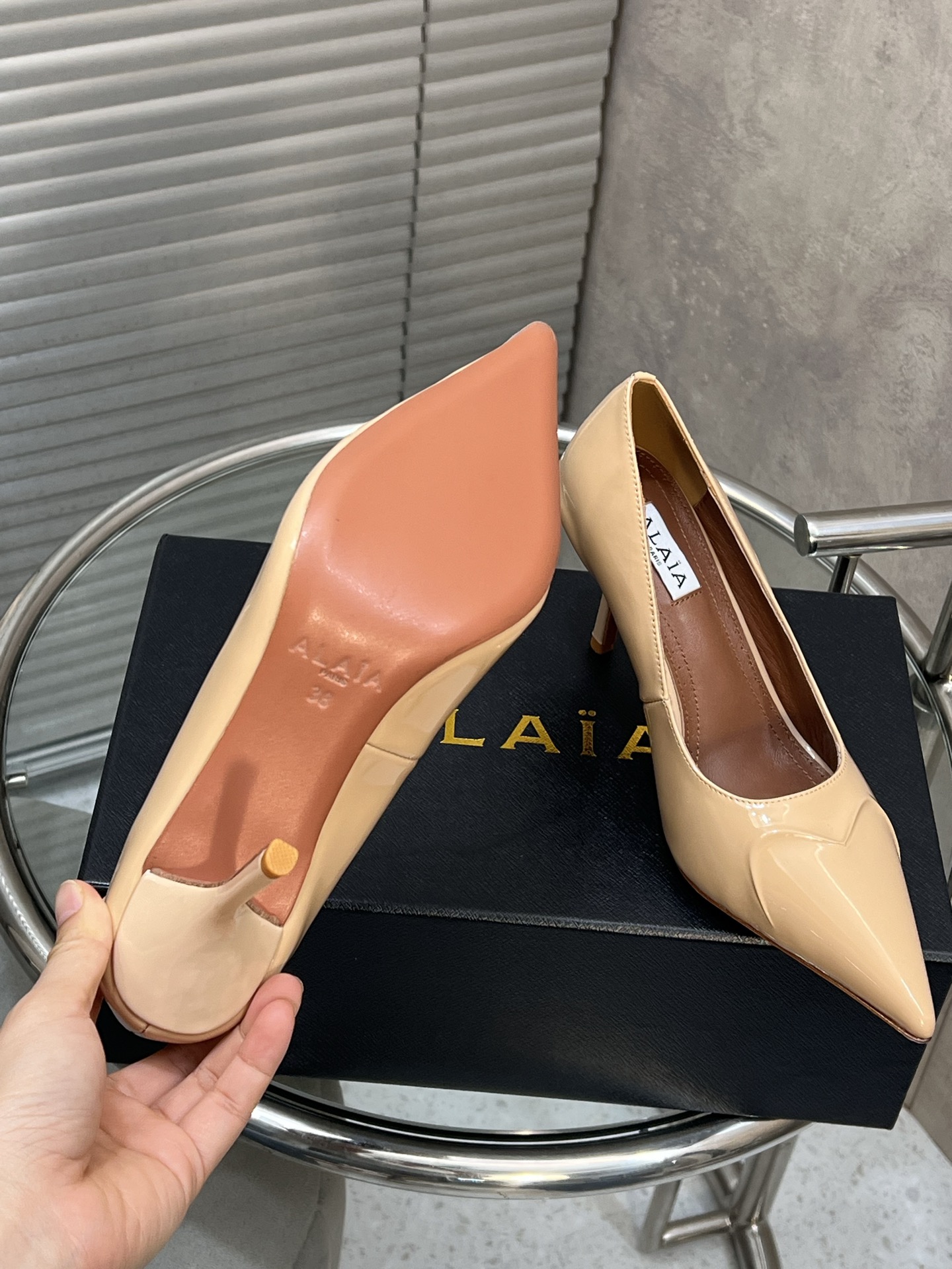 这款鞋子是AAAAA 1:1 质量 (非常棒). 使用了和原版一模一样的材料. 商标部分也保持了和Alaia一样. 图片拍摄是实物鞋子拍摄, 您所收到的实物保证和我们图片一模一样.