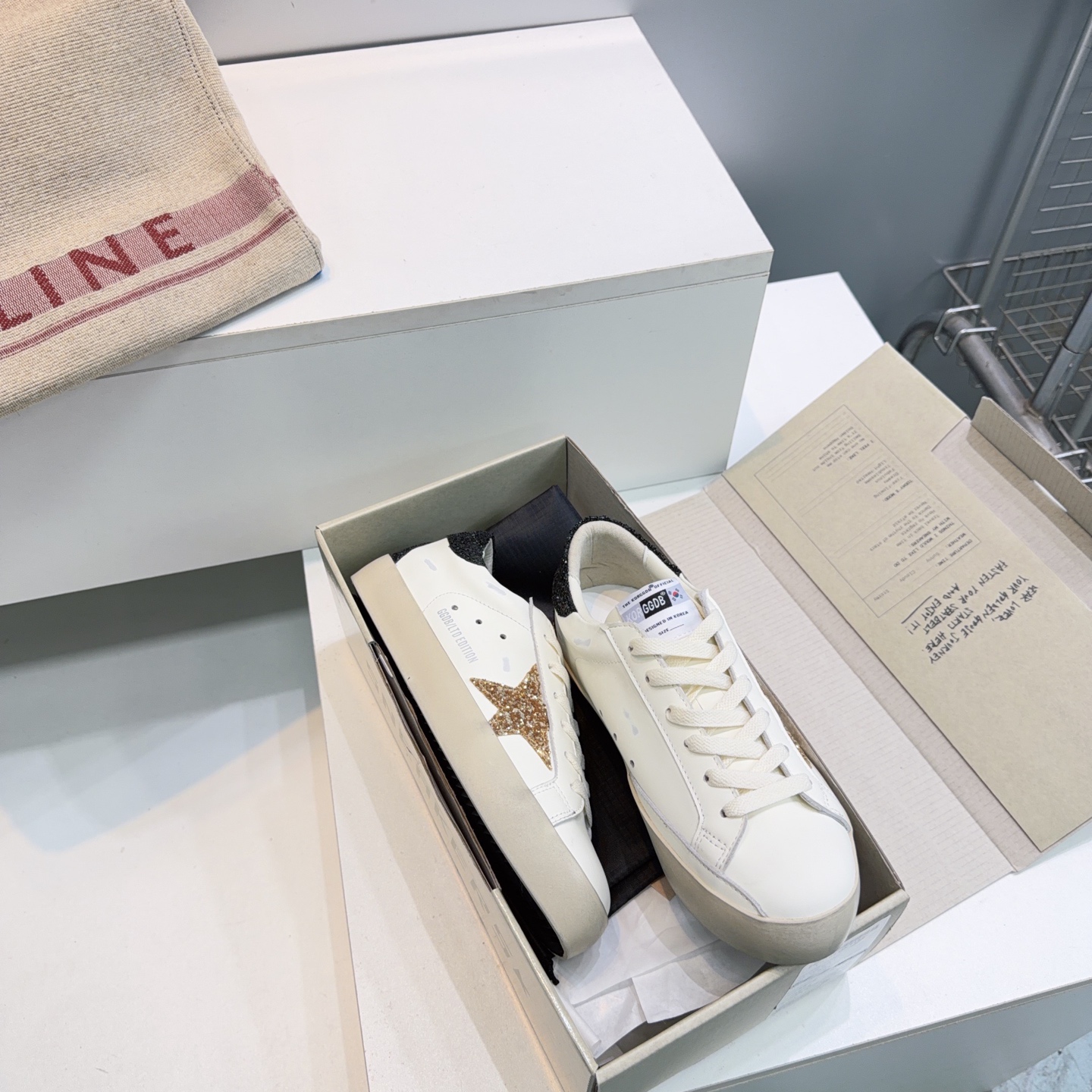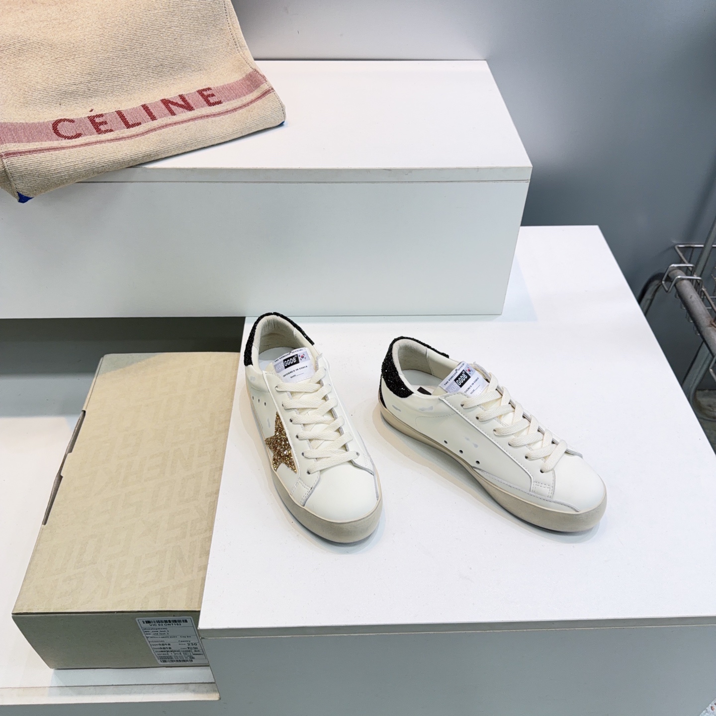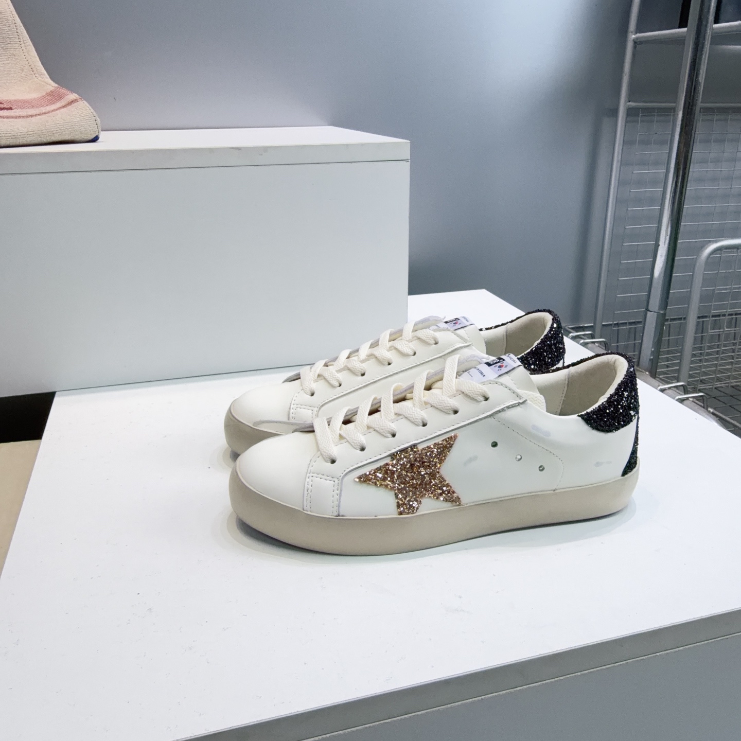 这款鞋子是AAAAA 1:1 质量 (非常棒). 使用了和原版一模一样的材料. 商标部分也保持了和Golden Goose一样. 图片拍摄是实物鞋子拍摄, 您所收到的实物保证和我们图片一模一样.