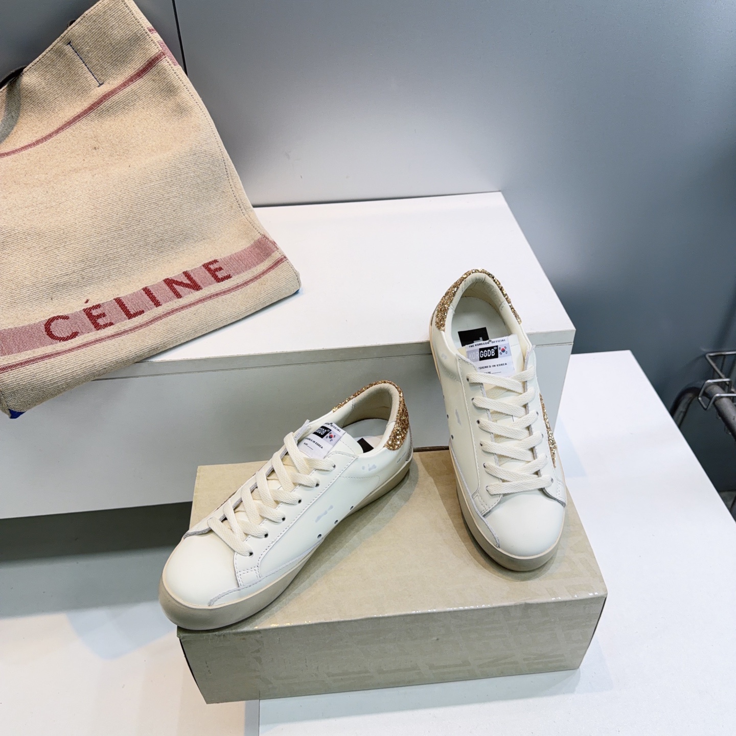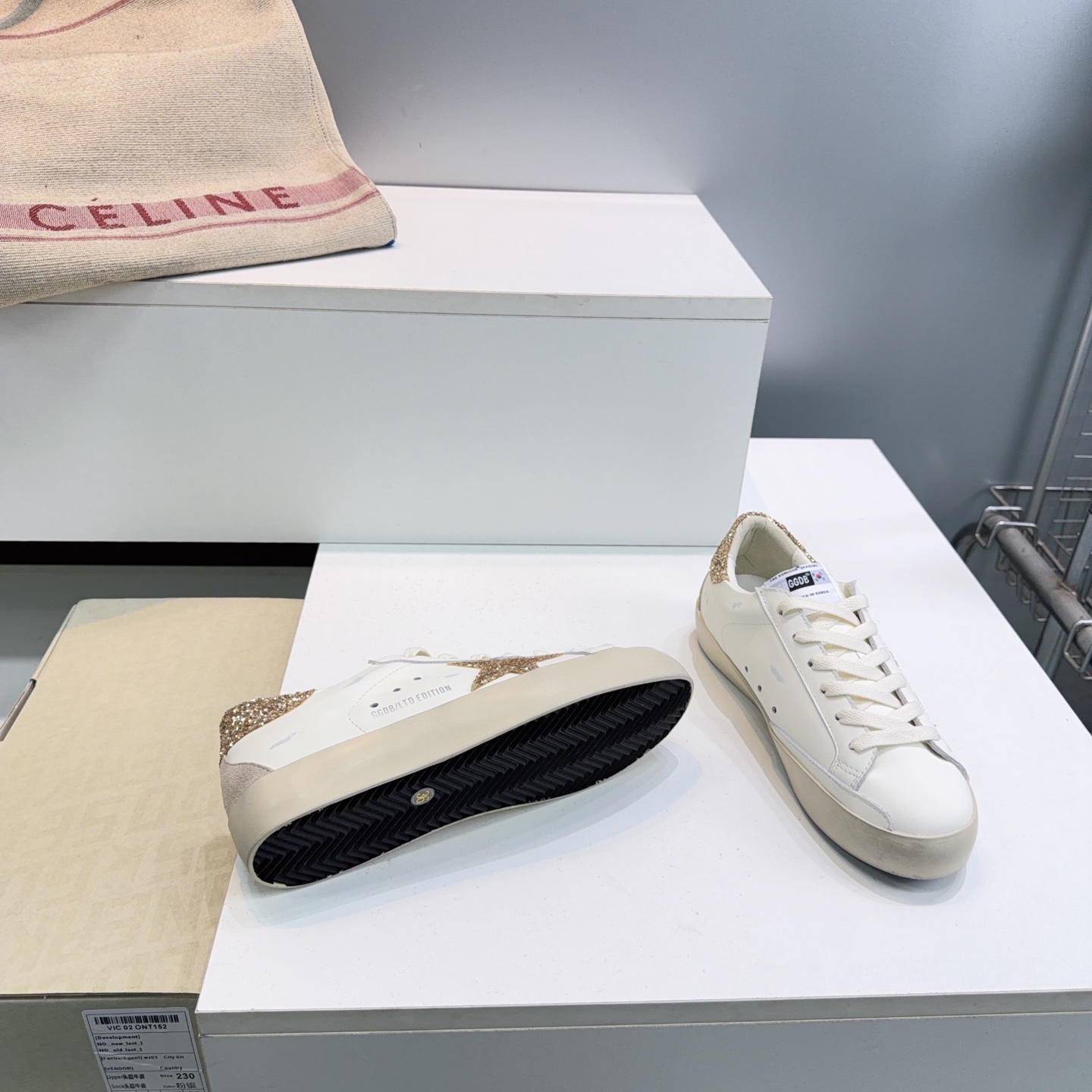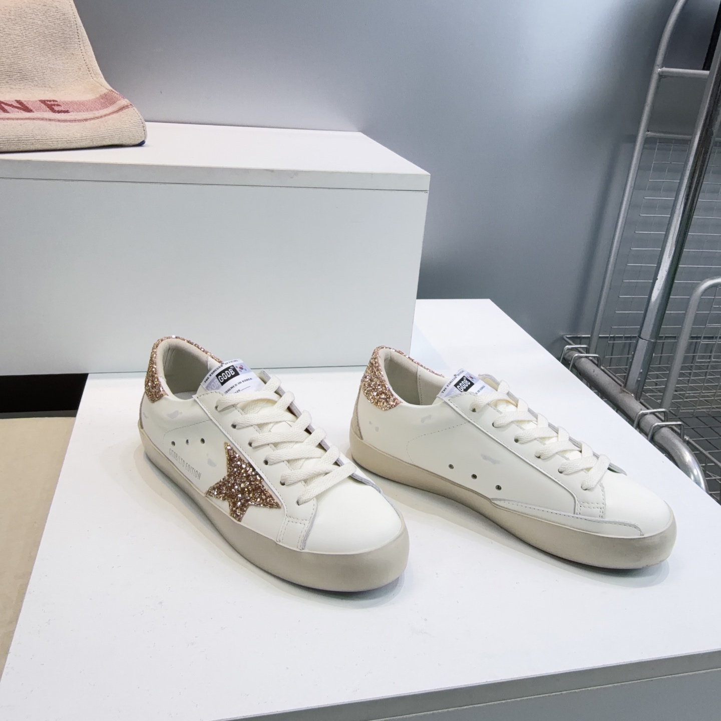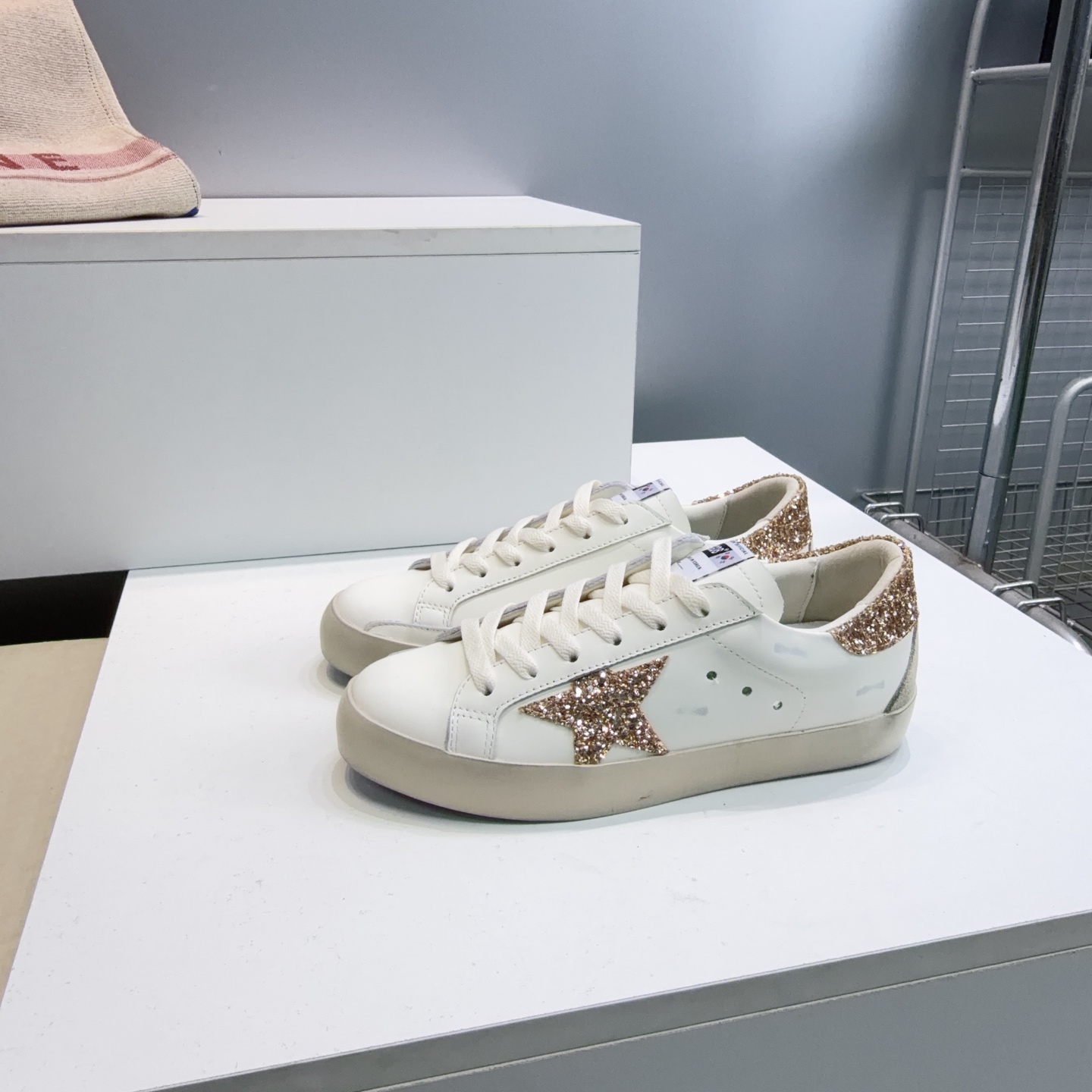 这款鞋子是AAAAA 1:1 质量 (非常棒). 使用了和原版一模一样的材料. 商标部分也保持了和Golden Goose一样. 图片拍摄是实物鞋子拍摄, 您所收到的实物保证和我们图片一模一样.