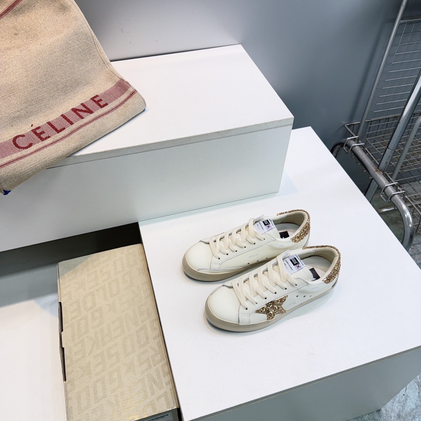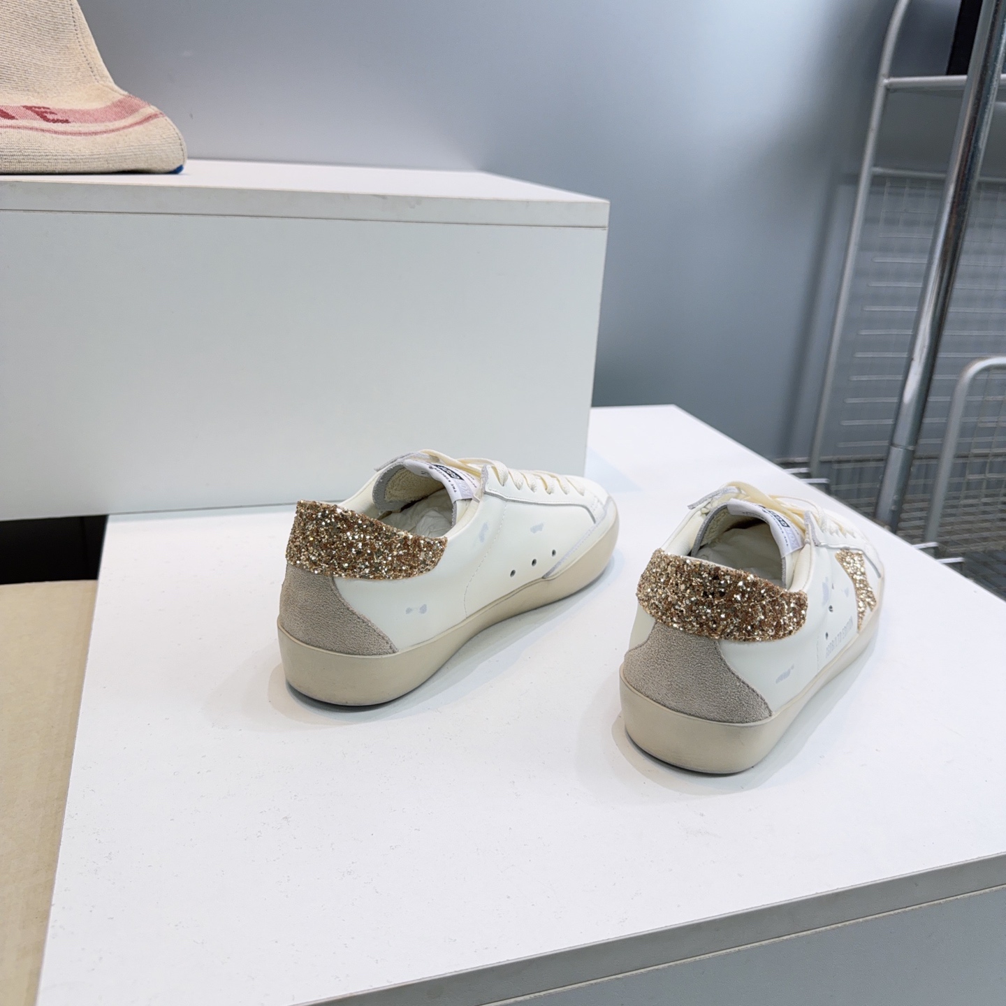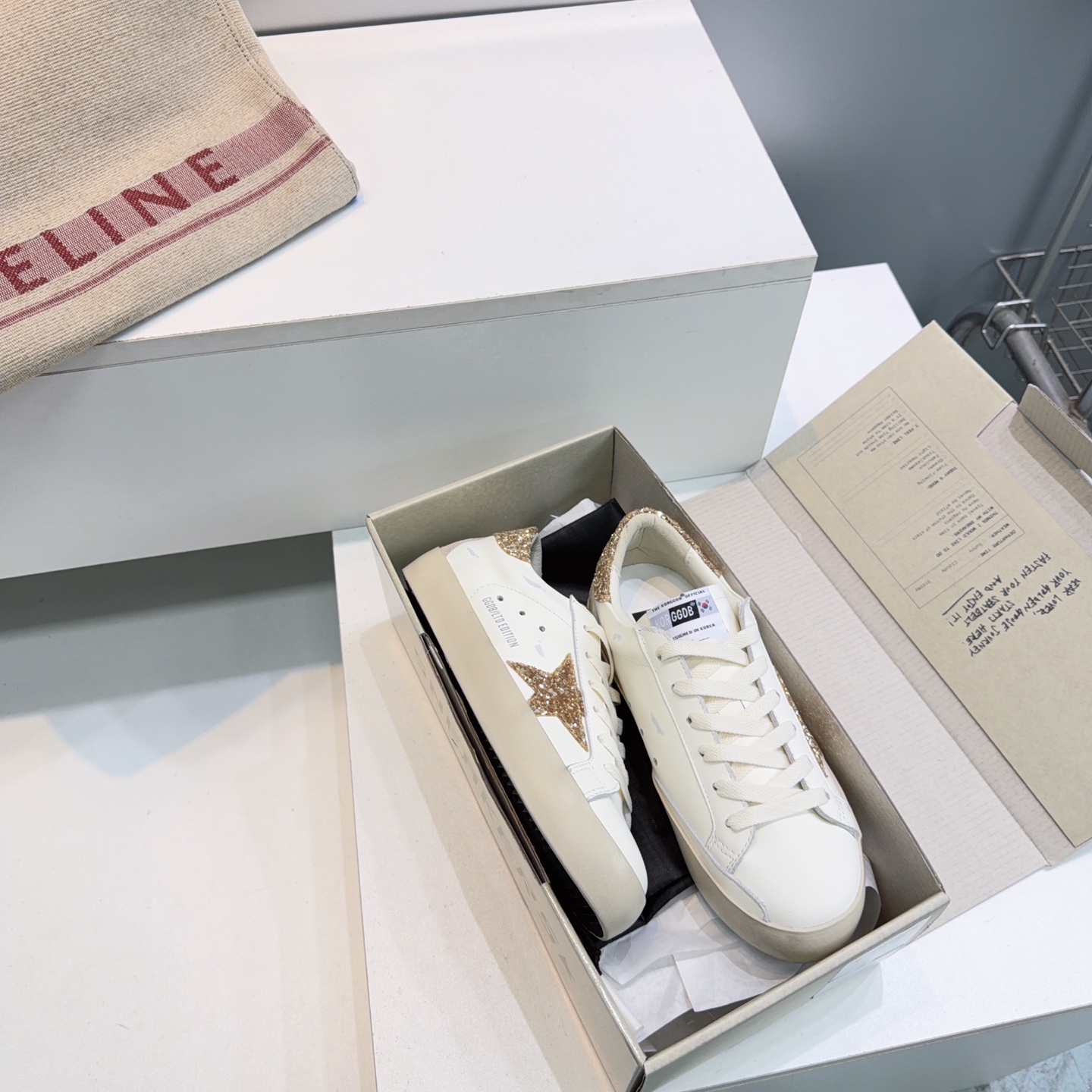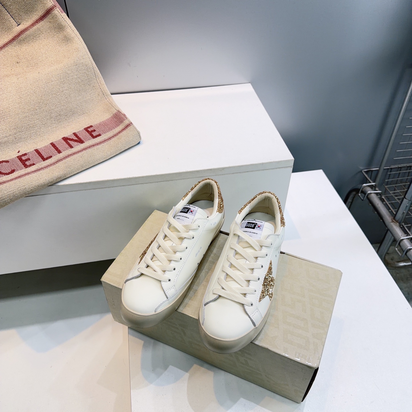 这款鞋子是AAAAA 1:1 质量 (非常棒). 使用了和原版一模一样的材料. 商标部分也保持了和Golden Goose一样. 图片拍摄是实物鞋子拍摄, 您所收到的实物保证和我们图片一模一样.