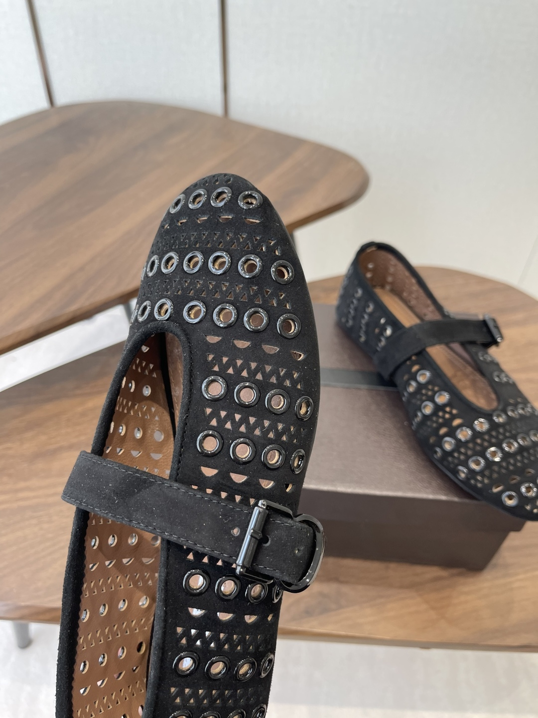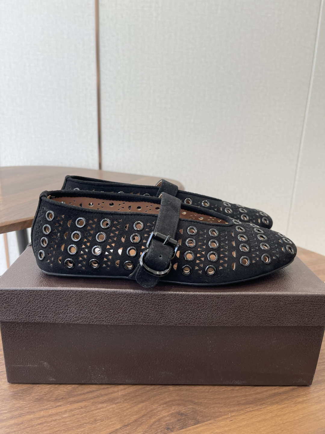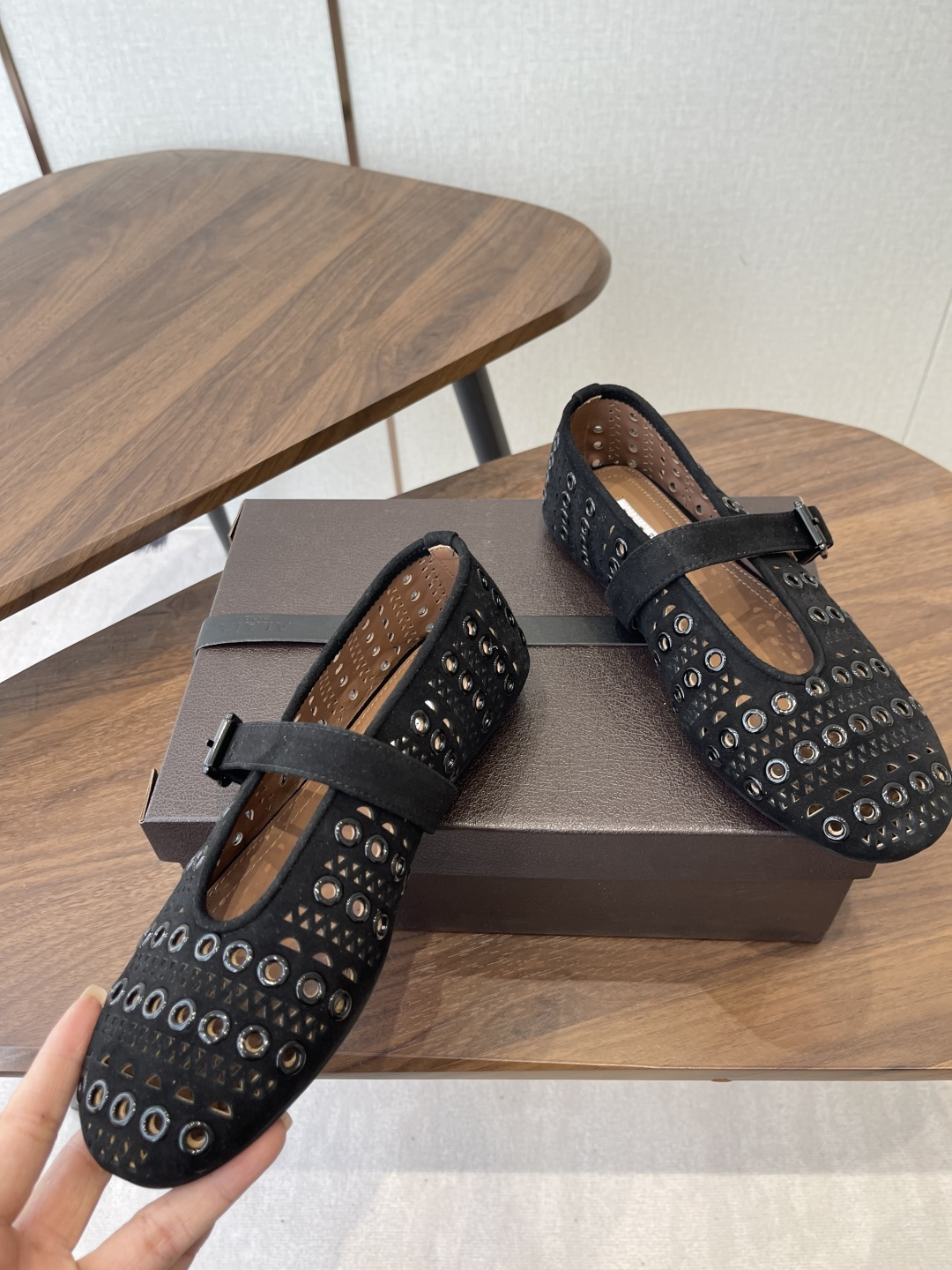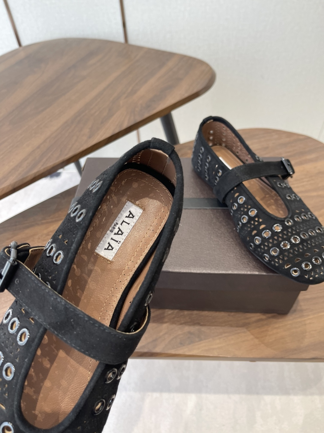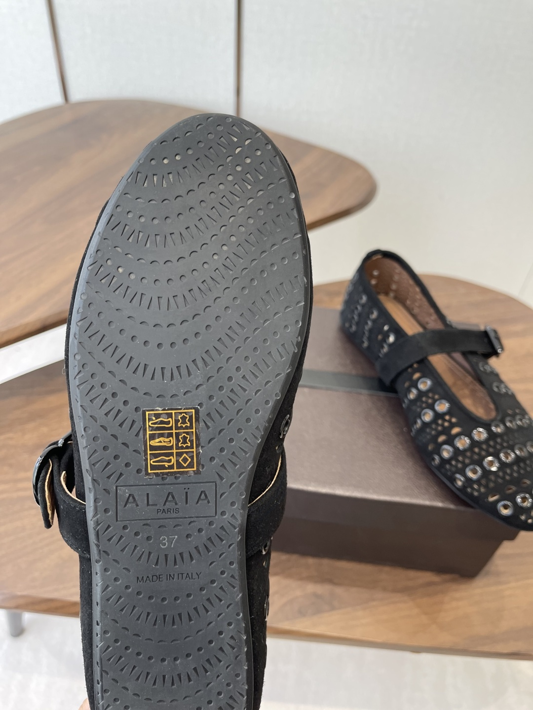 这款鞋子是AAAAA 1:1 质量 (非常棒). 使用了和原版一模一样的材料. 商标部分也保持了和Alaia一样. 图片拍摄是实物鞋子拍摄, 您所收到的实物保证和我们图片一模一样.
