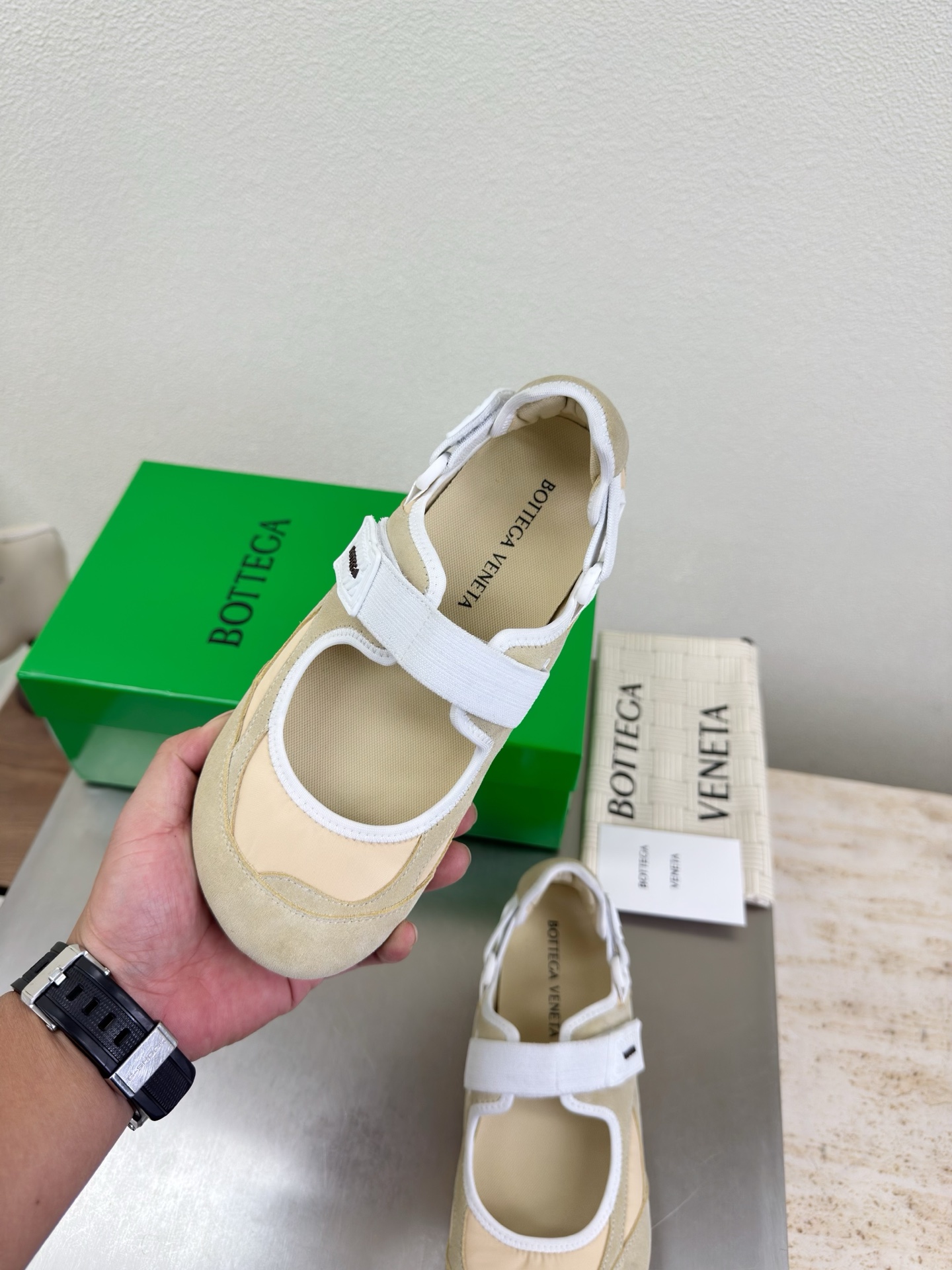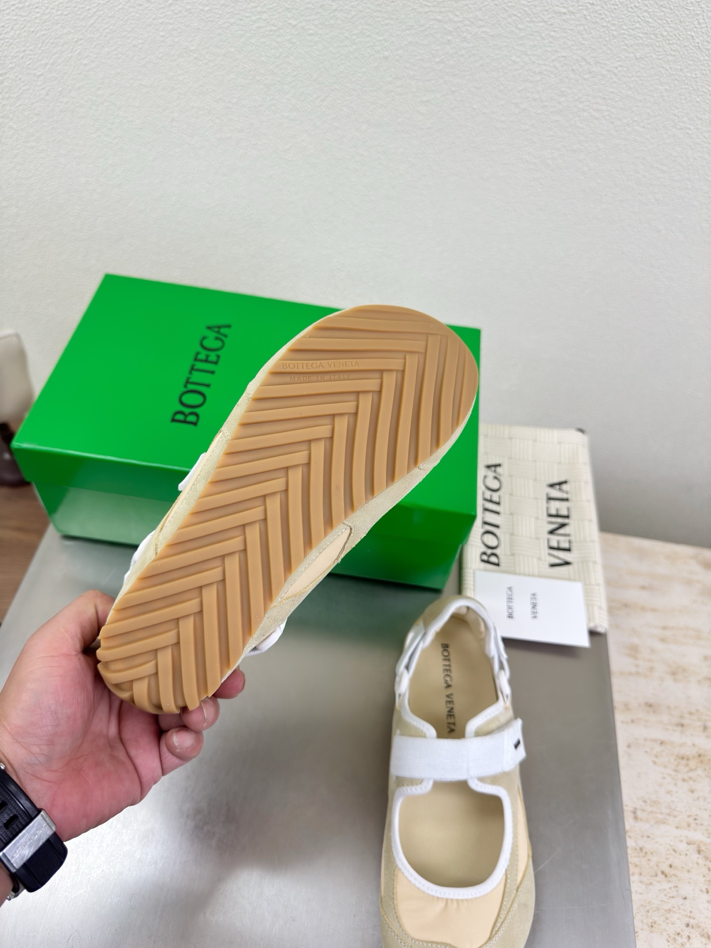 这款鞋子是AAAAA 1:1 质量 (非常棒). 使用了和原版一模一样的材料. 商标部分也保持了和葆蝶家/Bottega Veneta一样. 图片拍摄是实物鞋子拍摄, 您所收到的实物保证和我们图片一模一样.