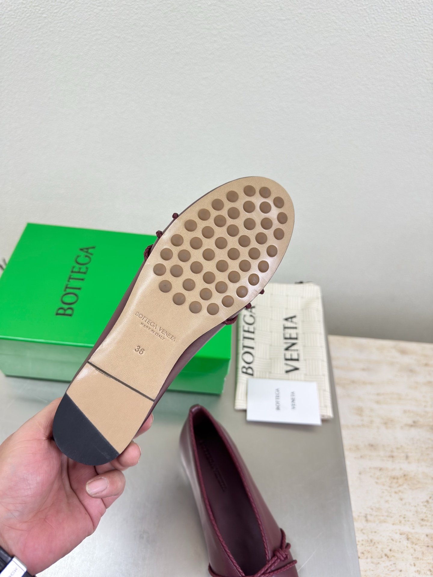 这款鞋子是AAAAA 1:1 质量 (非常棒). 使用了和原版一模一样的材料. 商标部分也保持了和葆蝶家/Bottega Veneta一样. 图片拍摄是实物鞋子拍摄, 您所收到的实物保证和我们图片一模一样.