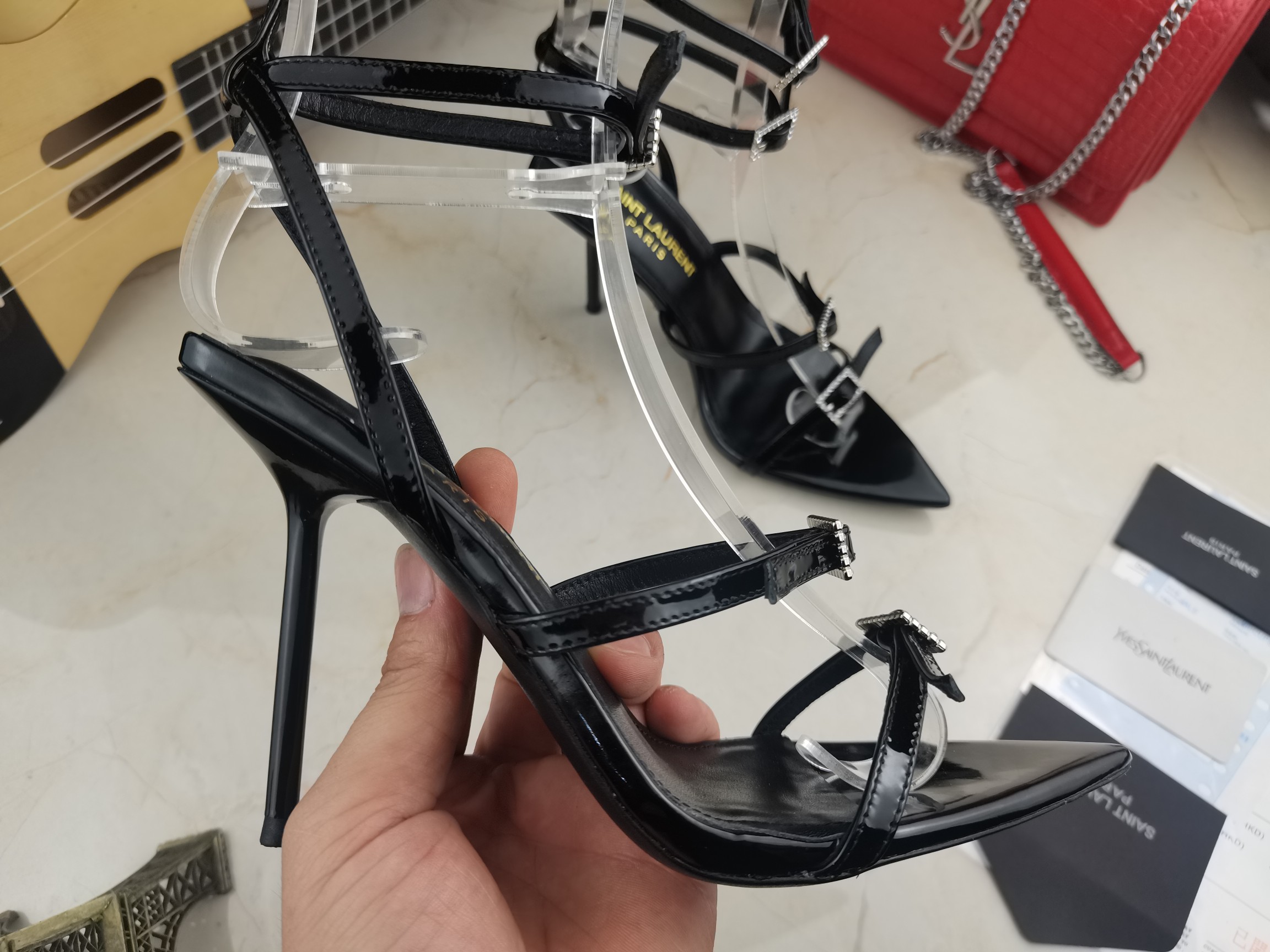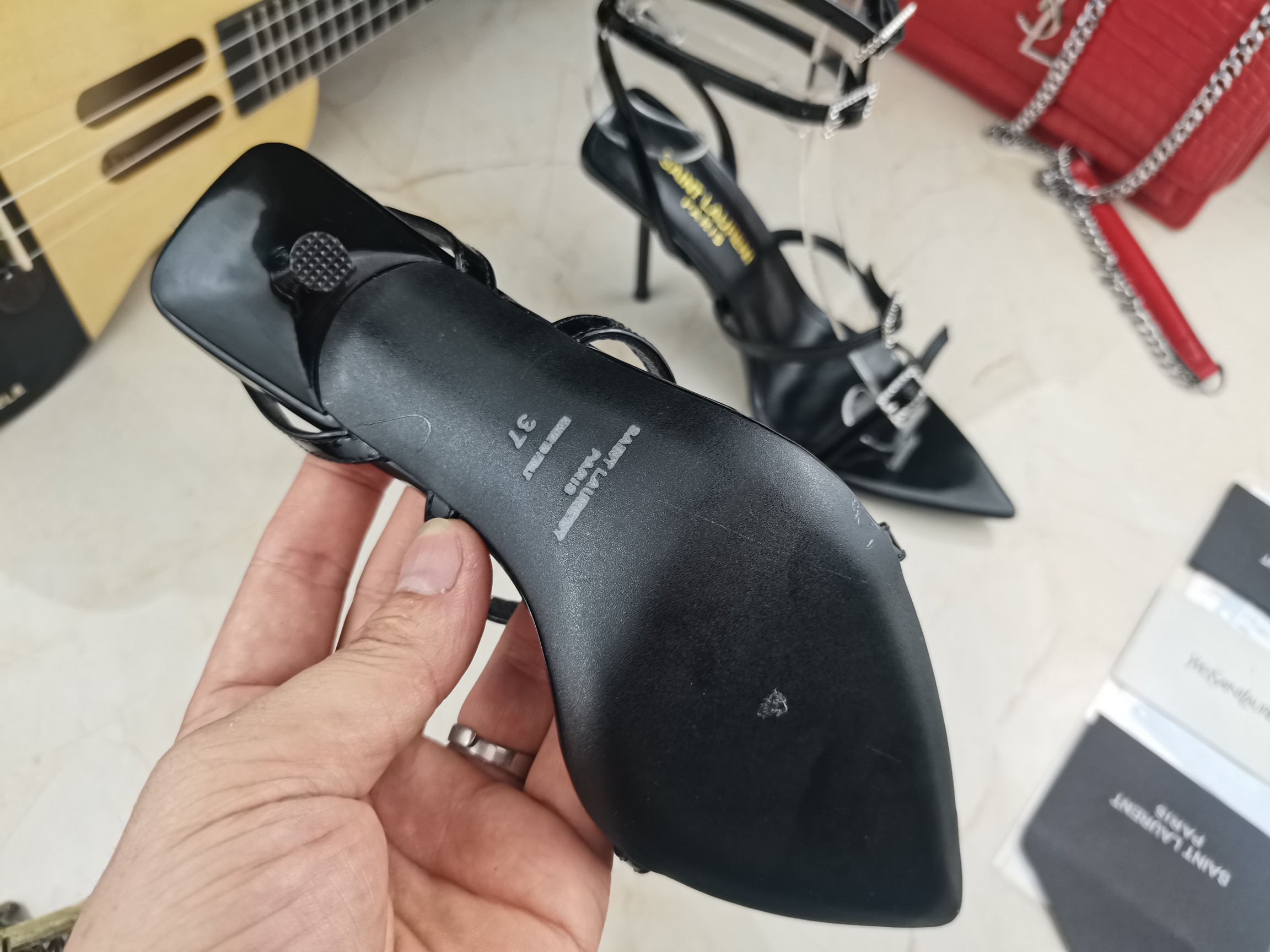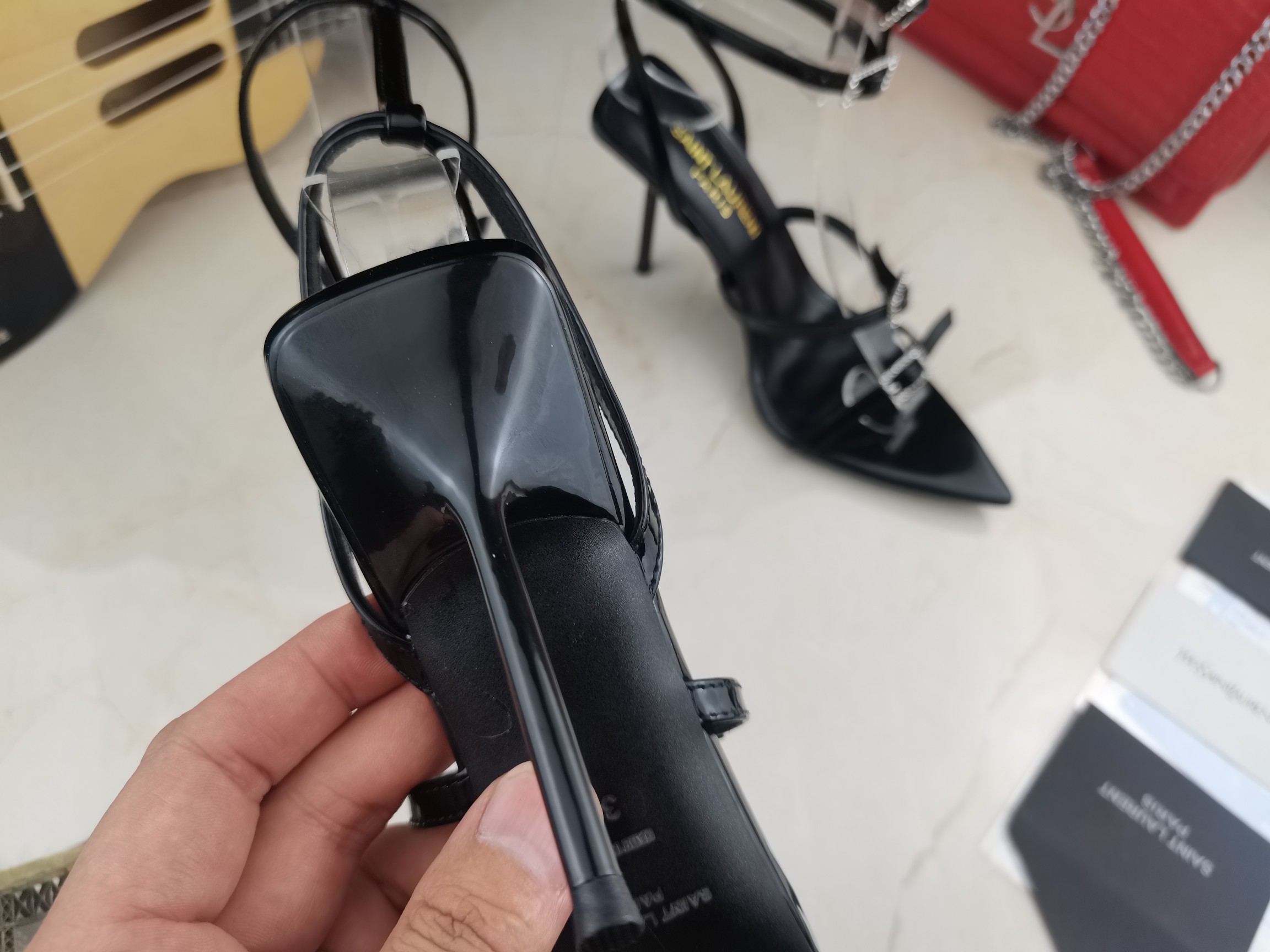 这款鞋子是AAAAA 1:1 质量 (非常棒). 使用了和原版一模一样的材料. 商标部分也保持了和圣罗兰/Saint Laurent一样. 图片拍摄是实物鞋子拍摄, 您所收到的实物保证和我们图片一模一样.