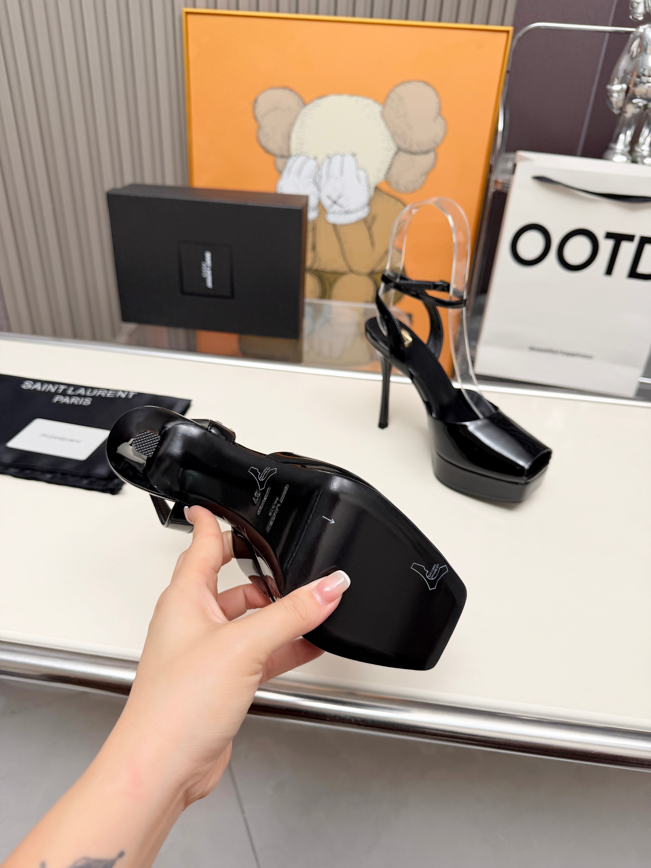 这款鞋子是AAAAA 1:1 质量 (非常棒). 使用了和原版一模一样的材料. 商标部分也保持了和圣罗兰/Saint Laurent一样. 图片拍摄是实物鞋子拍摄, 您所收到的实物保证和我们图片一模一样.
