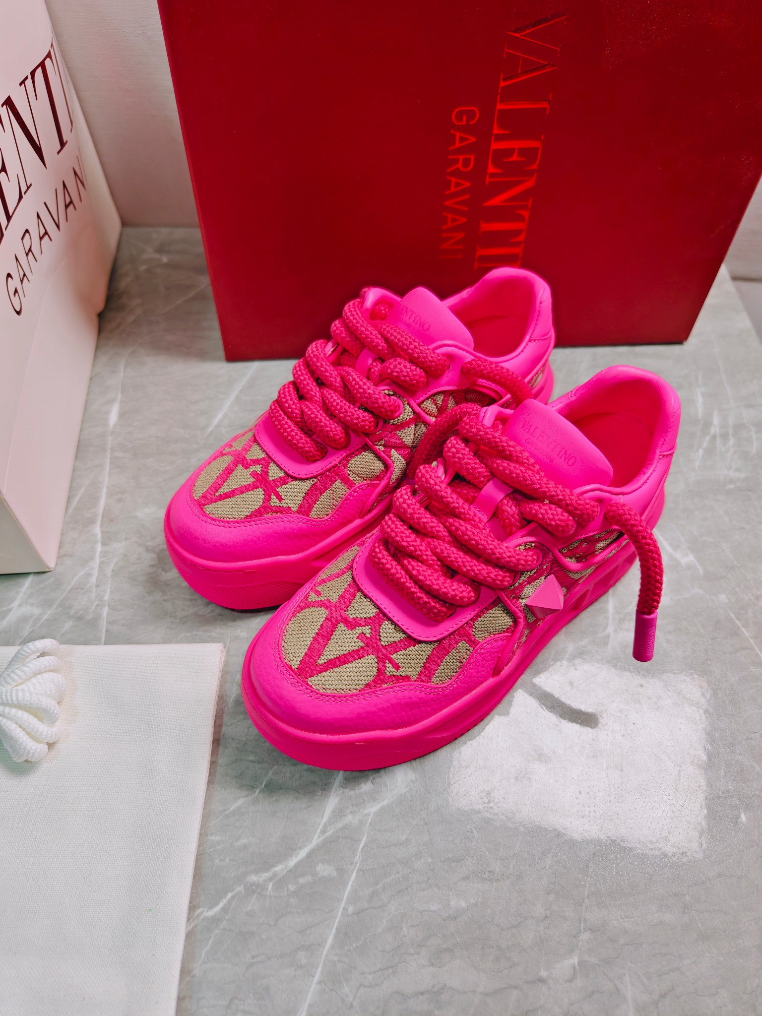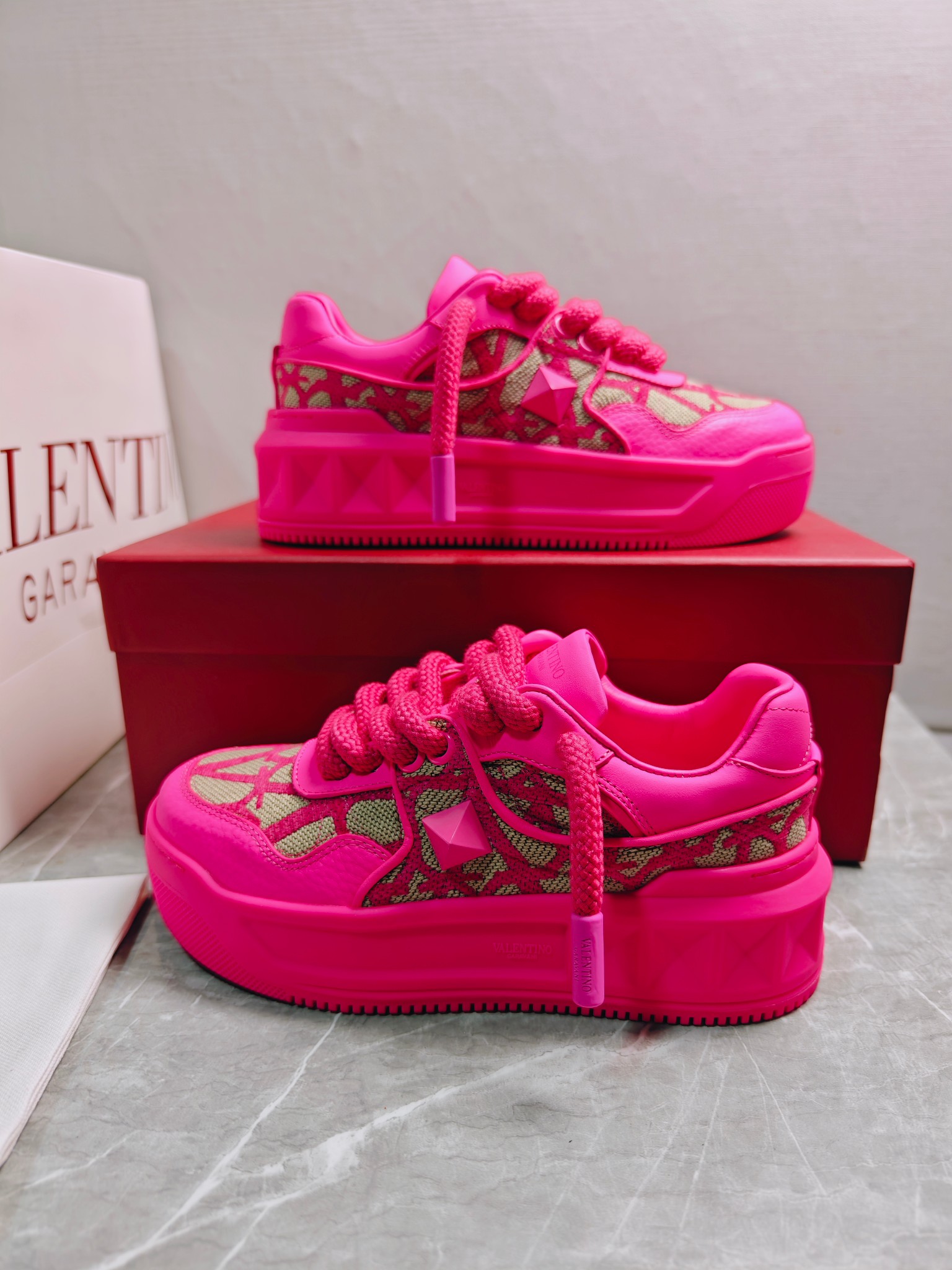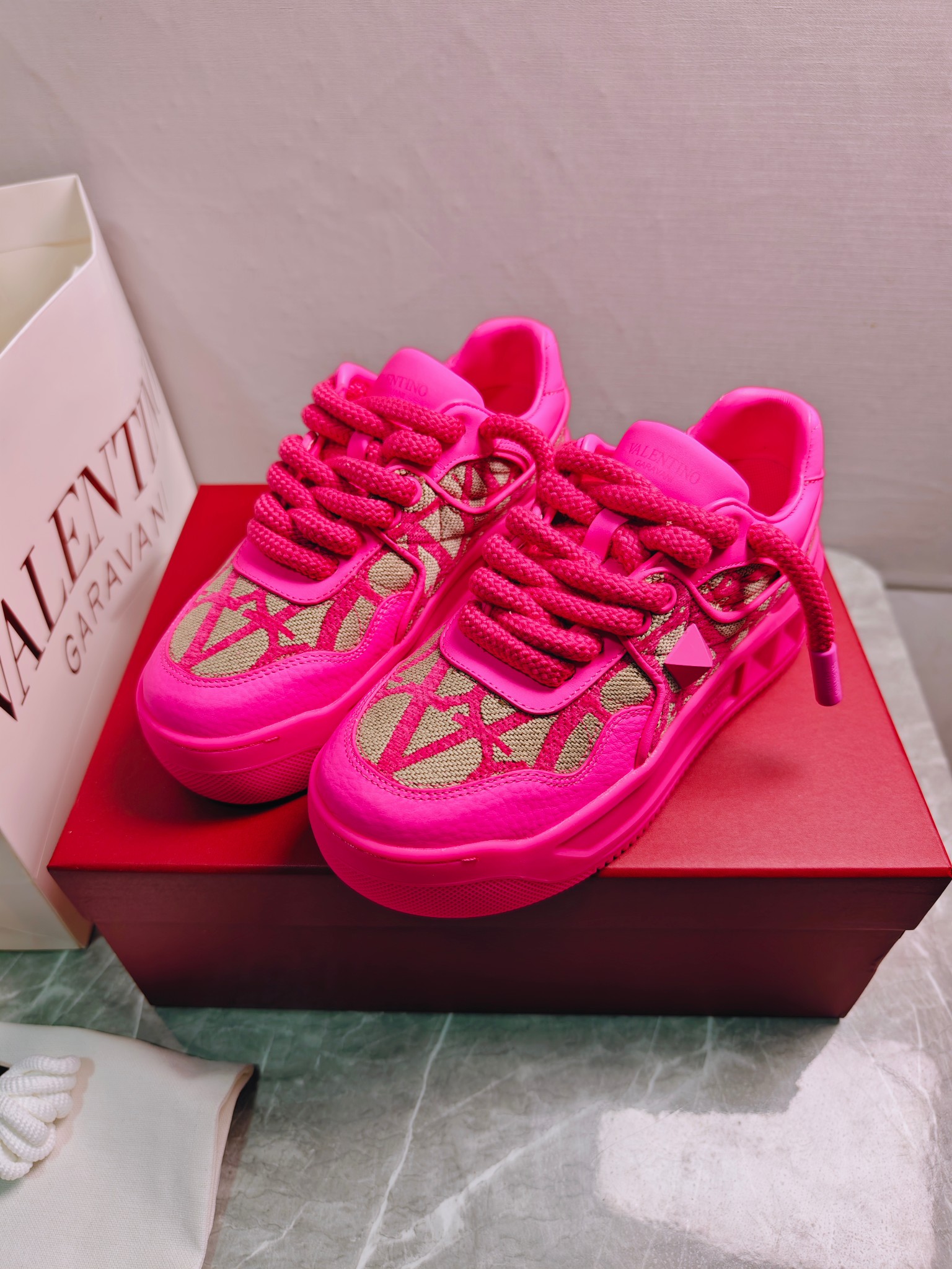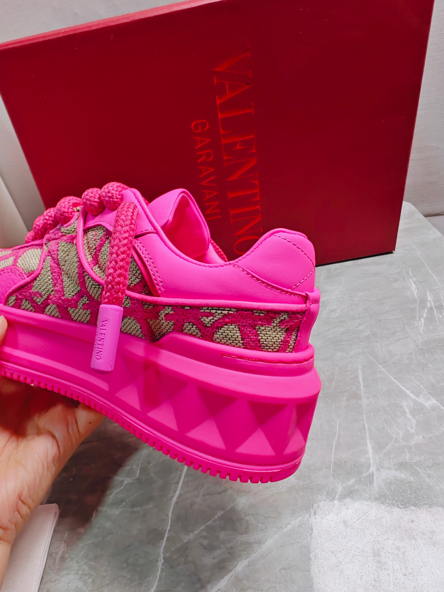 这款鞋子是AAAAA 1:1 质量 (非常棒). 使用了和原版一模一样的材料. 商标部分也保持了和华伦天奴/Valentino一样. 图片拍摄是实物鞋子拍摄, 您所收到的实物保证和我们图片一模一样.