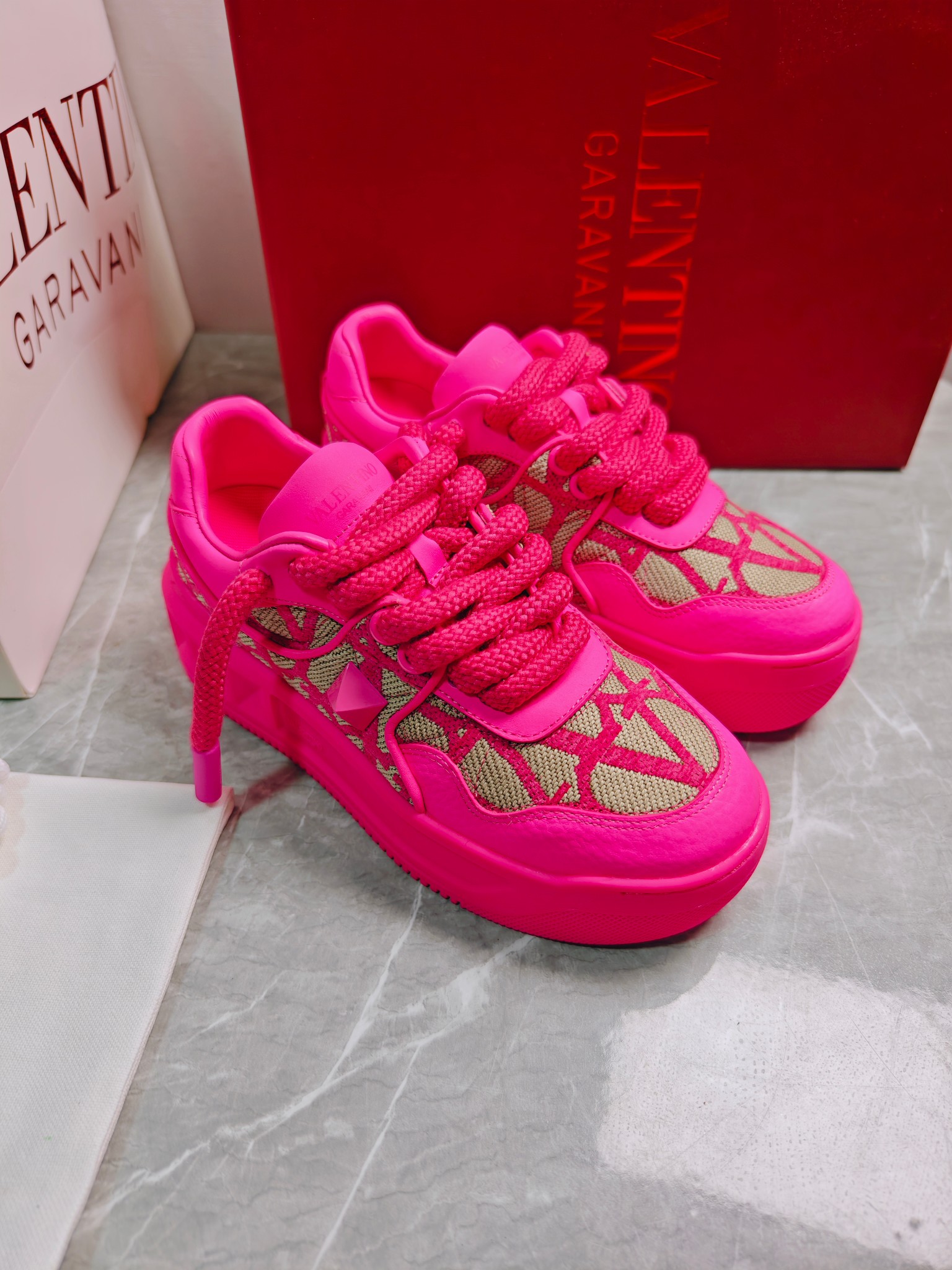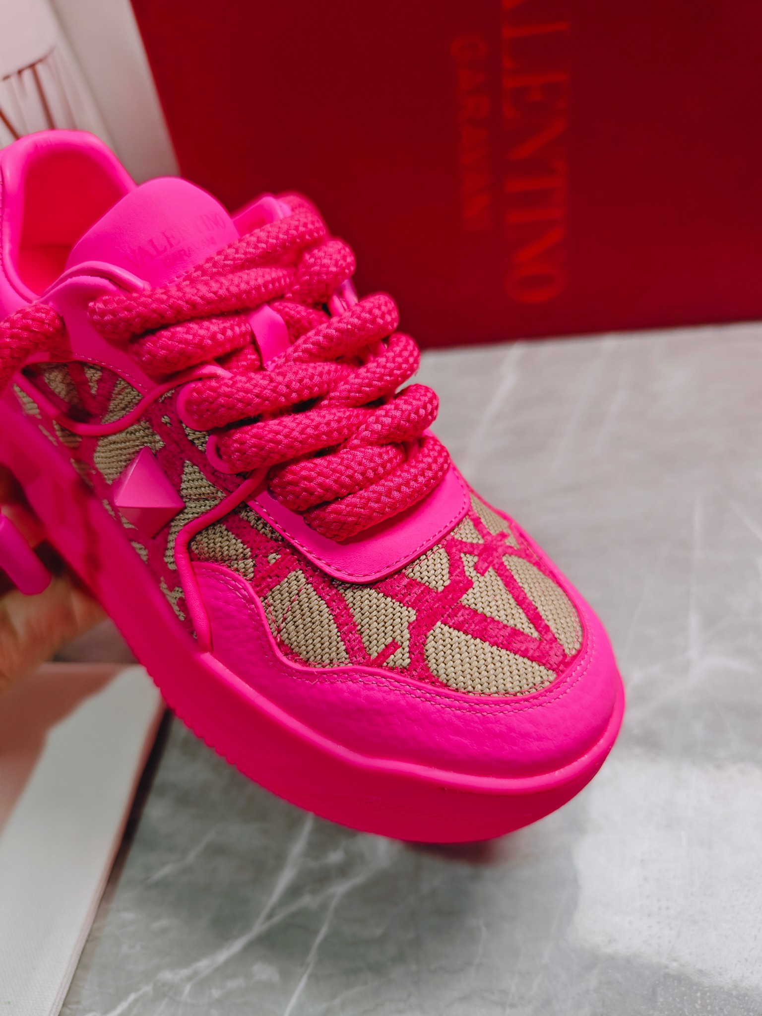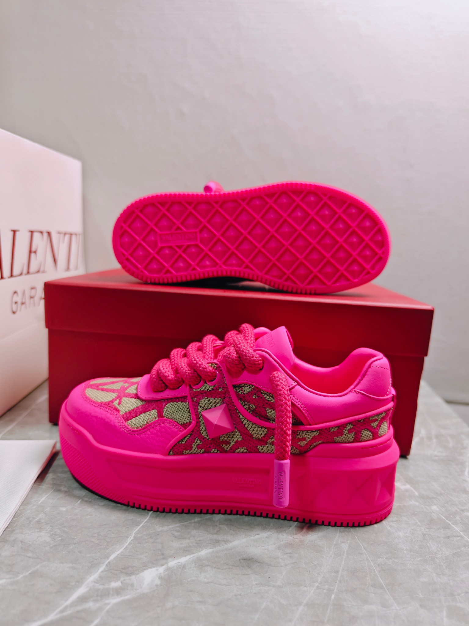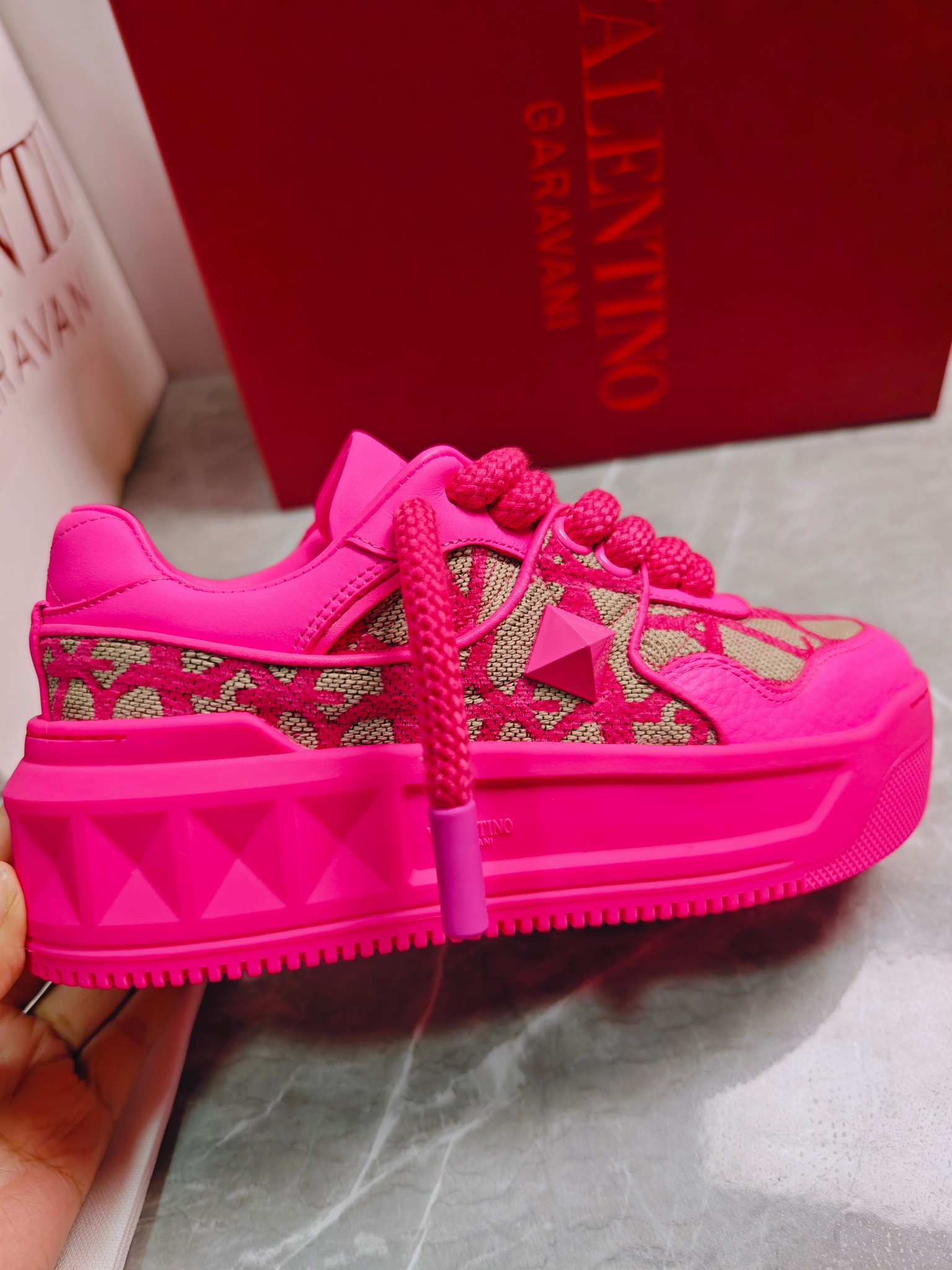 这款鞋子是AAAAA 1:1 质量 (非常棒). 使用了和原版一模一样的材料. 商标部分也保持了和华伦天奴/Valentino一样. 图片拍摄是实物鞋子拍摄, 您所收到的实物保证和我们图片一模一样.