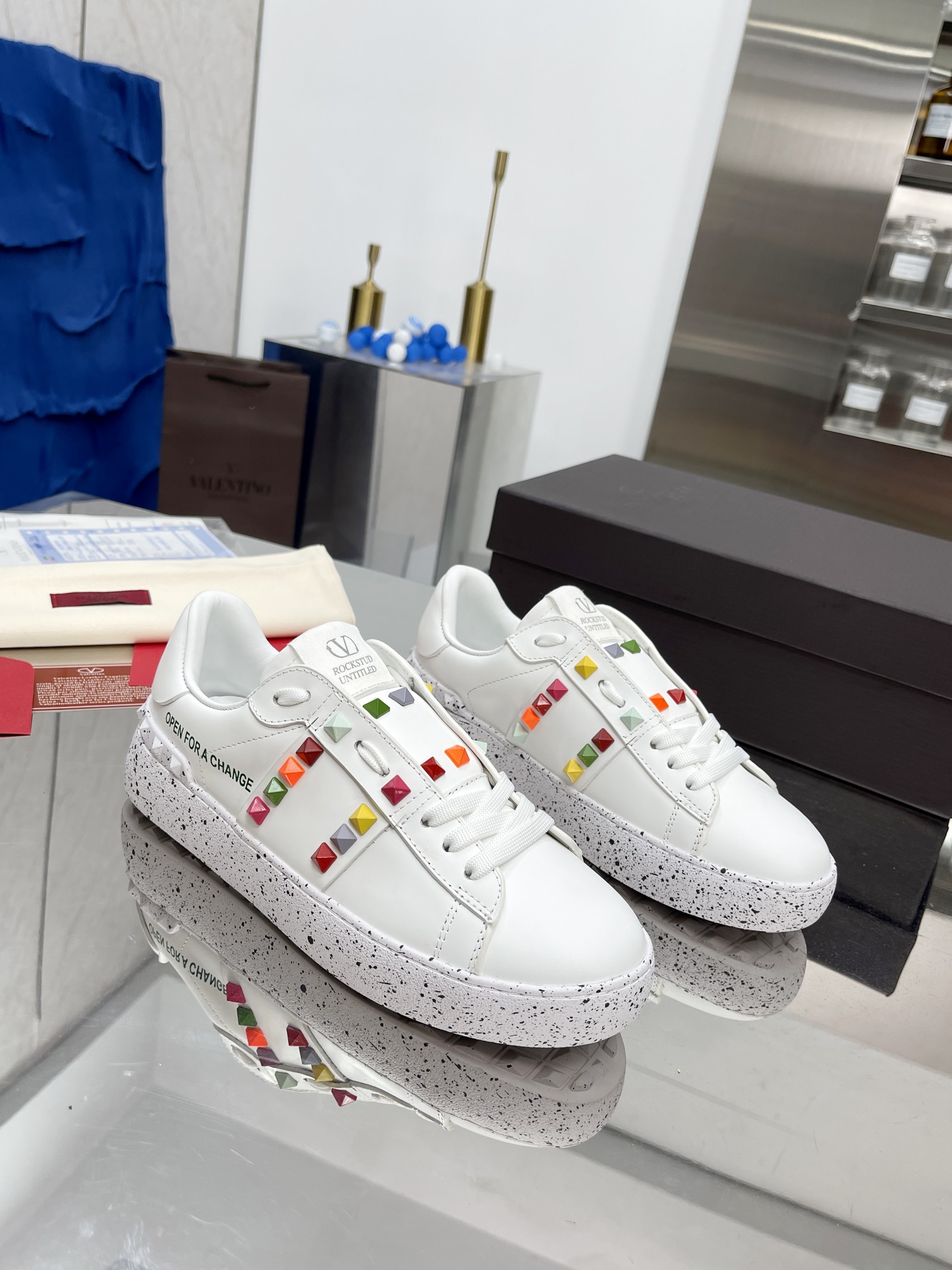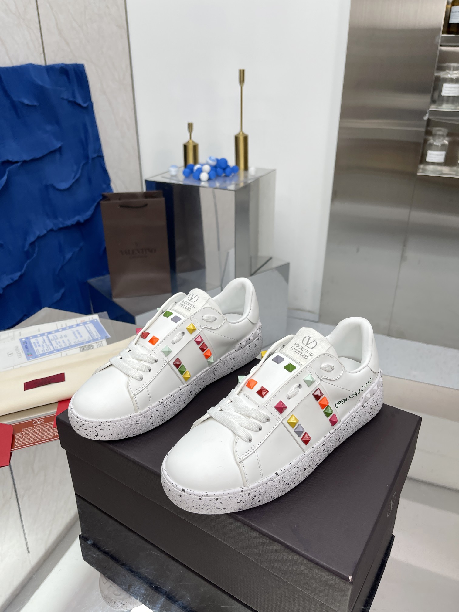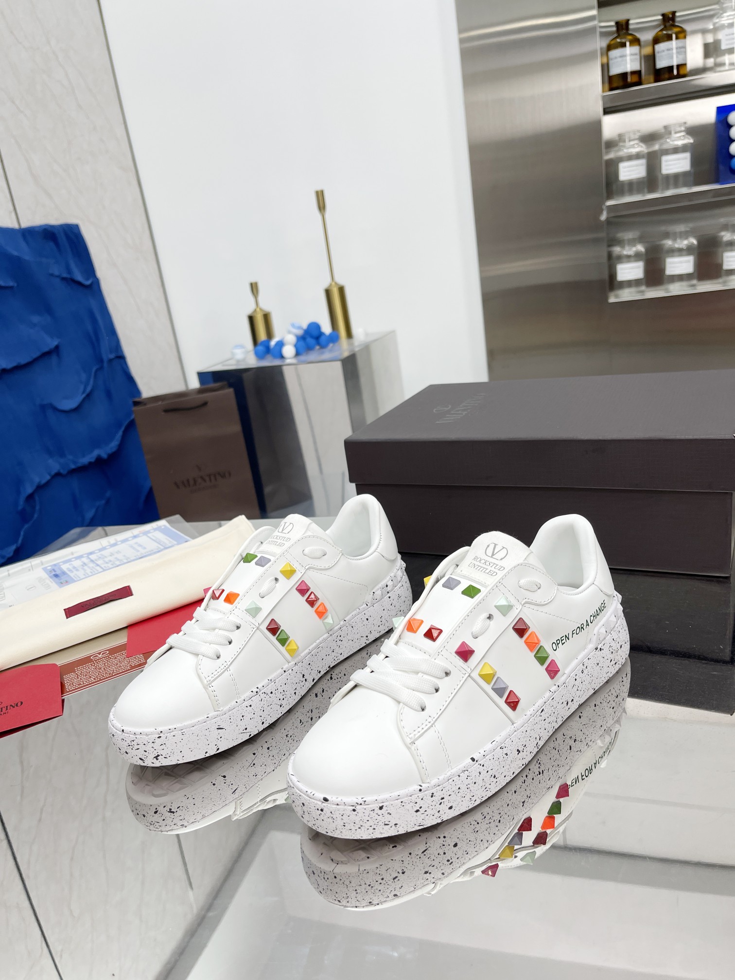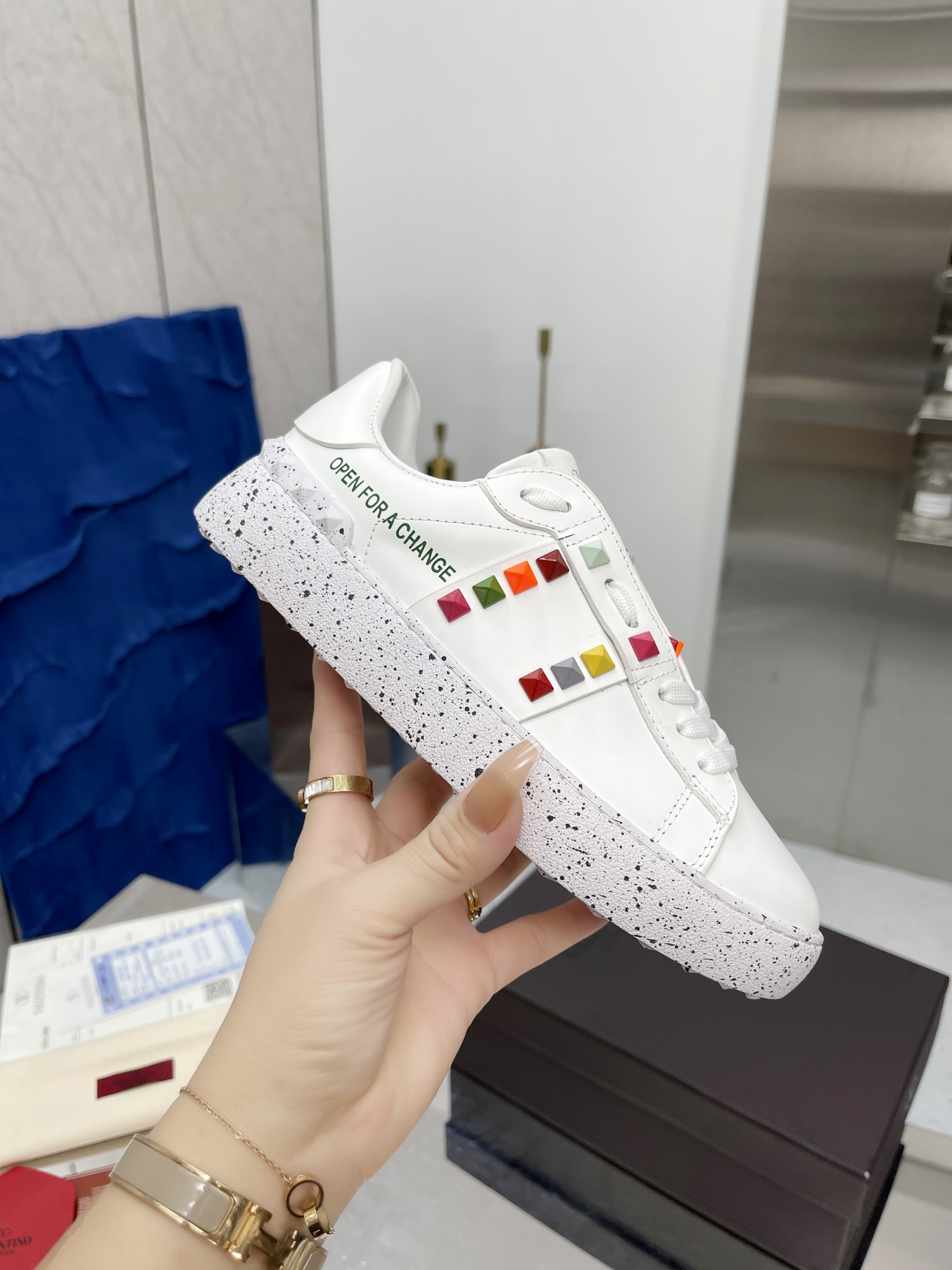 这款鞋子是AAAAA 1:1 质量 (非常棒). 使用了和原版一模一样的材料. 商标部分也保持了和华伦天奴/Valentino一样. 图片拍摄是实物鞋子拍摄, 您所收到的实物保证和我们图片一模一样.