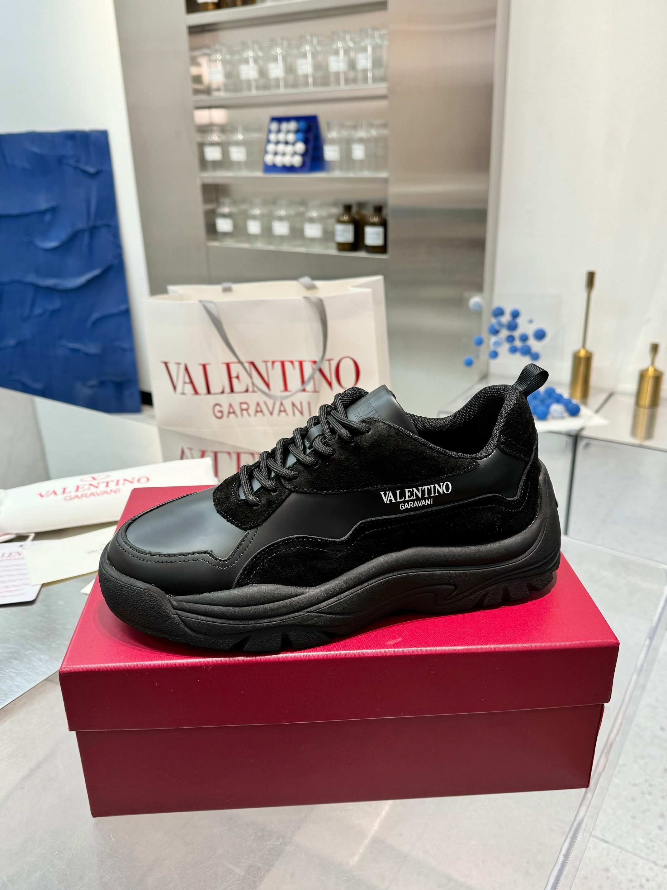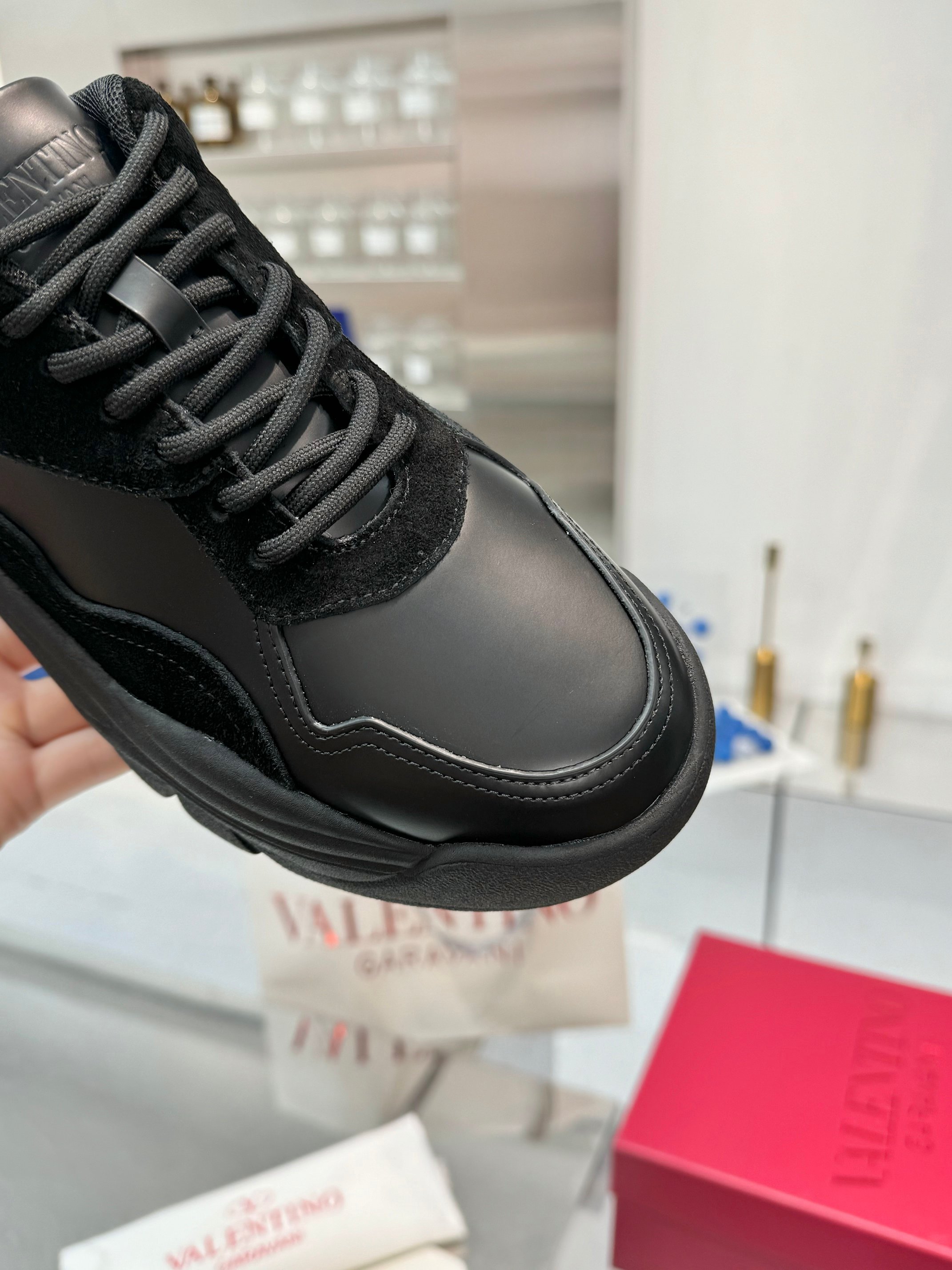 这款鞋子是AAAAA 1:1 质量 (非常棒). 使用了和原版一模一样的材料. 商标部分也保持了和华伦天奴/Valentino一样. 图片拍摄是实物鞋子拍摄, 您所收到的实物保证和我们图片一模一样.