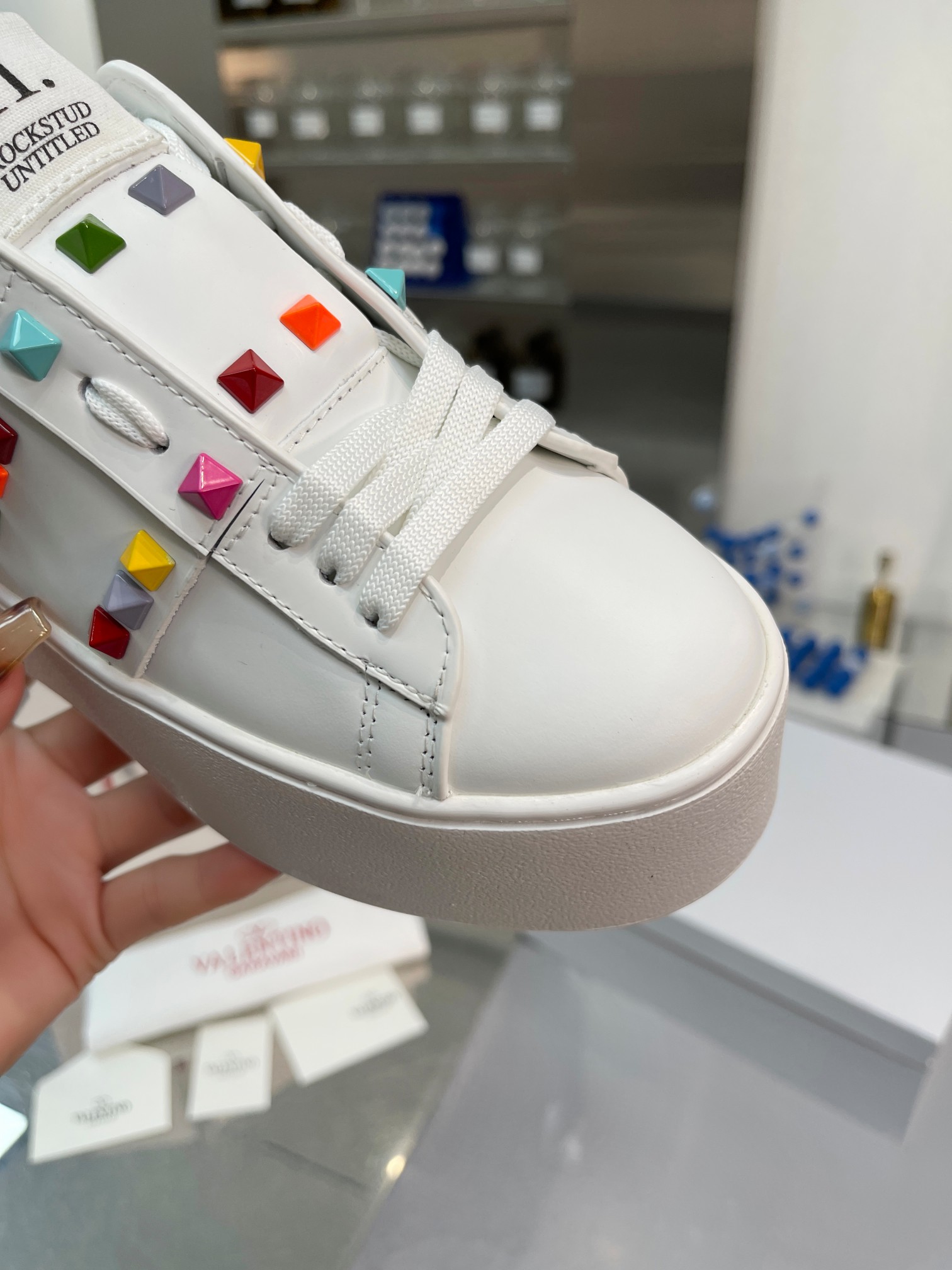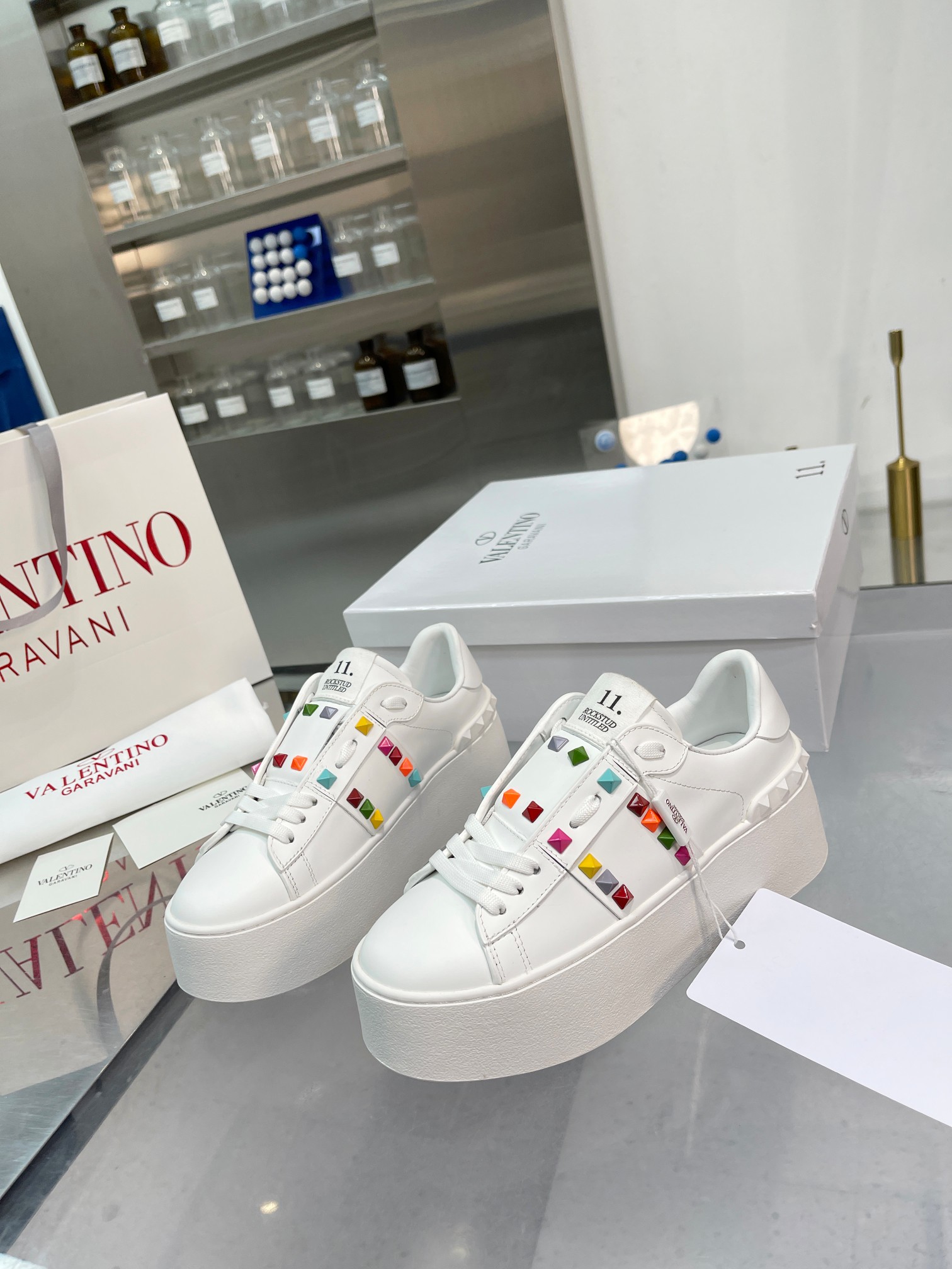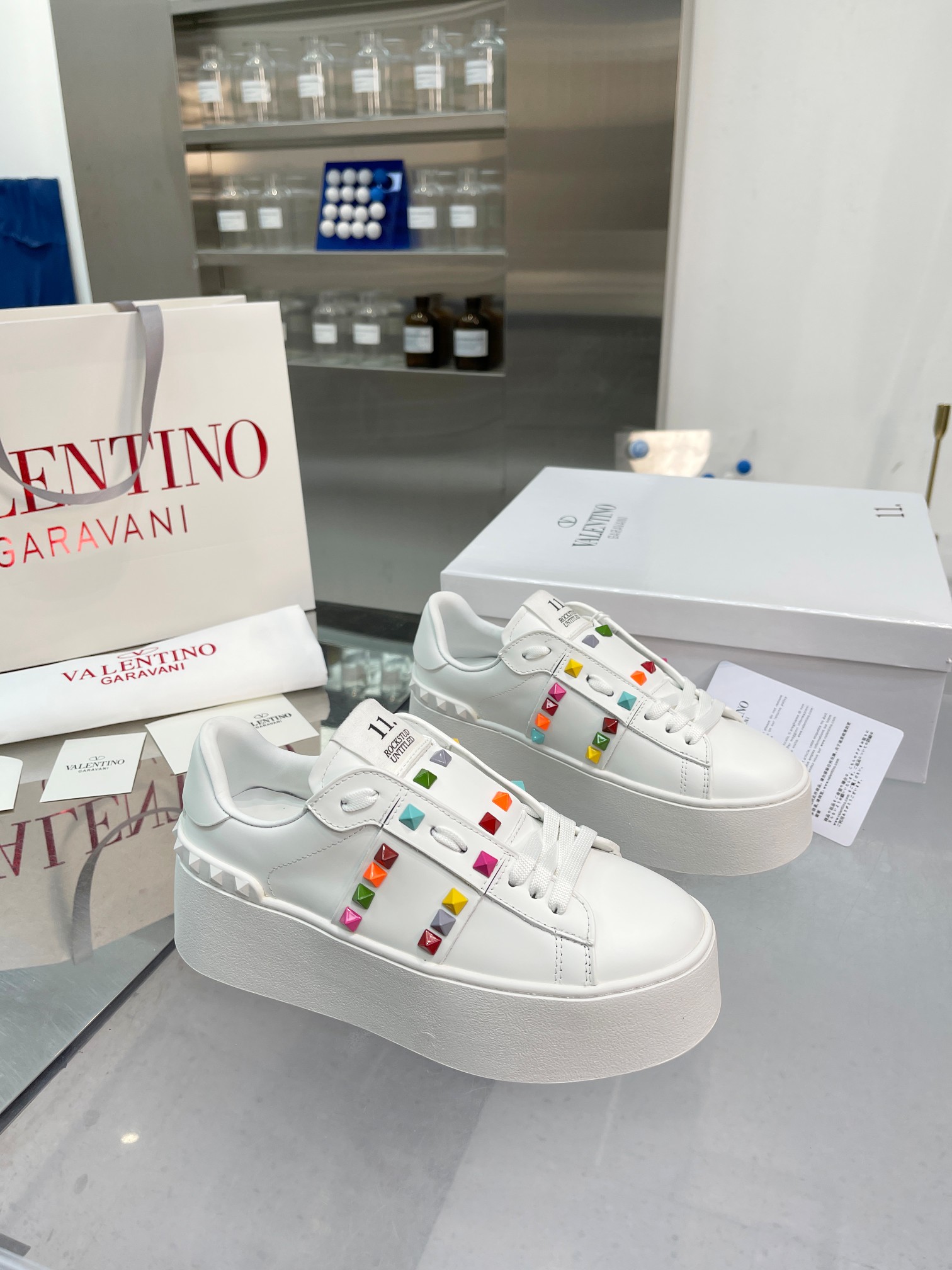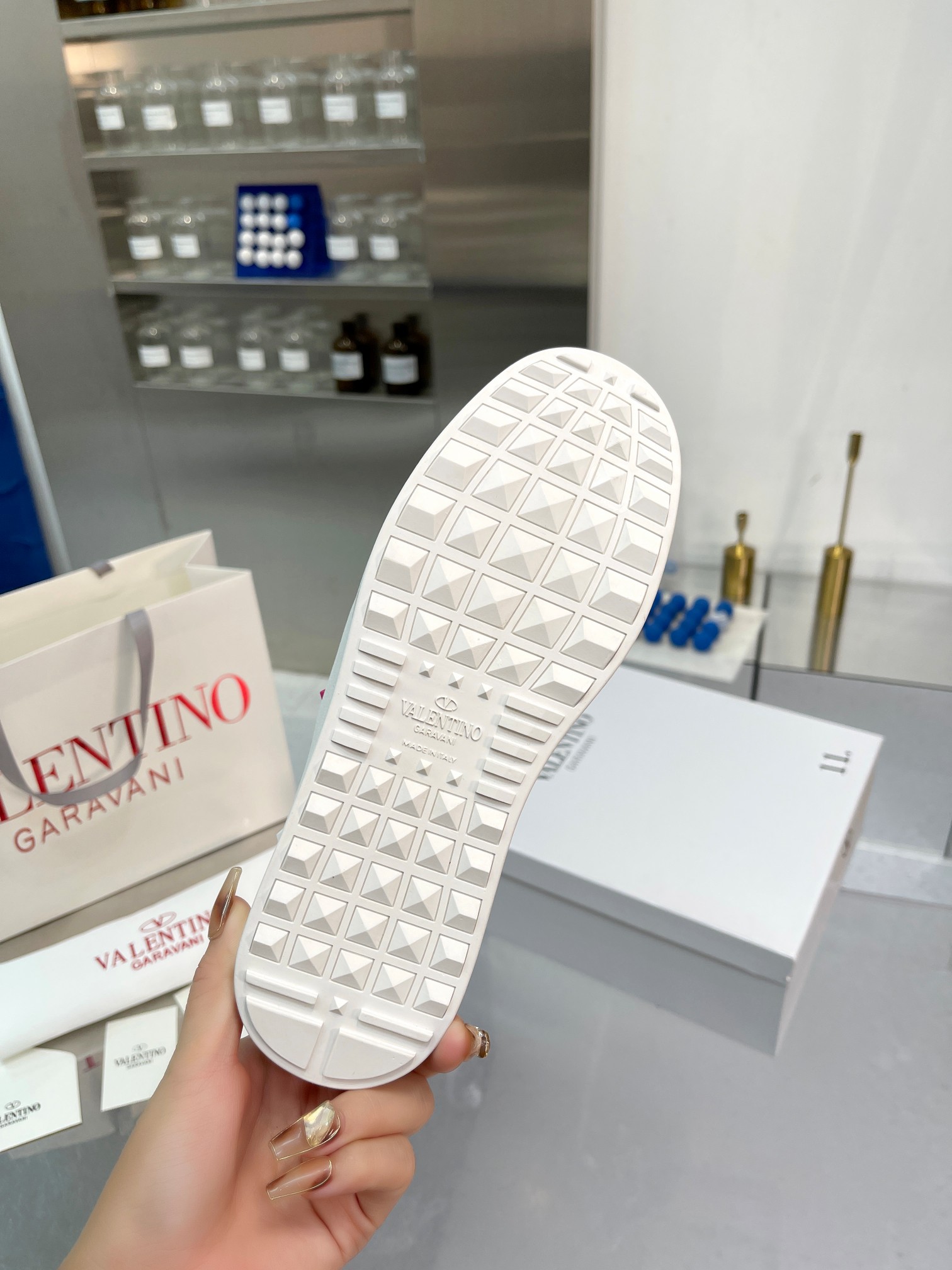 这款鞋子是AAAAA 1:1 质量 (非常棒). 使用了和原版一模一样的材料. 商标部分也保持了和华伦天奴/Valentino一样. 图片拍摄是实物鞋子拍摄, 您所收到的实物保证和我们图片一模一样.