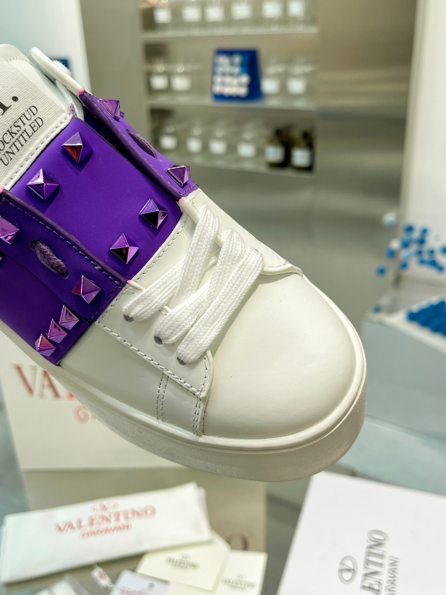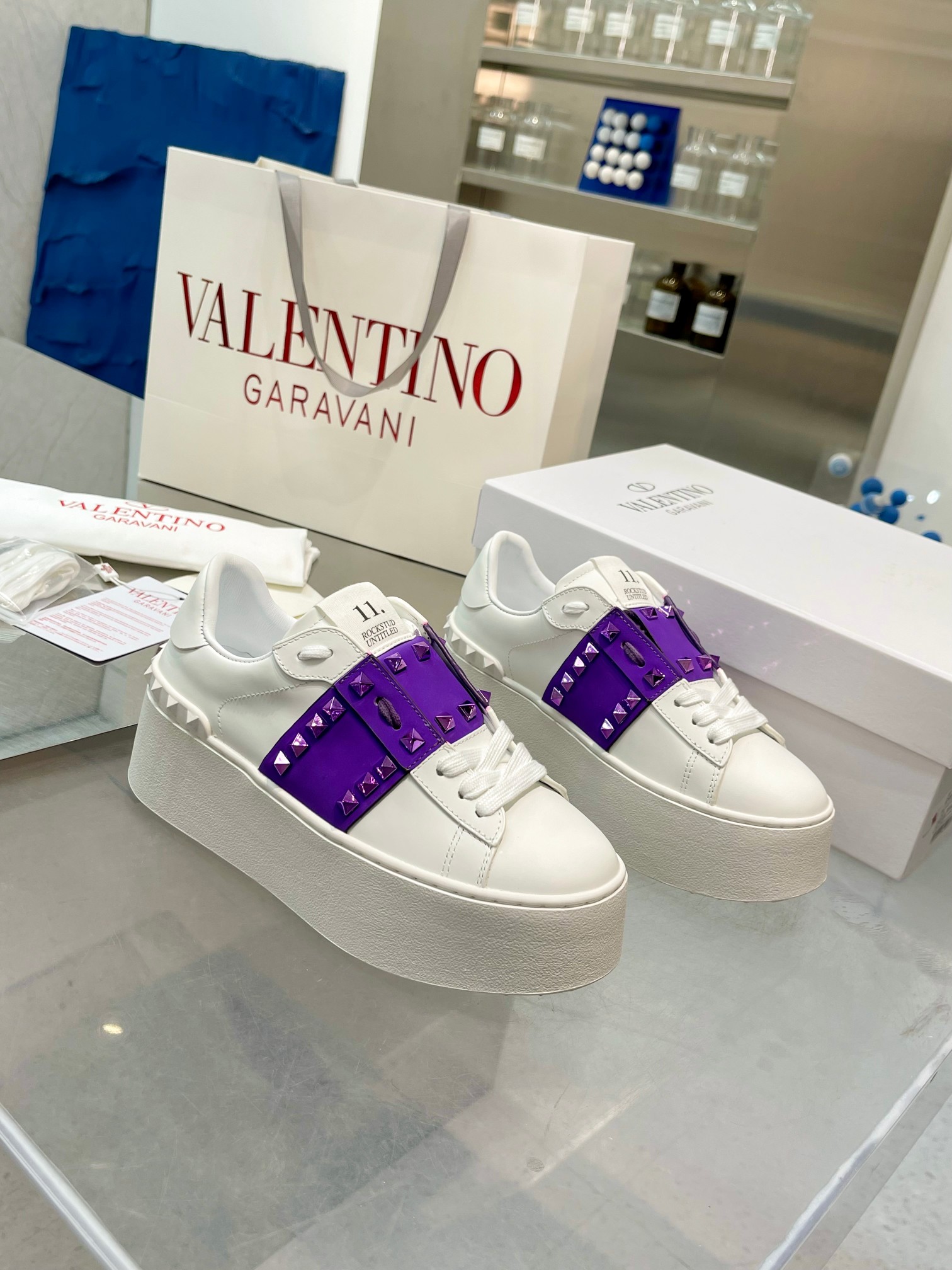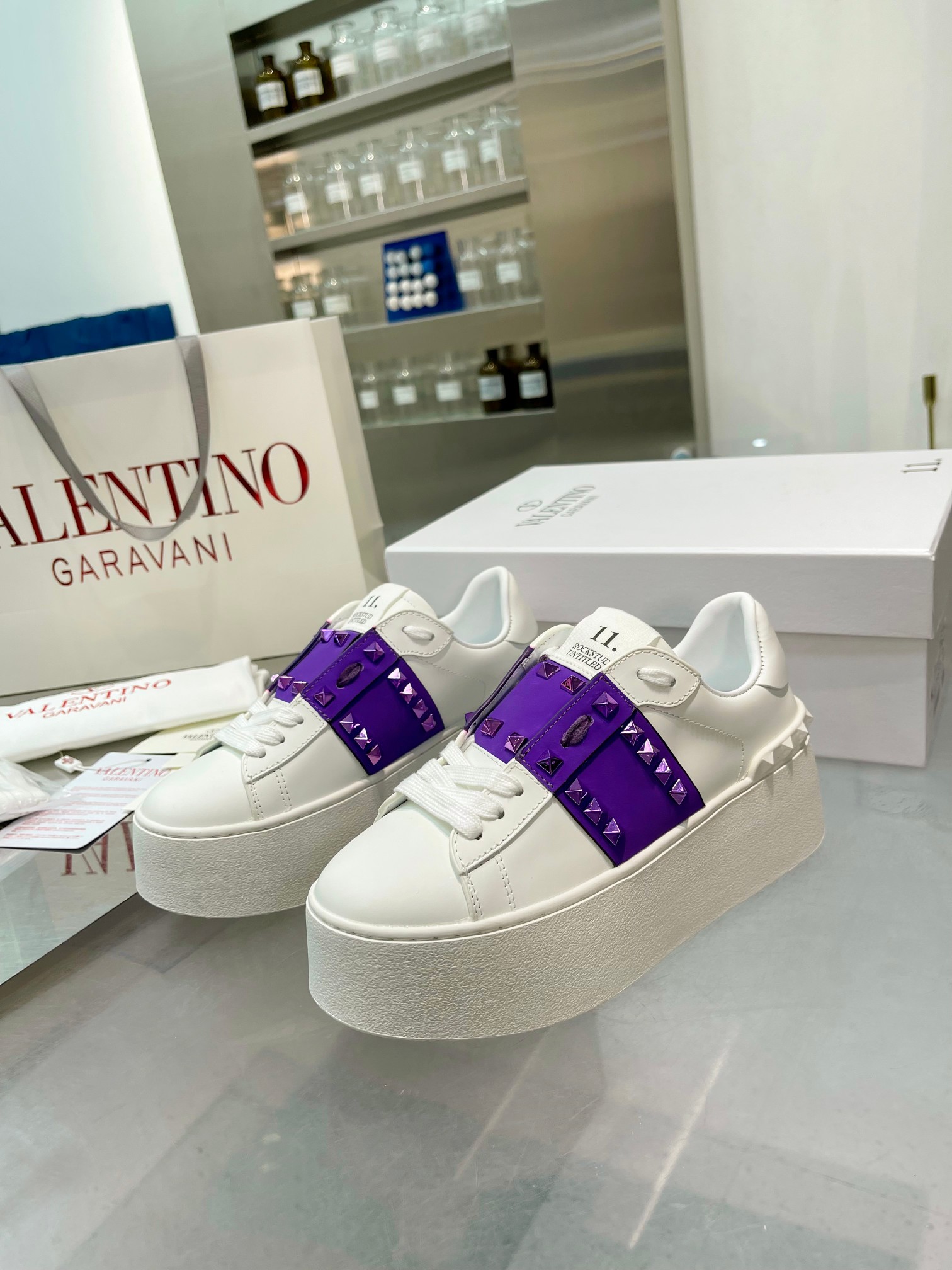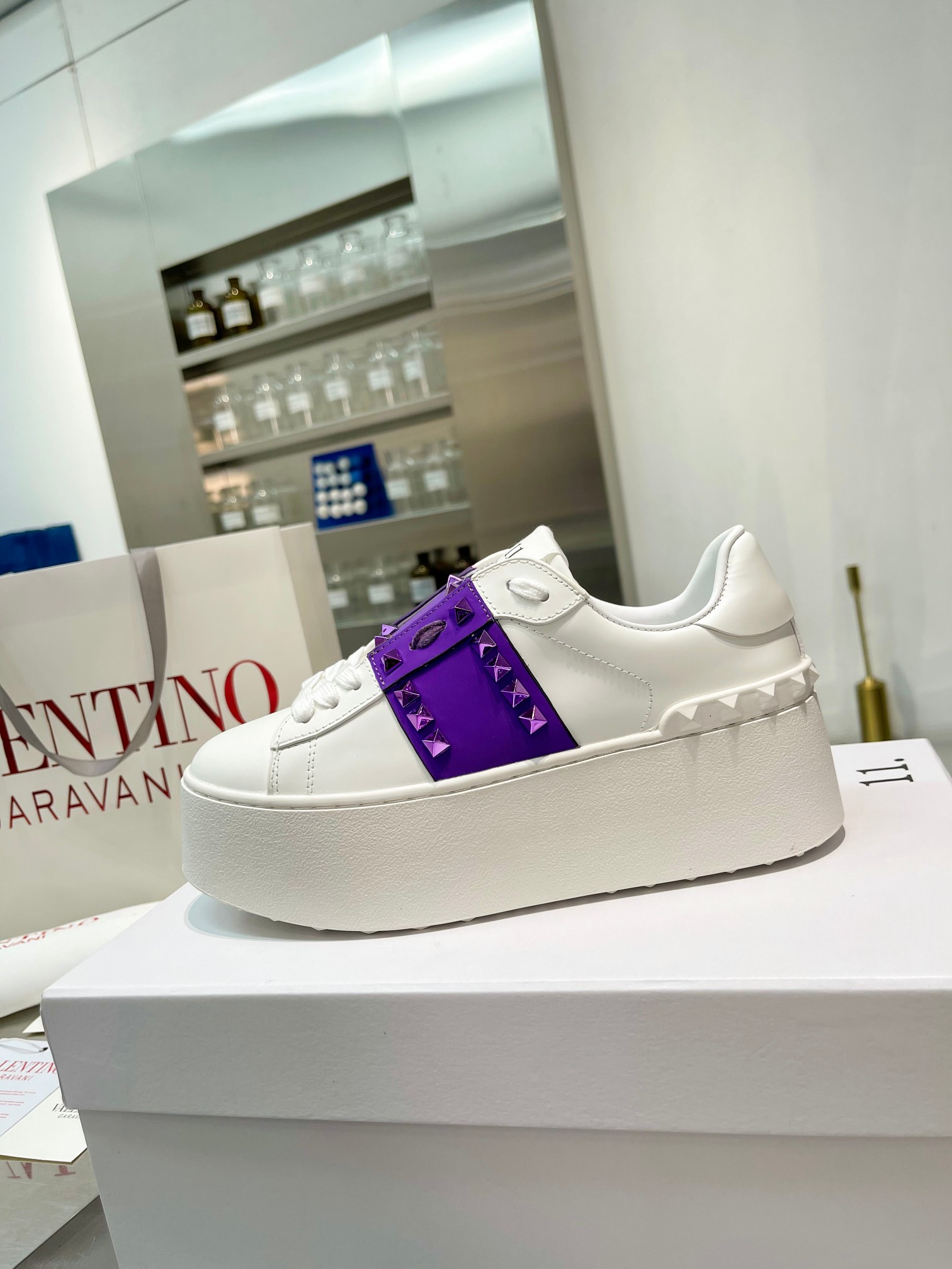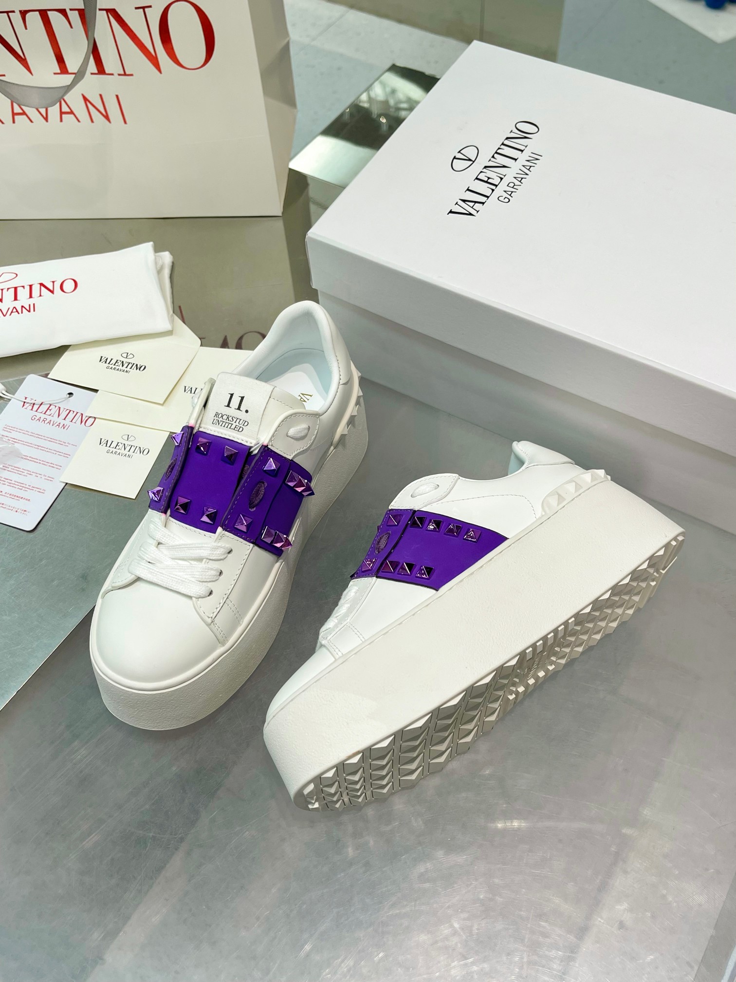 这款鞋子是AAAAA 1:1 质量 (非常棒). 使用了和原版一模一样的材料. 商标部分也保持了和华伦天奴/Valentino一样. 图片拍摄是实物鞋子拍摄, 您所收到的实物保证和我们图片一模一样.