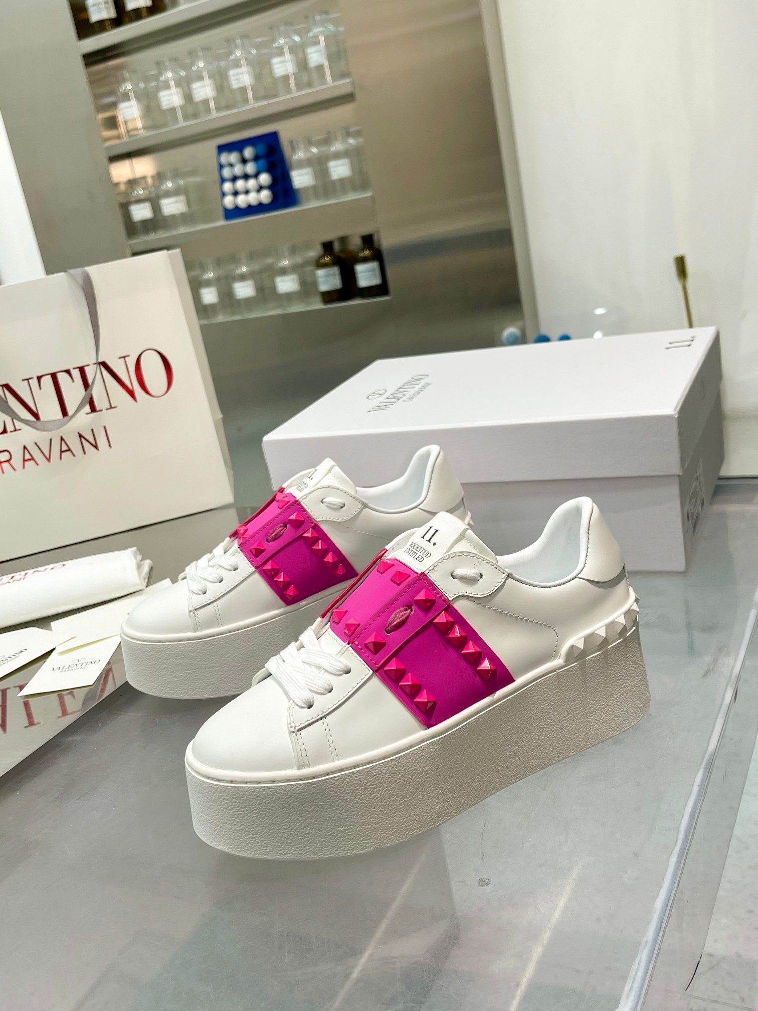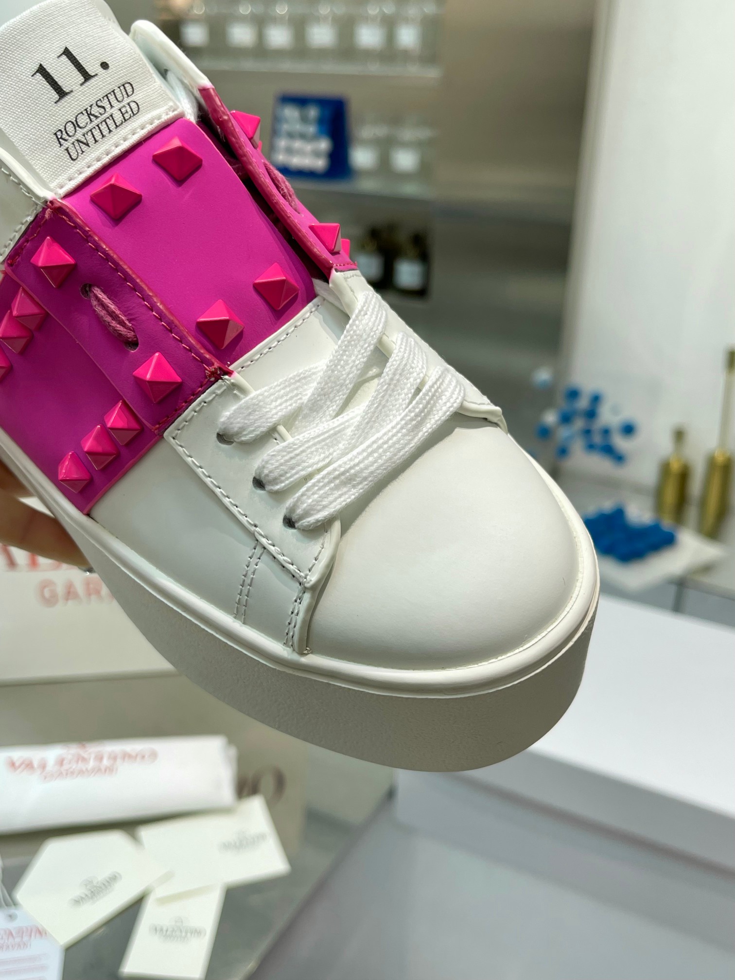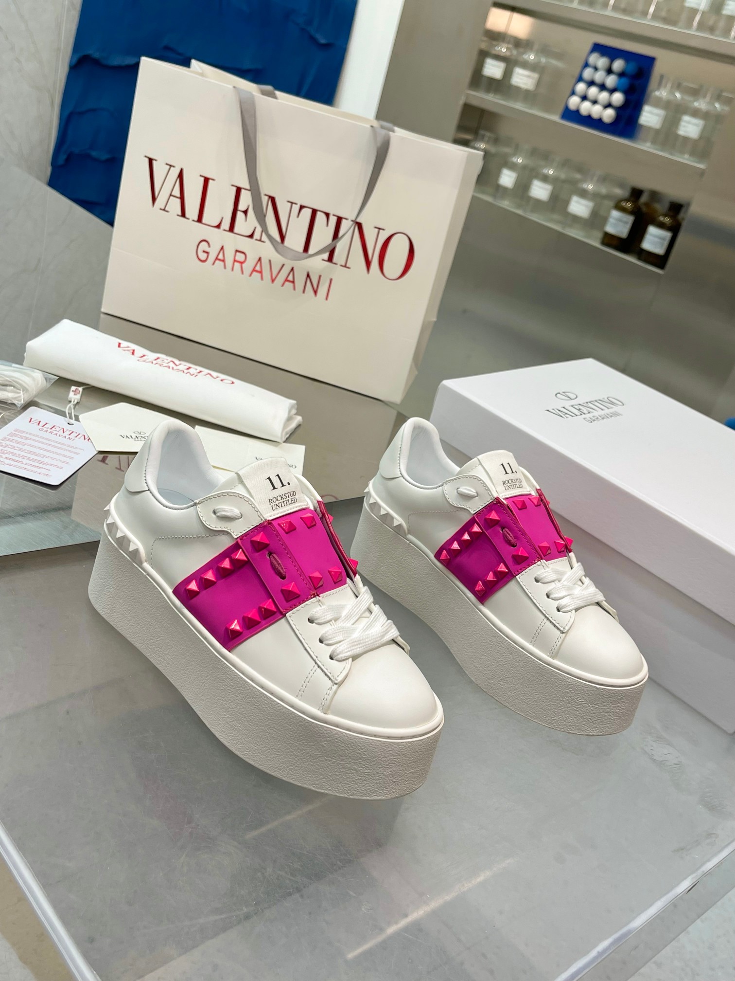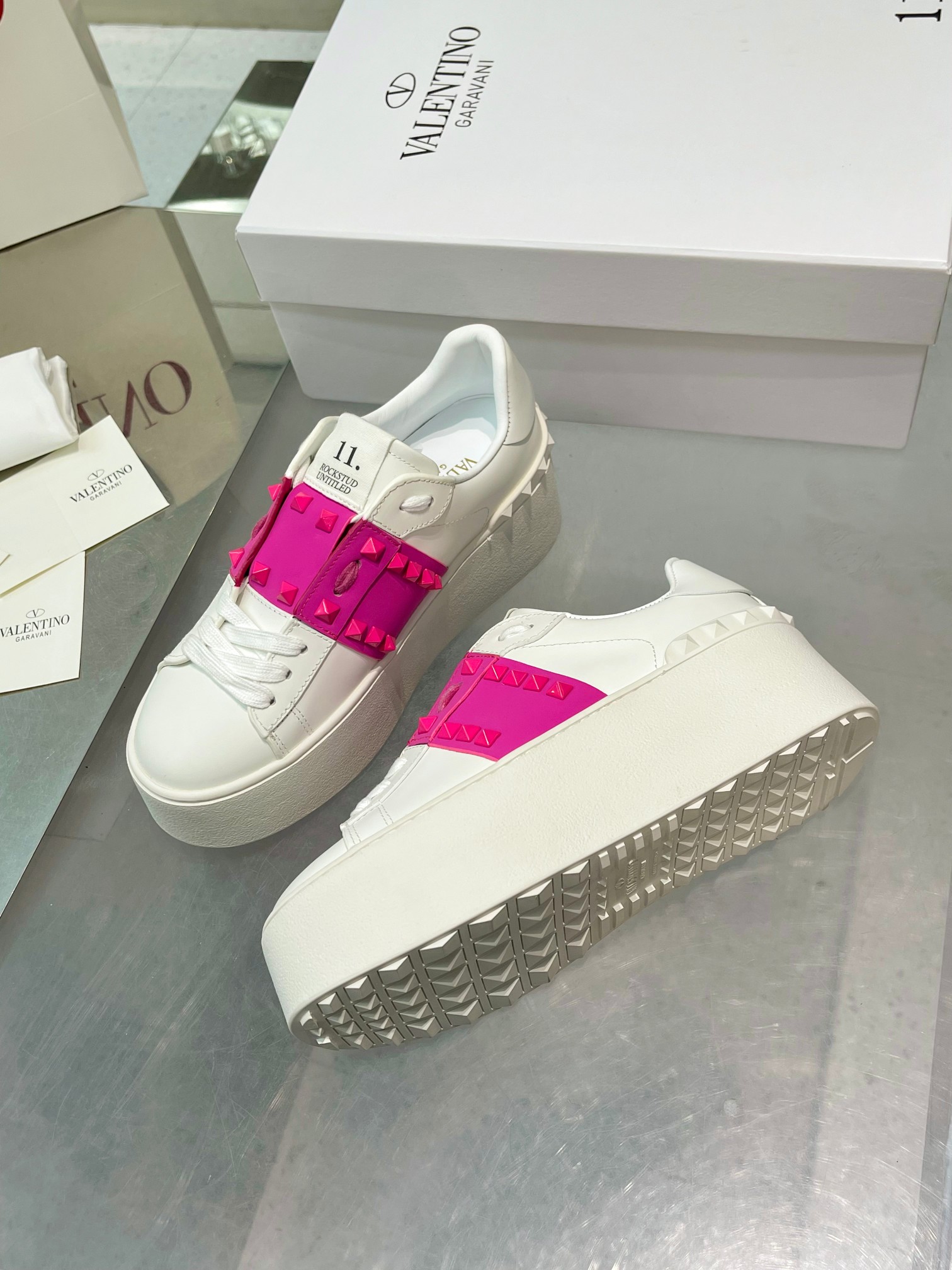 这款鞋子是AAAAA 1:1 质量 (非常棒). 使用了和原版一模一样的材料. 商标部分也保持了和华伦天奴/Valentino一样. 图片拍摄是实物鞋子拍摄, 您所收到的实物保证和我们图片一模一样.