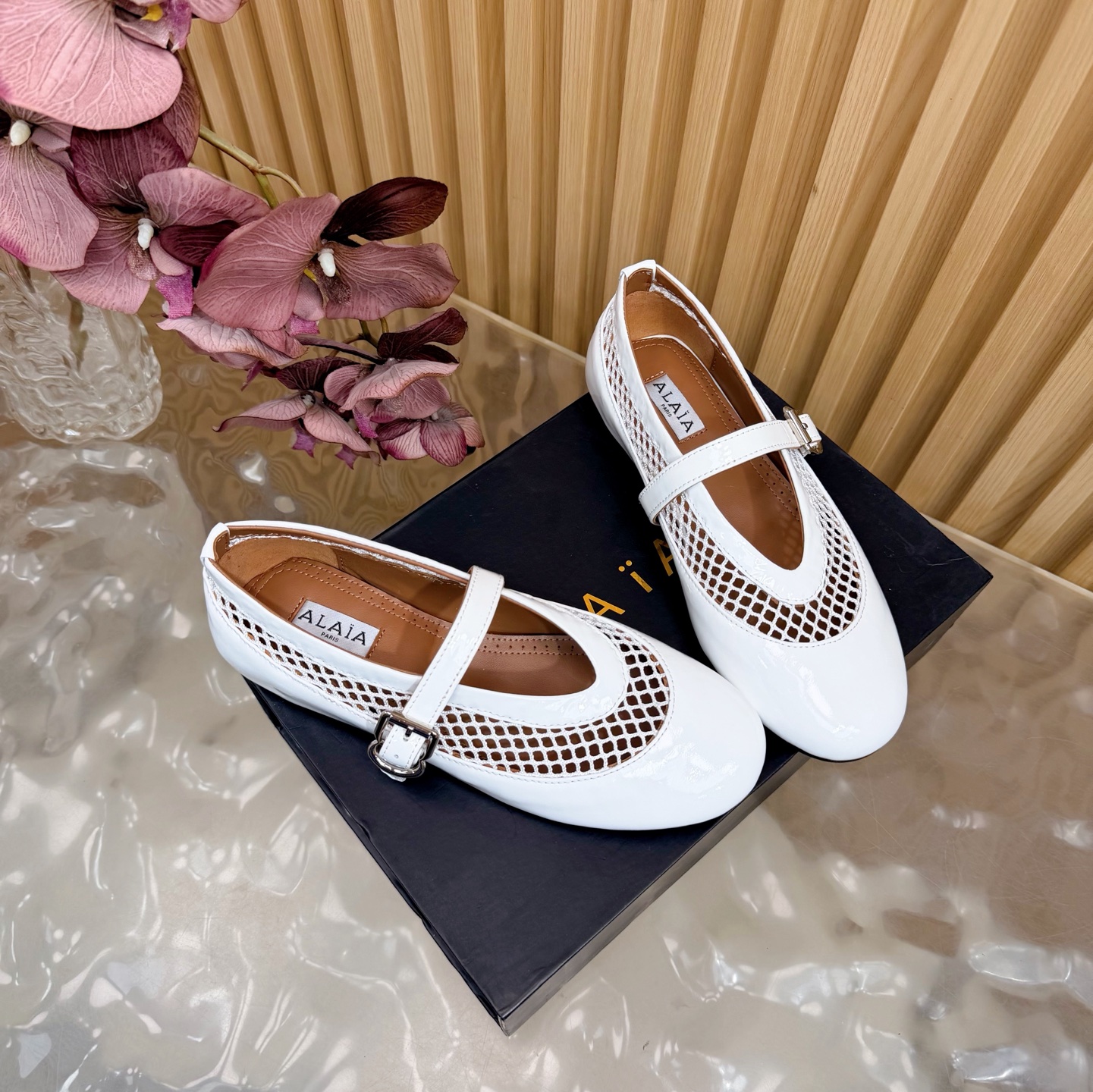 这款鞋子是AAAAA 1:1 质量 (非常棒). 使用了和原版一模一样的材料. 商标部分也保持了和Alaia一样. 图片拍摄是实物鞋子拍摄, 您所收到的实物保证和我们图片一模一样.