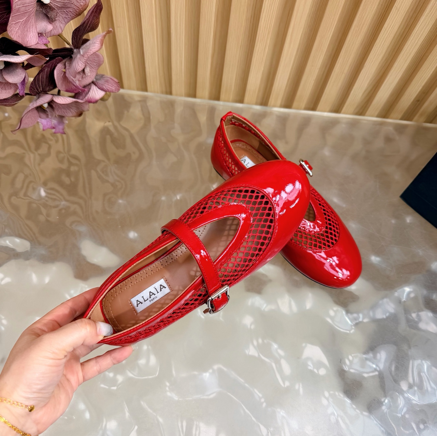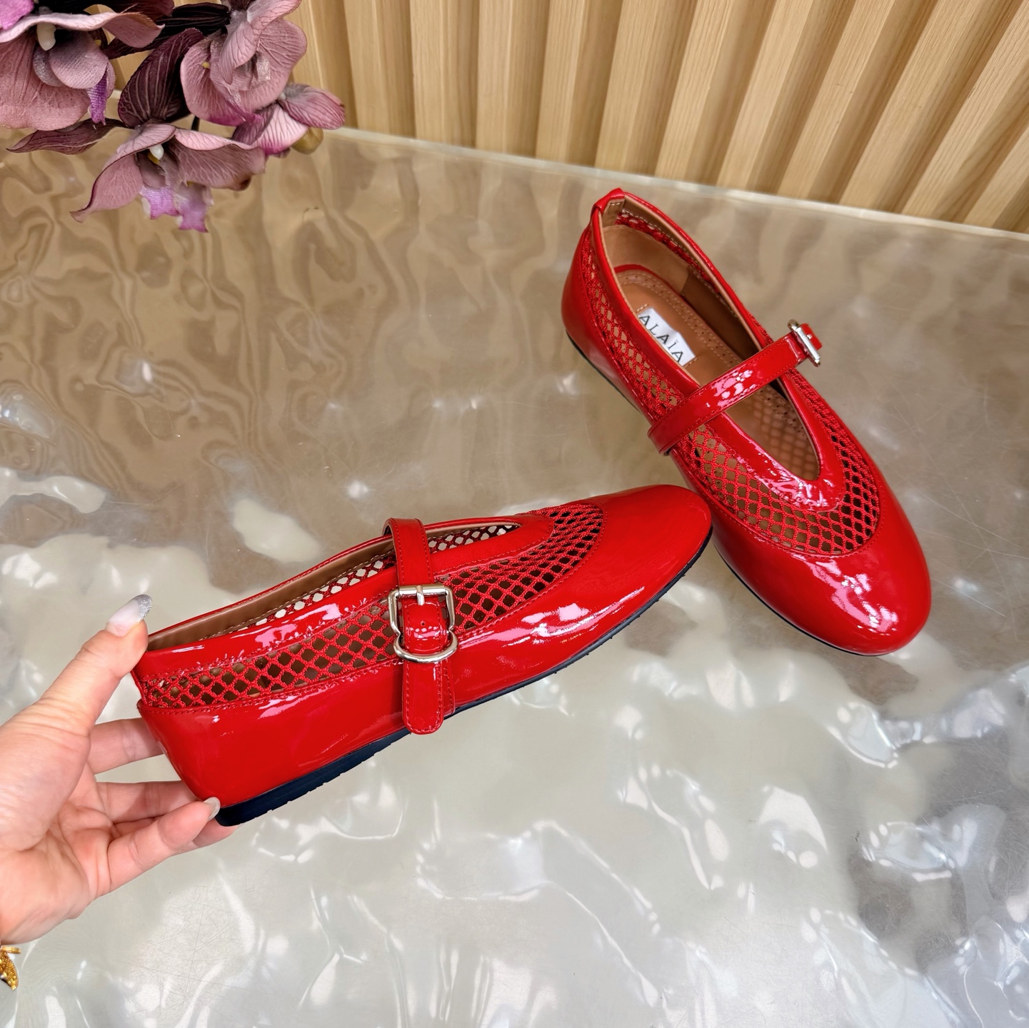 这款鞋子是AAAAA 1:1 质量 (非常棒). 使用了和原版一模一样的材料. 商标部分也保持了和Alaia一样. 图片拍摄是实物鞋子拍摄, 您所收到的实物保证和我们图片一模一样.