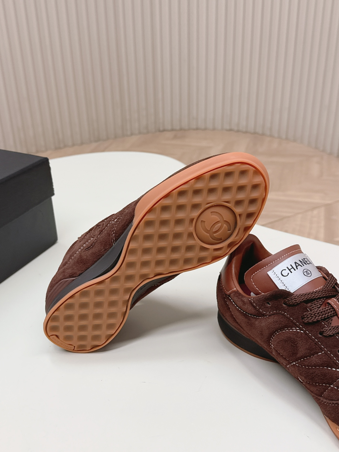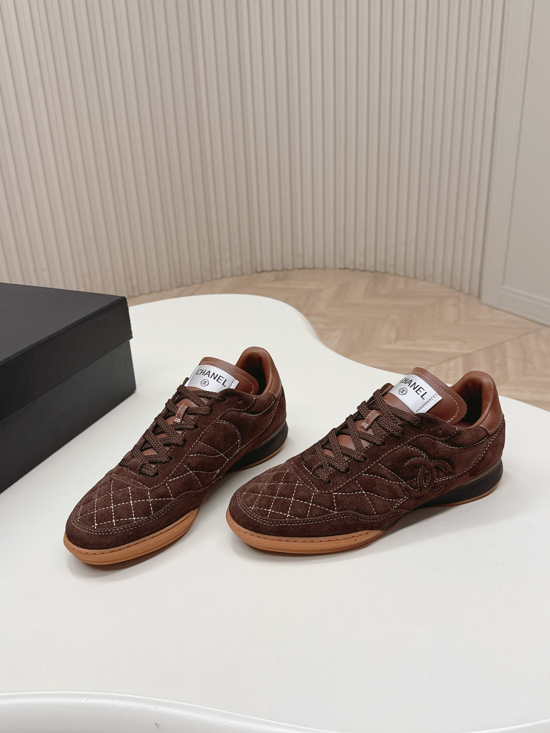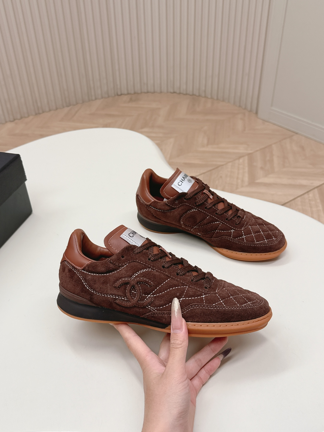 这款鞋子是AAAAA 1:1 质量 (非常棒). 使用了和原版一模一样的材料. 商标部分也保持了和香奈儿/Chanel一样. 图片拍摄是实物鞋子拍摄, 您所收到的实物保证和我们图片一模一样.