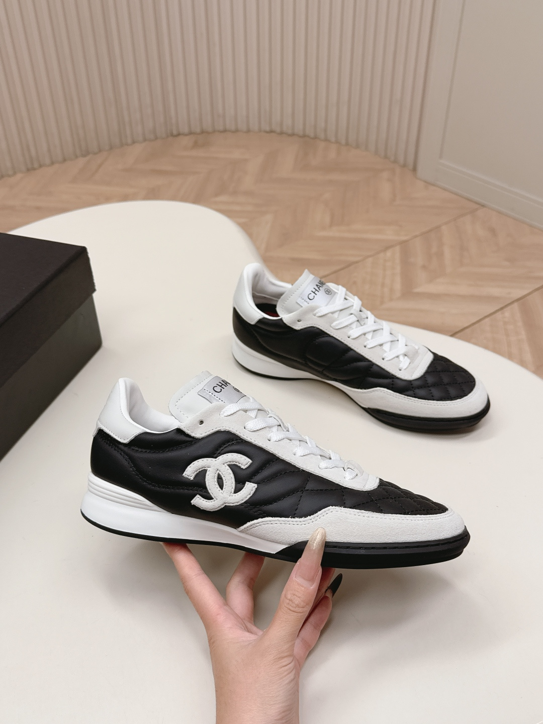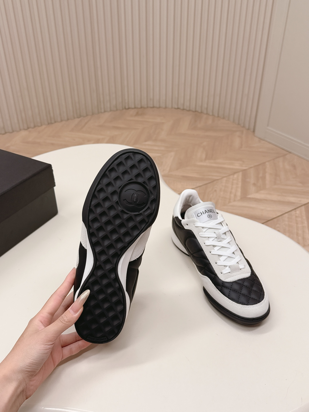 这款鞋子是AAAAA 1:1 质量 (非常棒). 使用了和原版一模一样的材料. 商标部分也保持了和香奈儿/Chanel一样. 图片拍摄是实物鞋子拍摄, 您所收到的实物保证和我们图片一模一样.