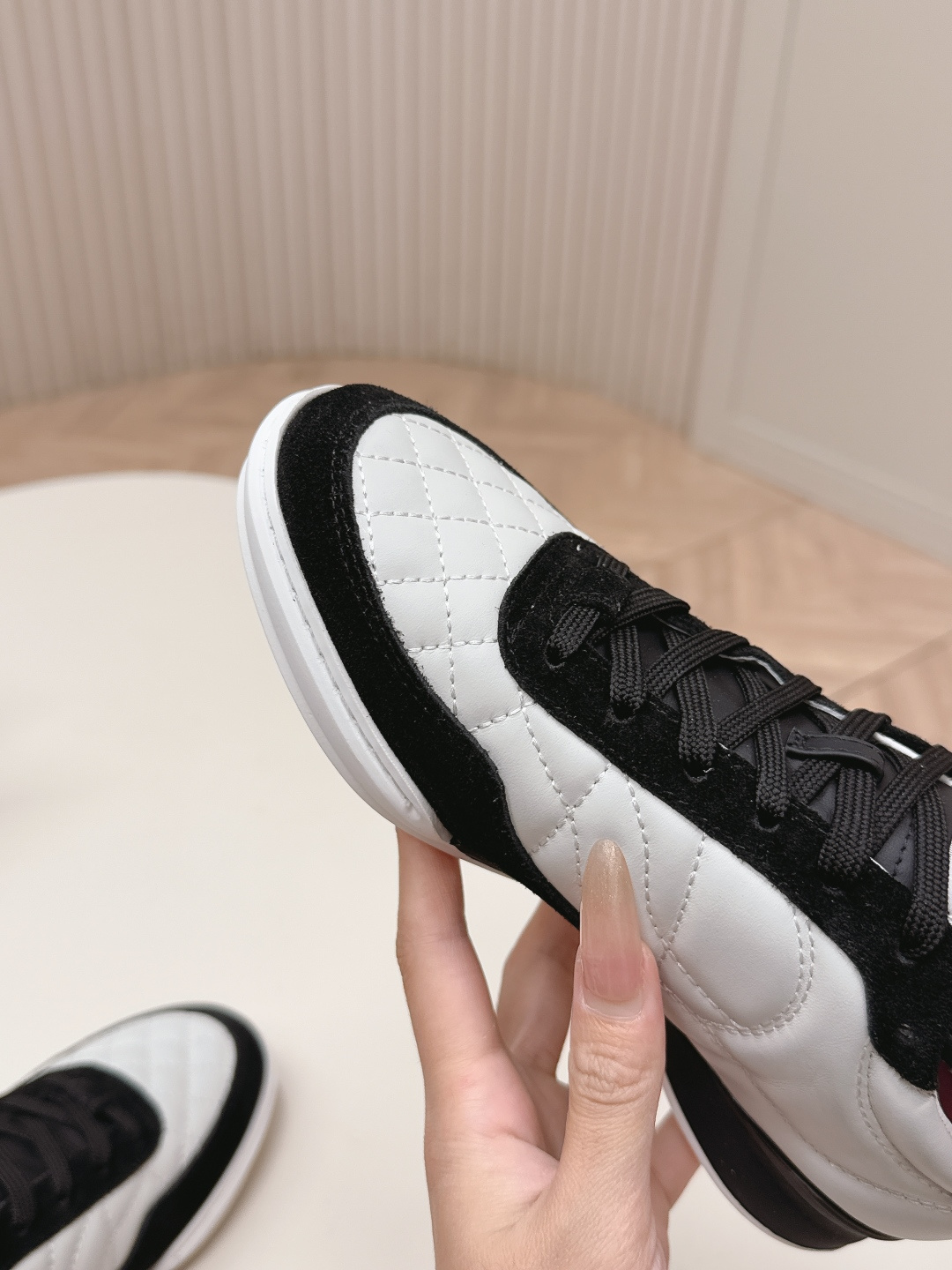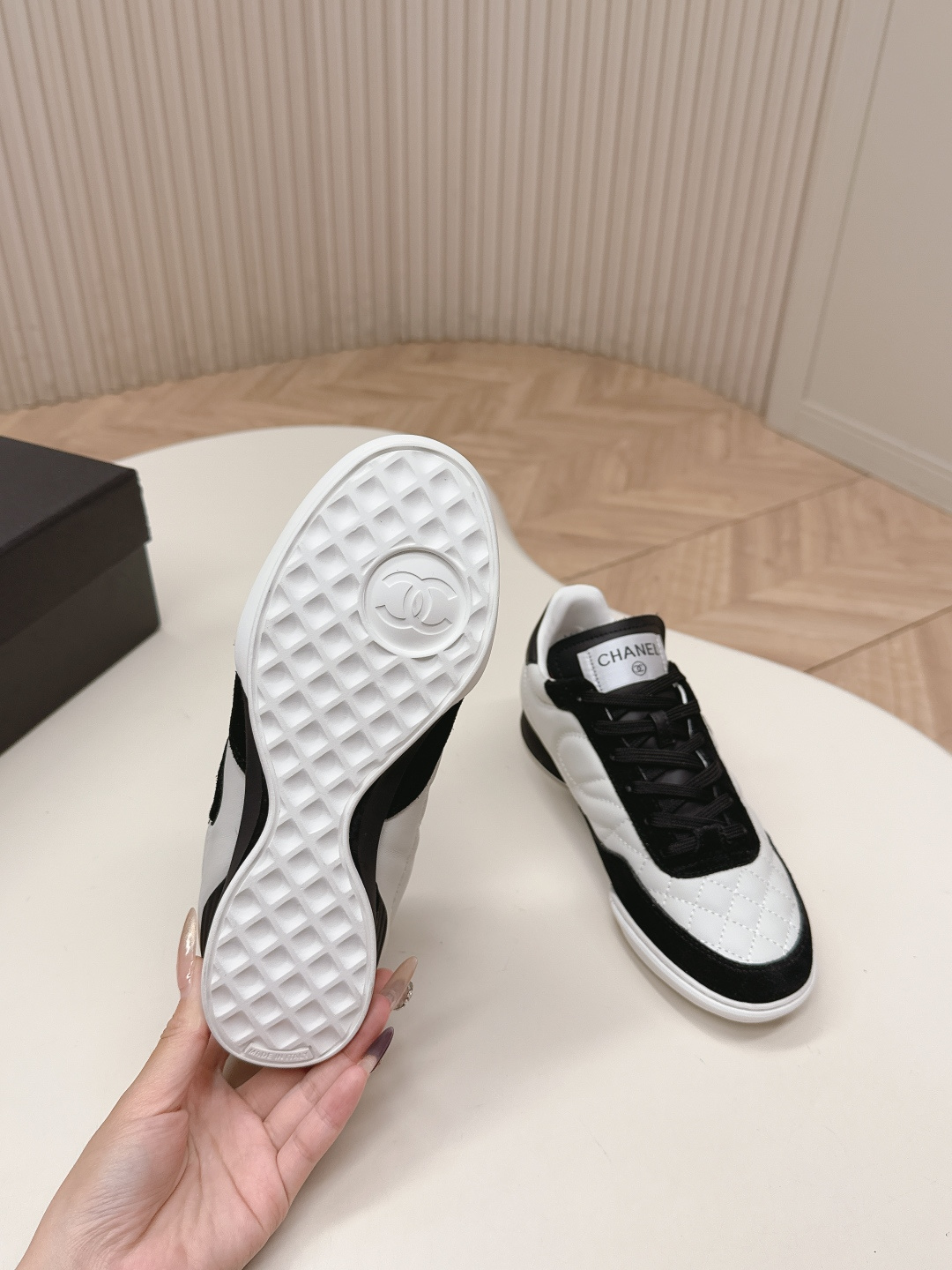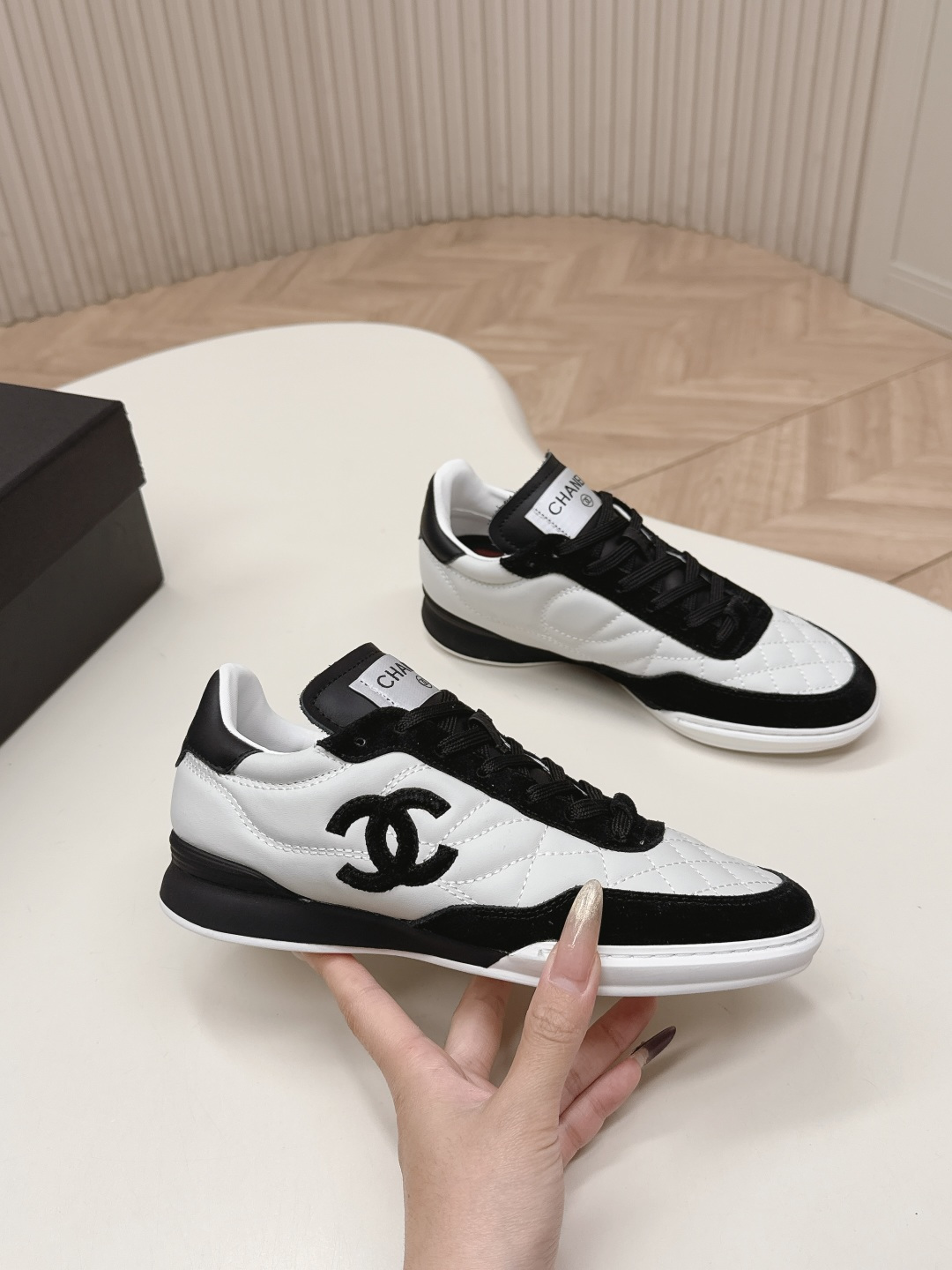 这款鞋子是AAAAA 1:1 质量 (非常棒). 使用了和原版一模一样的材料. 商标部分也保持了和香奈儿/Chanel一样. 图片拍摄是实物鞋子拍摄, 您所收到的实物保证和我们图片一模一样.
