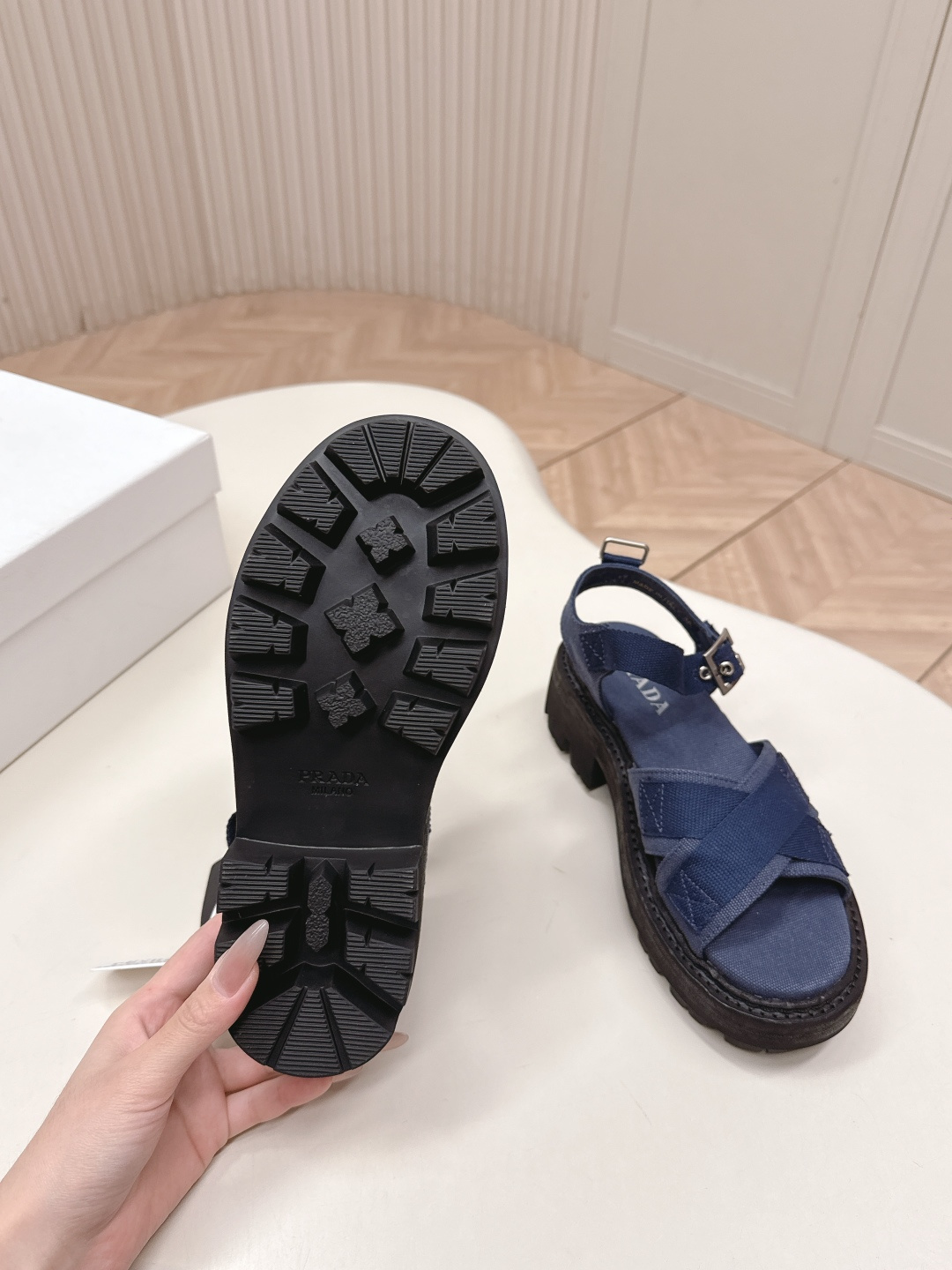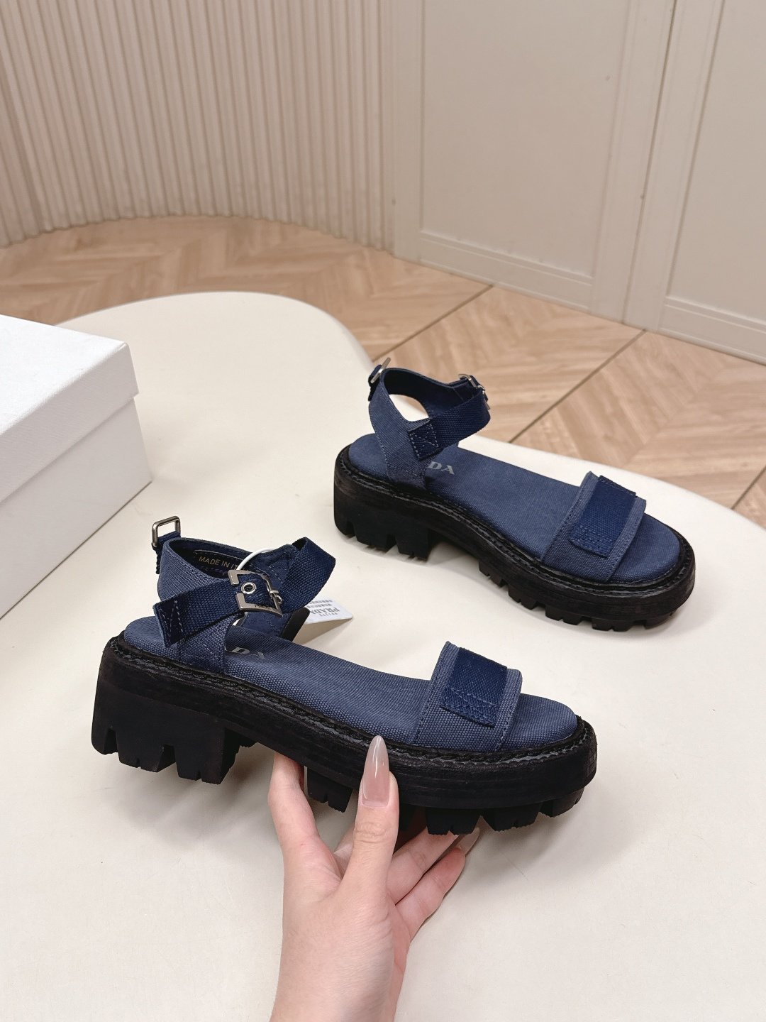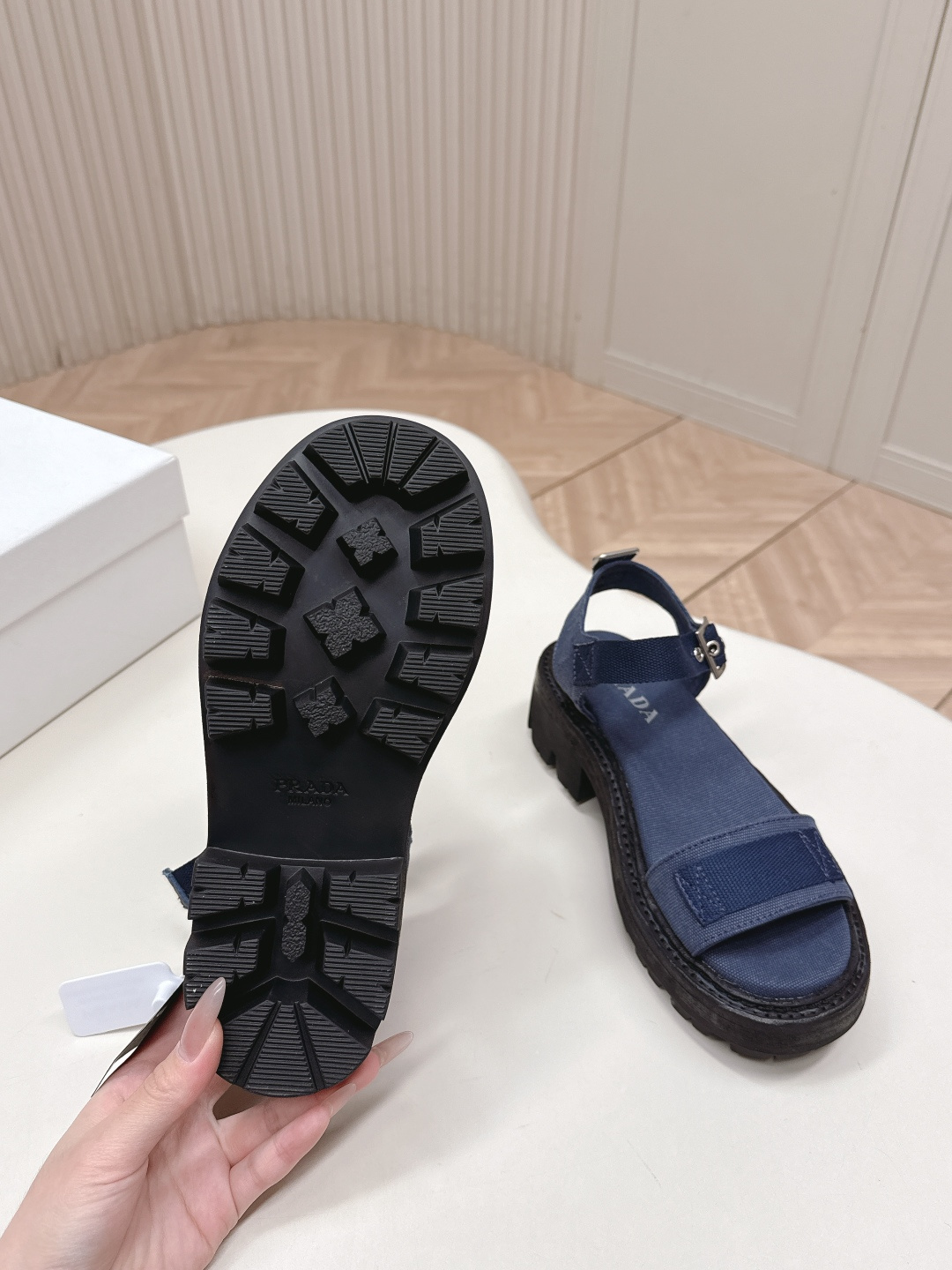 这款鞋子是AAAAA 1:1 质量 (非常棒). 使用了和原版一模一样的材料. 商标部分也保持了和普拉达/Prada一样. 图片拍摄是实物鞋子拍摄, 您所收到的实物保证和我们图片一模一样.