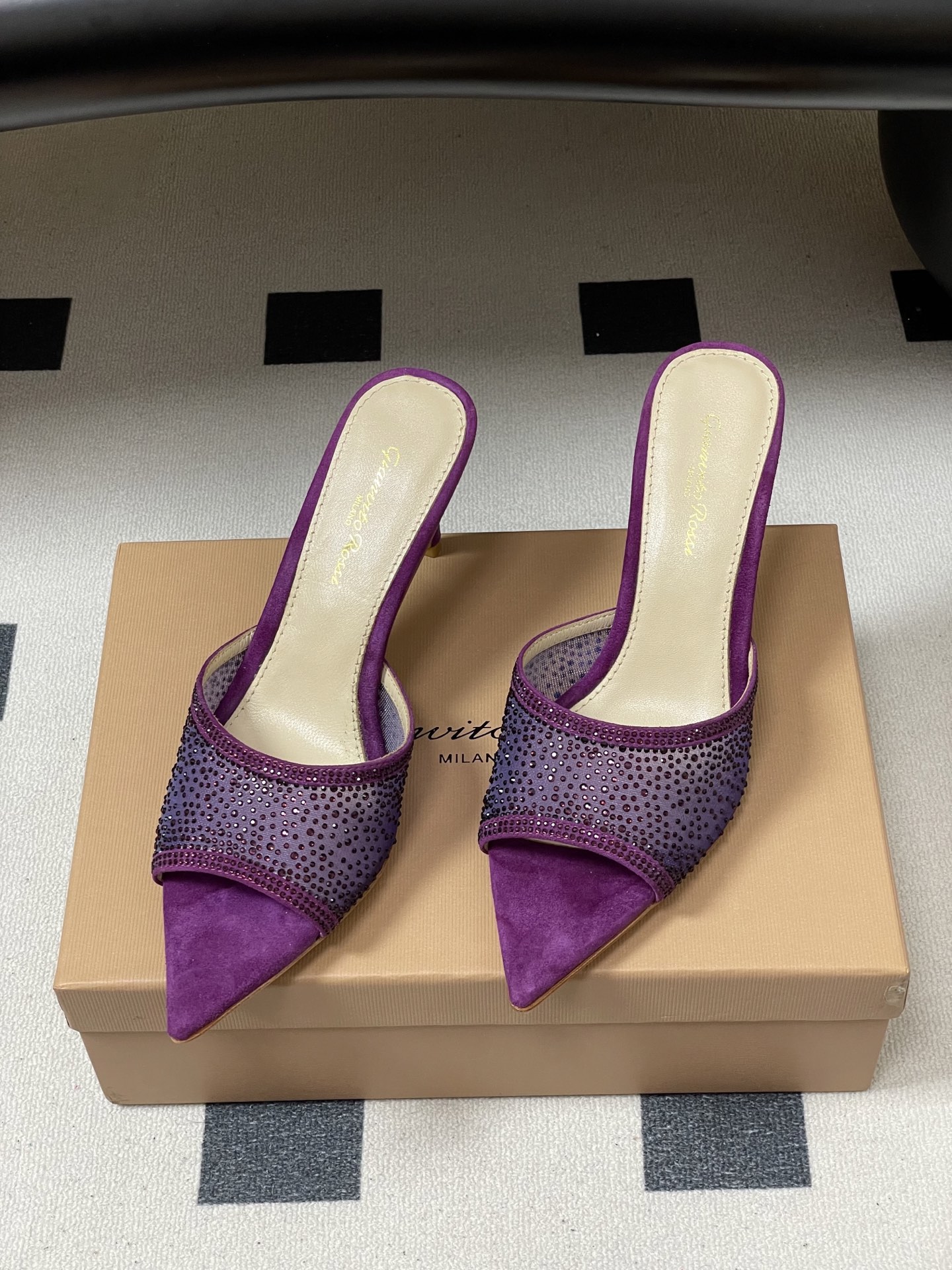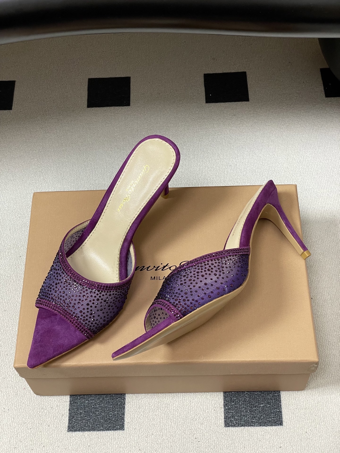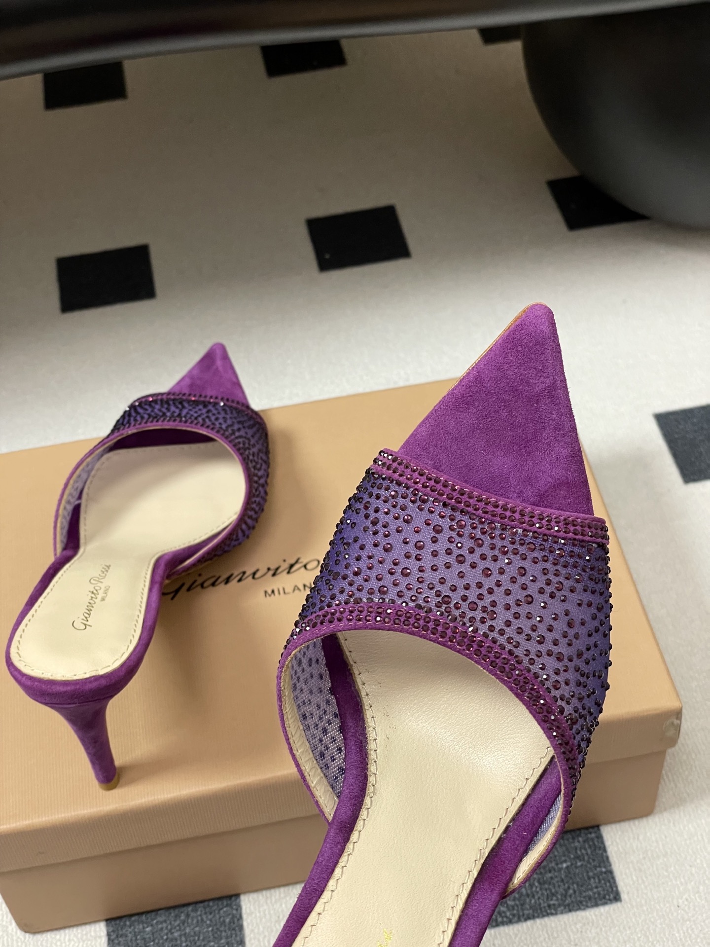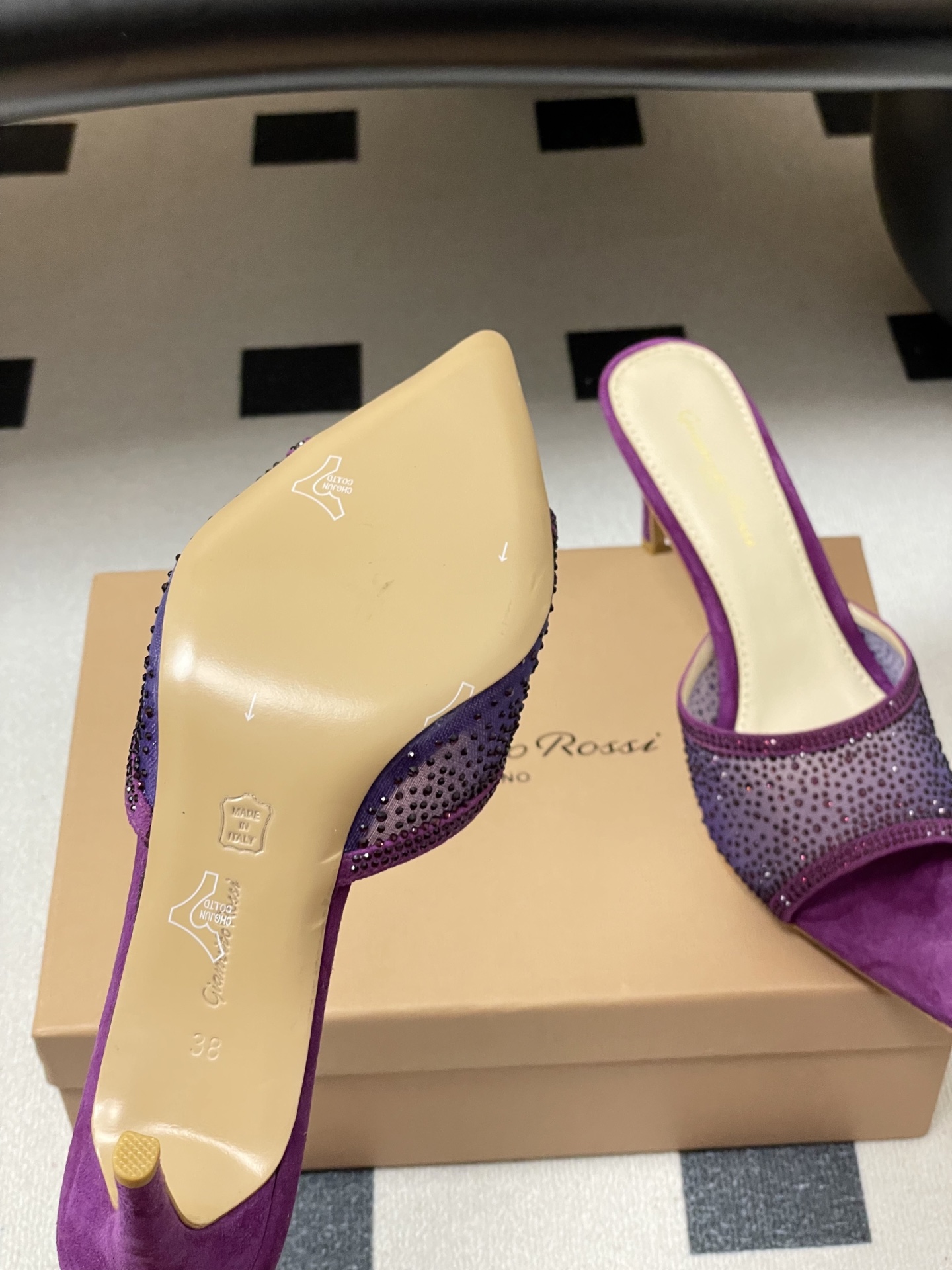 这款鞋子是AAAAA 1:1 质量 (非常棒). 使用了和原版一模一样的材料. 商标部分也保持了和Gianvito Rossi一样. 图片拍摄是实物鞋子拍摄, 您所收到的实物保证和我们图片一模一样.