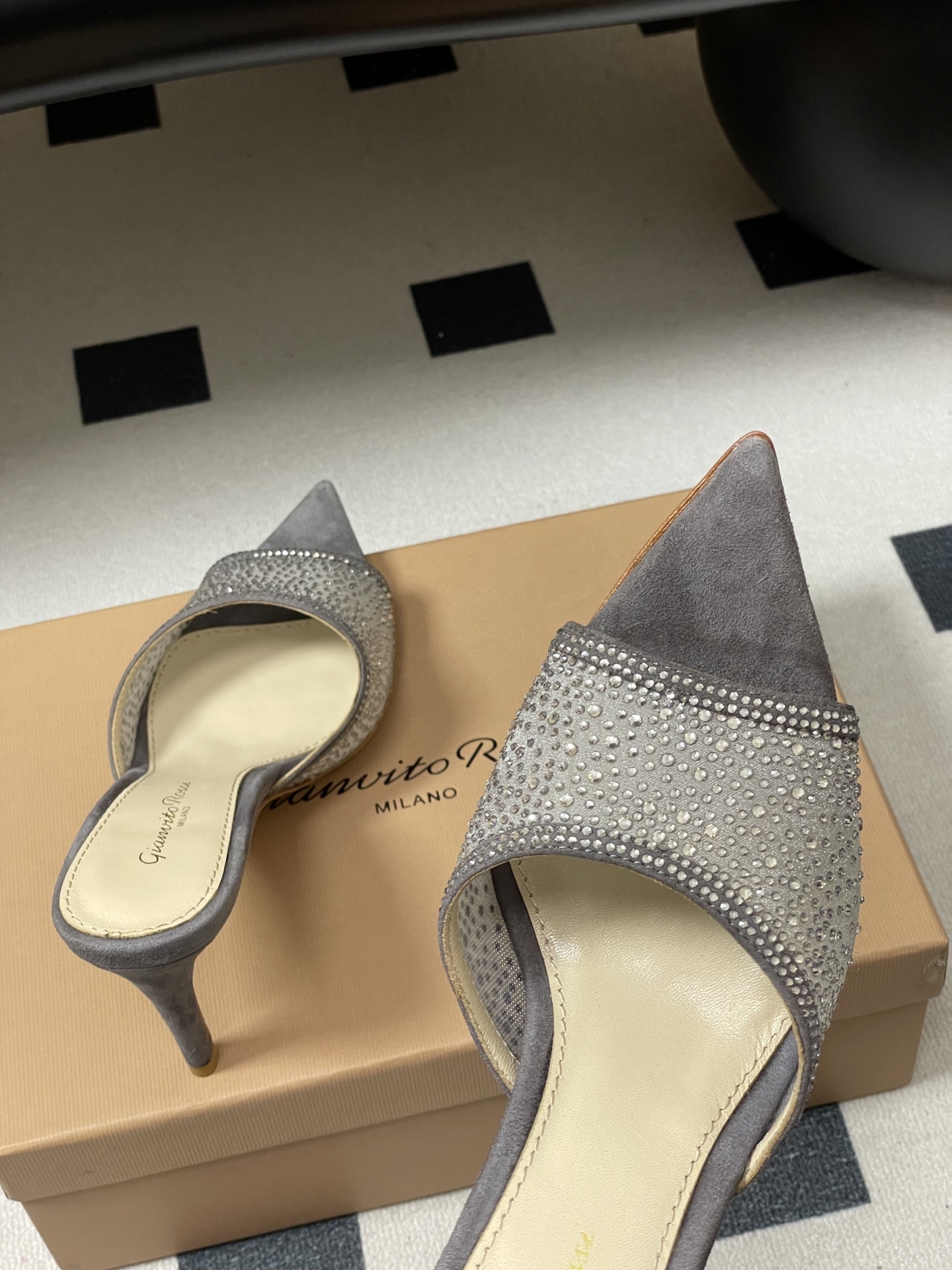 这款鞋子是AAAAA 1:1 质量 (非常棒). 使用了和原版一模一样的材料. 商标部分也保持了和Gianvito Rossi一样. 图片拍摄是实物鞋子拍摄, 您所收到的实物保证和我们图片一模一样.