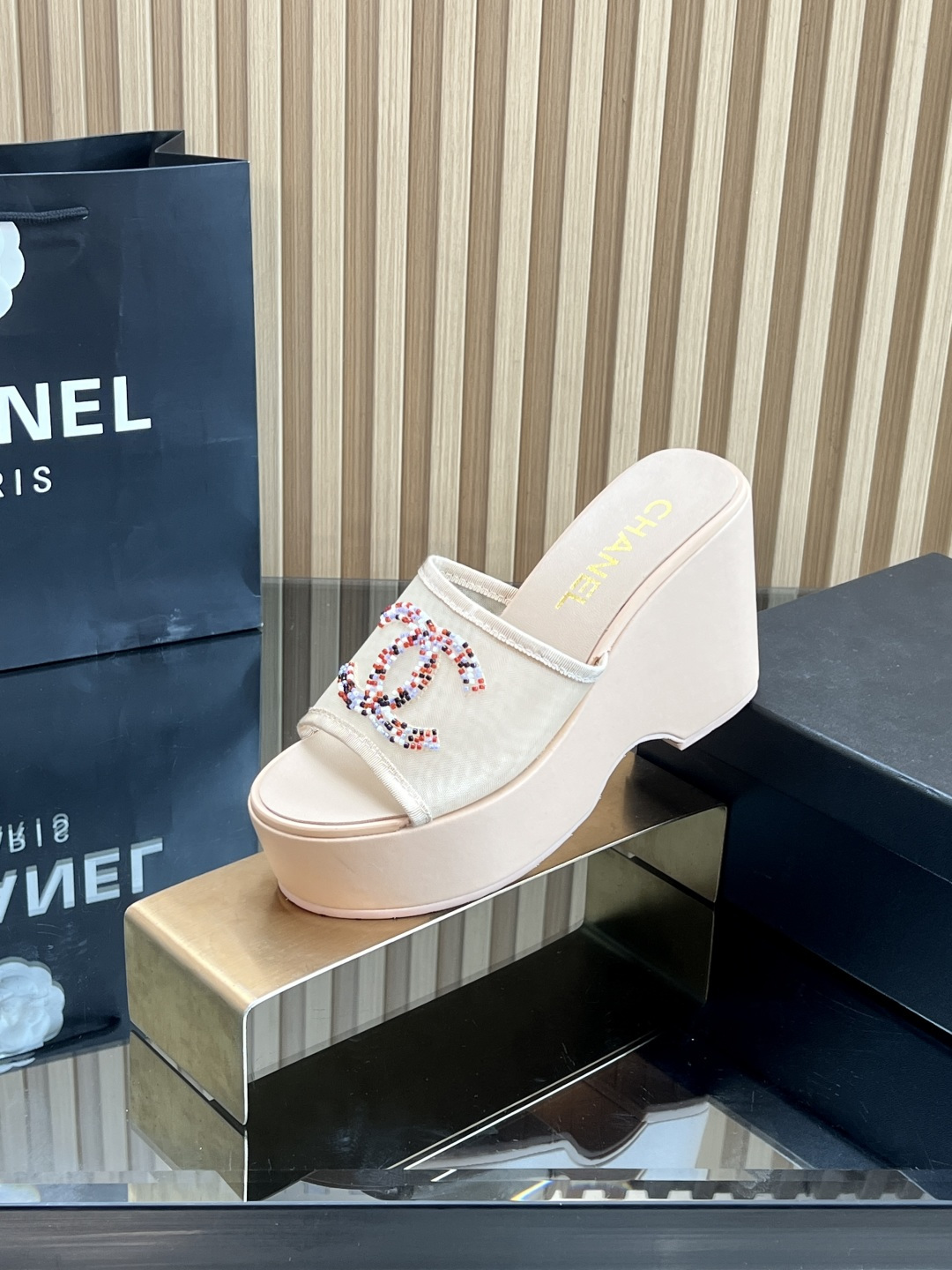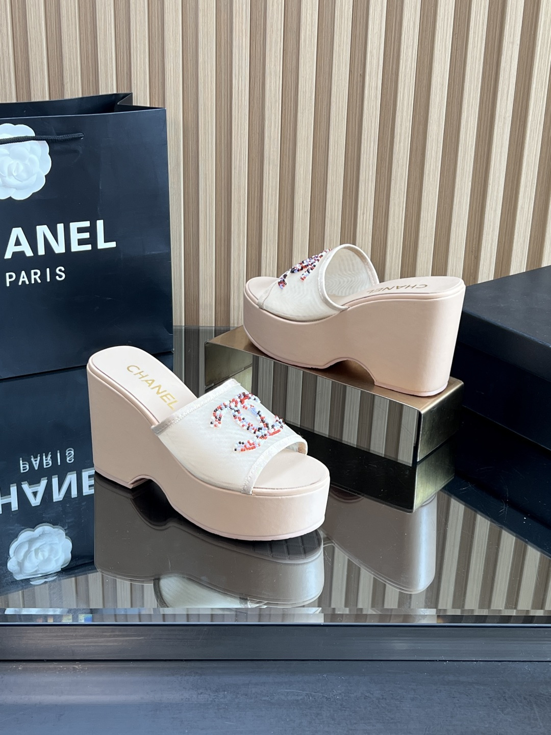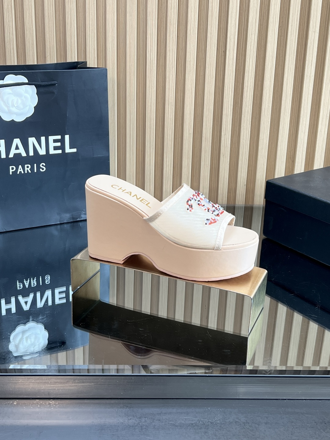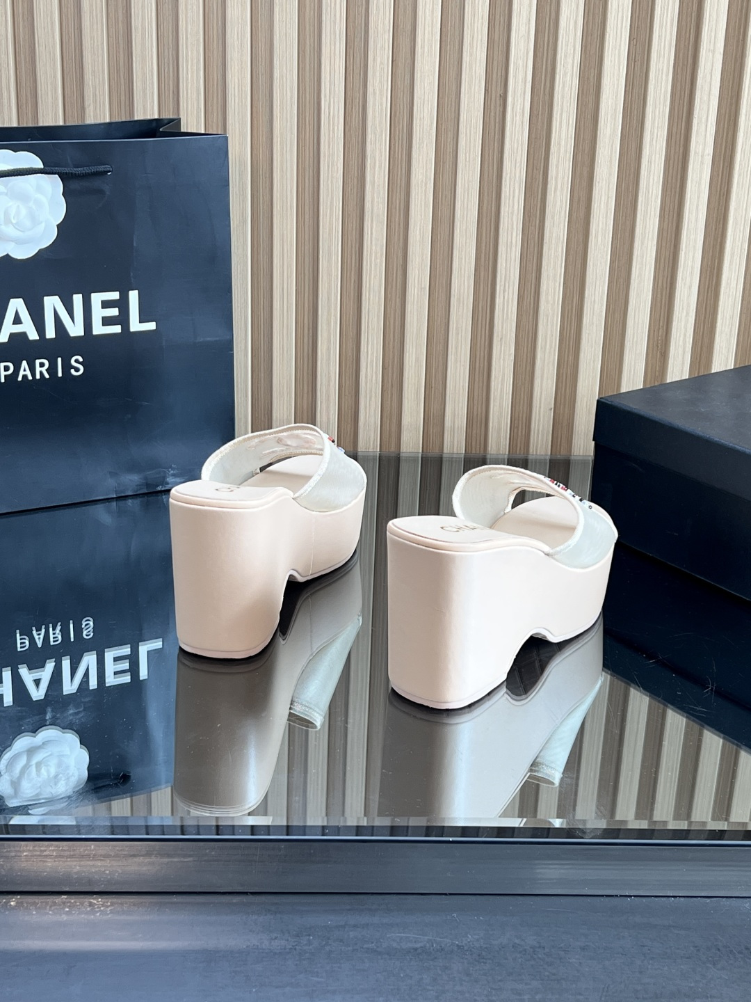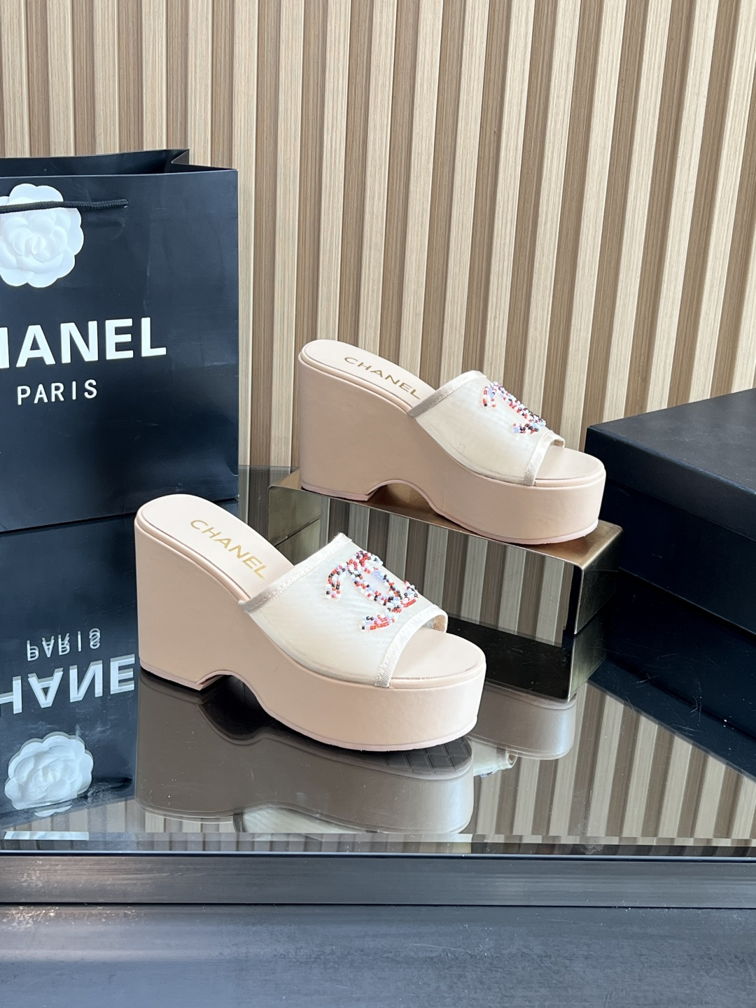 这款鞋子是AAAAA 1:1 质量 (非常棒). 使用了和原版一模一样的材料. 商标部分也保持了和香奈儿/Chanel一样. 图片拍摄是实物鞋子拍摄, 您所收到的实物保证和我们图片一模一样.