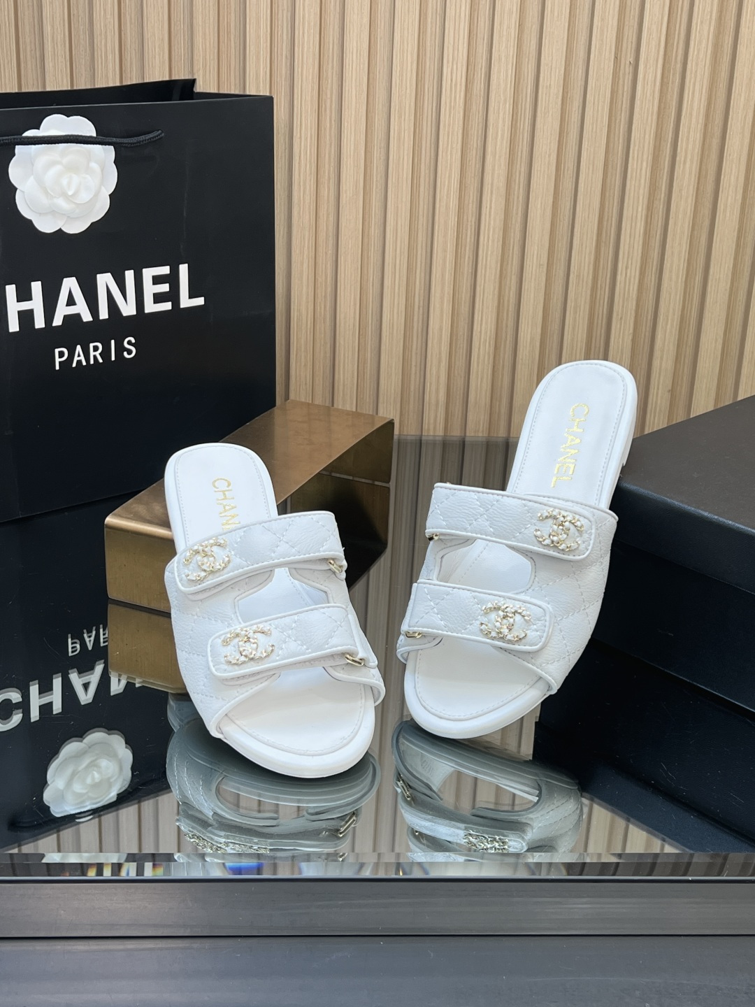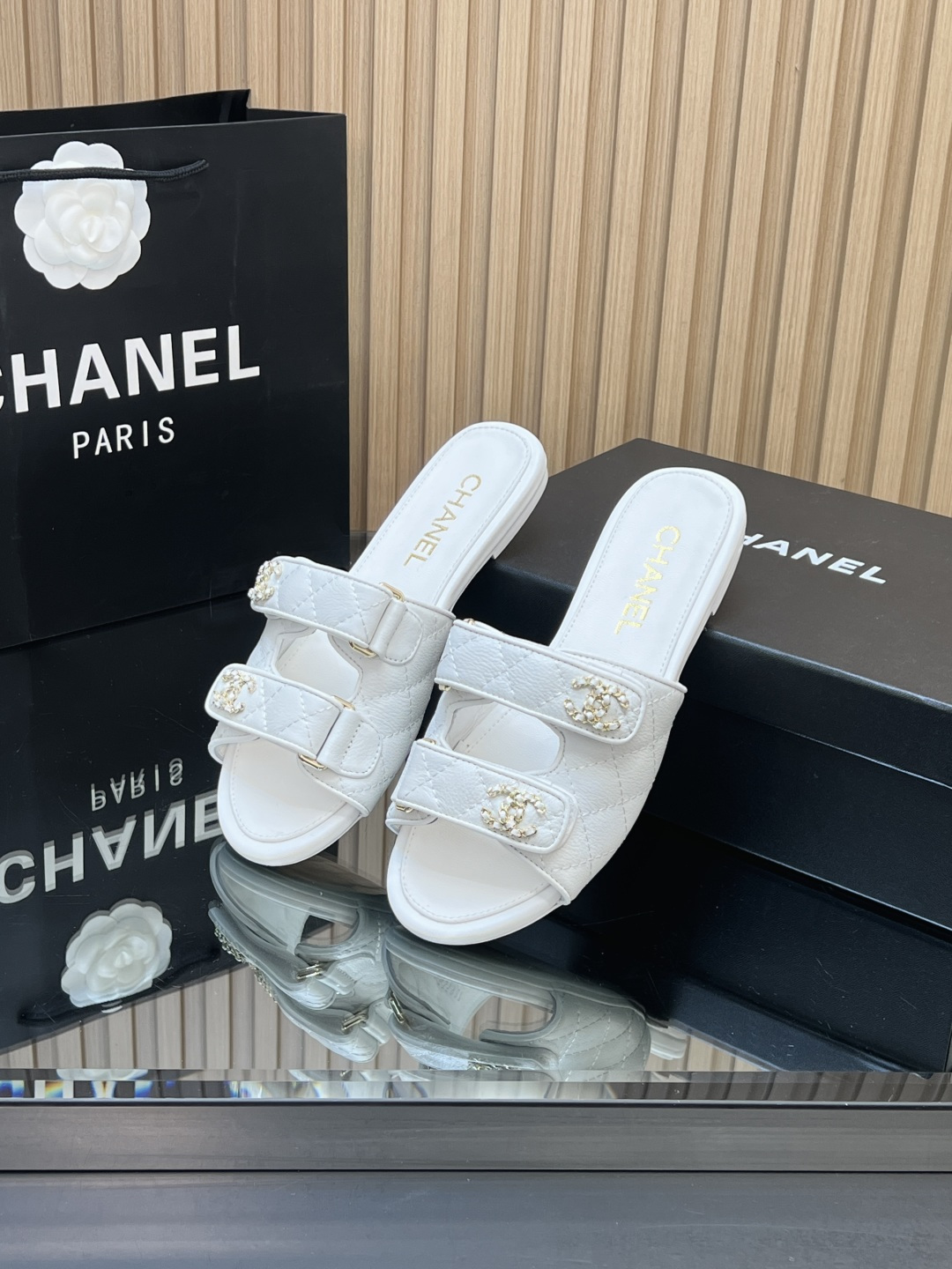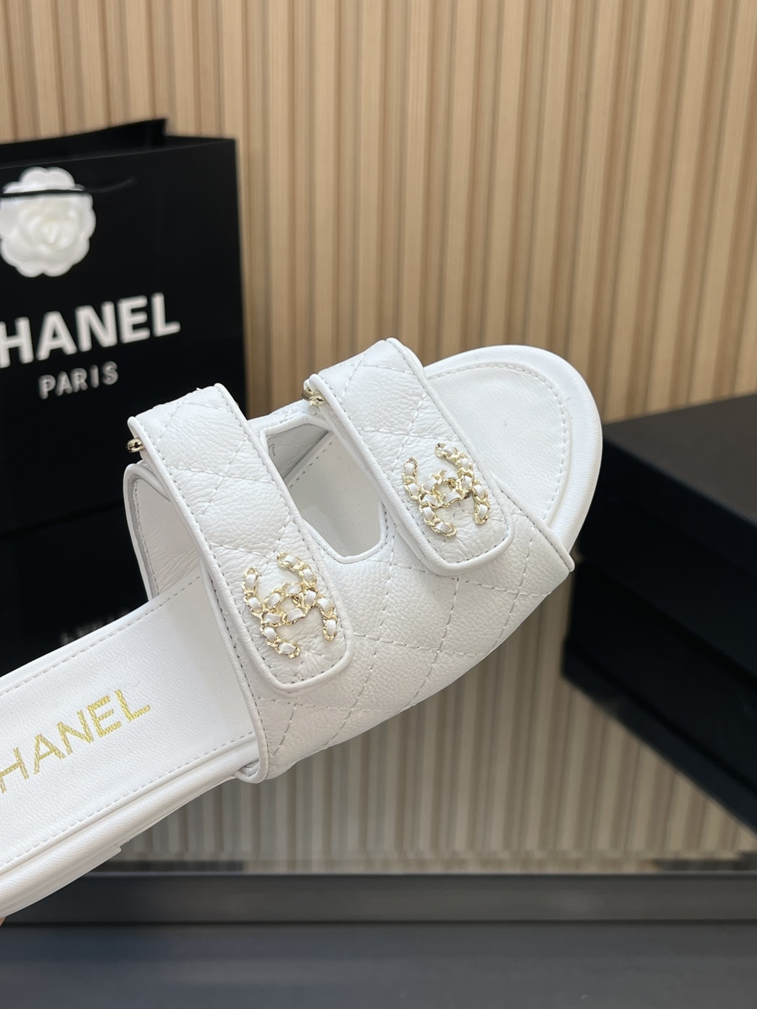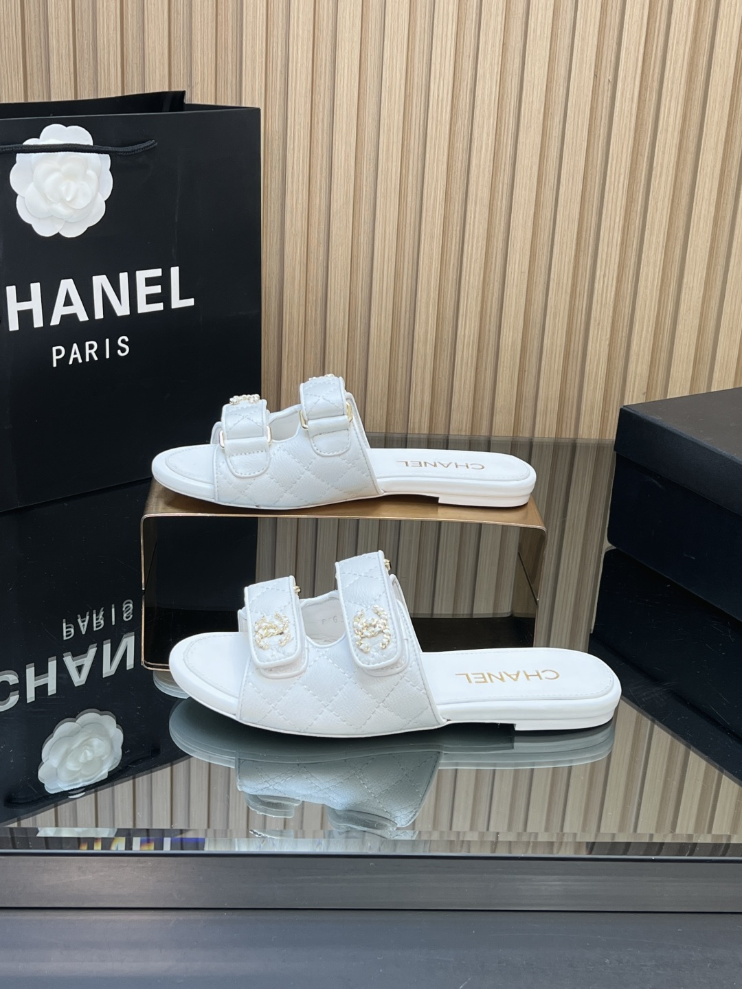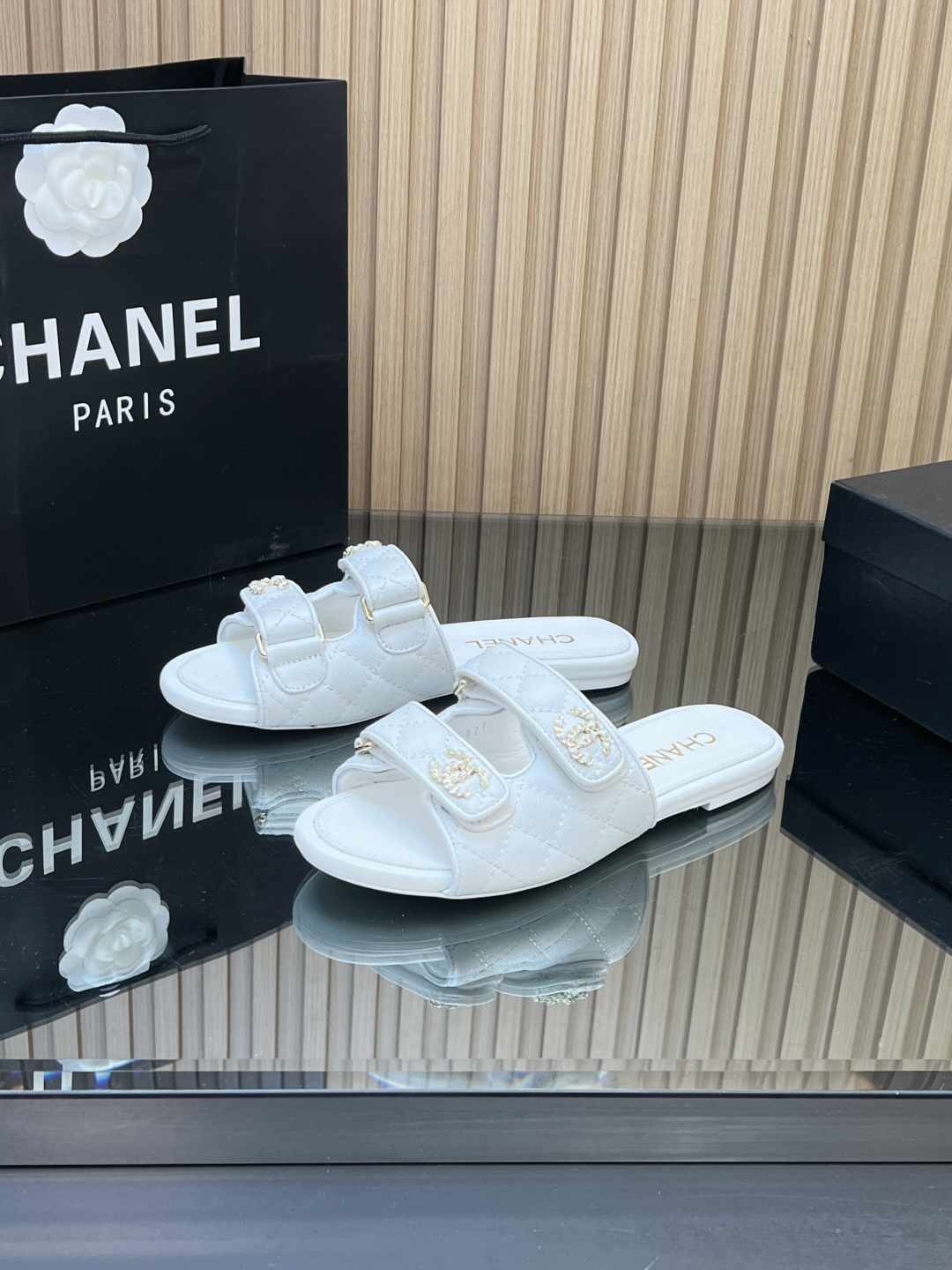 这款鞋子是AAAAA 1:1 质量 (非常棒). 使用了和原版一模一样的材料. 商标部分也保持了和香奈儿/Chanel一样. 图片拍摄是实物鞋子拍摄, 您所收到的实物保证和我们图片一模一样.