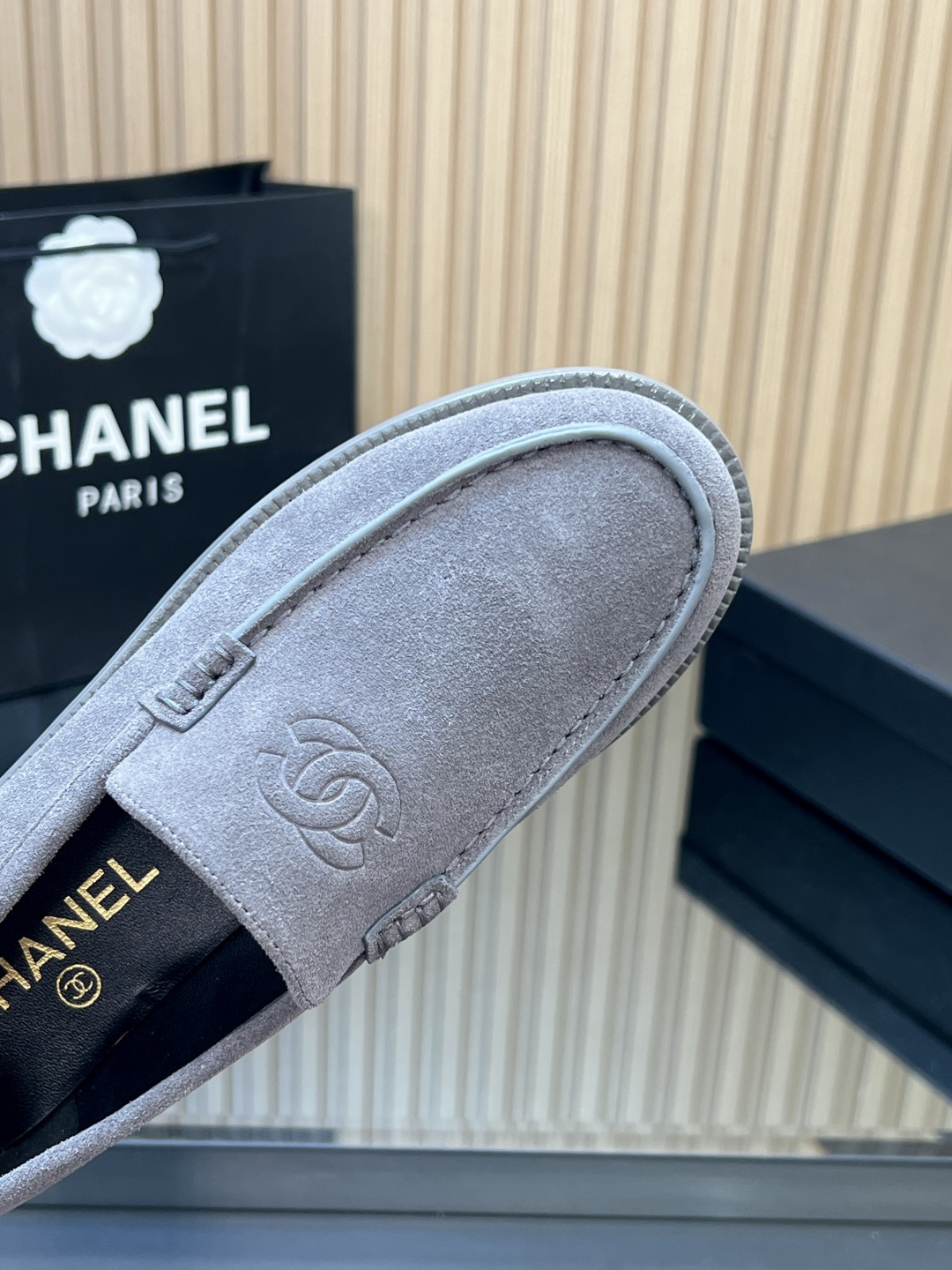 这款鞋子是AAAAA 1:1 质量 (非常棒). 使用了和原版一模一样的材料. 商标部分也保持了和香奈儿/Chanel一样. 图片拍摄是实物鞋子拍摄, 您所收到的实物保证和我们图片一模一样.