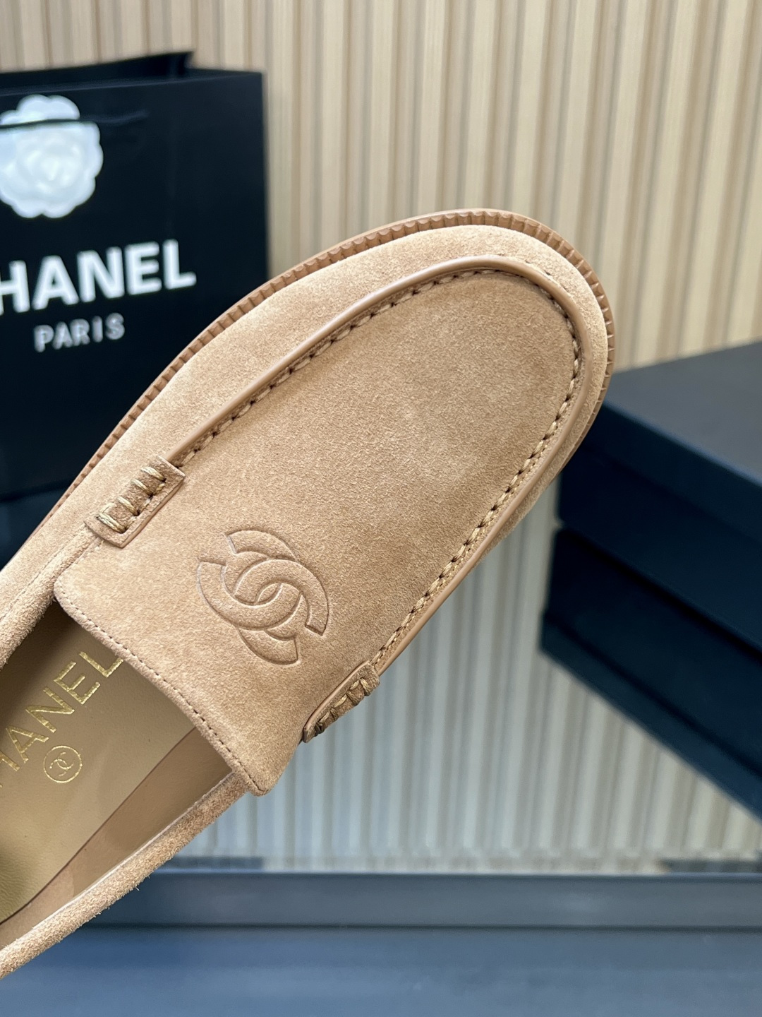 这款鞋子是AAAAA 1:1 质量 (非常棒). 使用了和原版一模一样的材料. 商标部分也保持了和香奈儿/Chanel一样. 图片拍摄是实物鞋子拍摄, 您所收到的实物保证和我们图片一模一样.