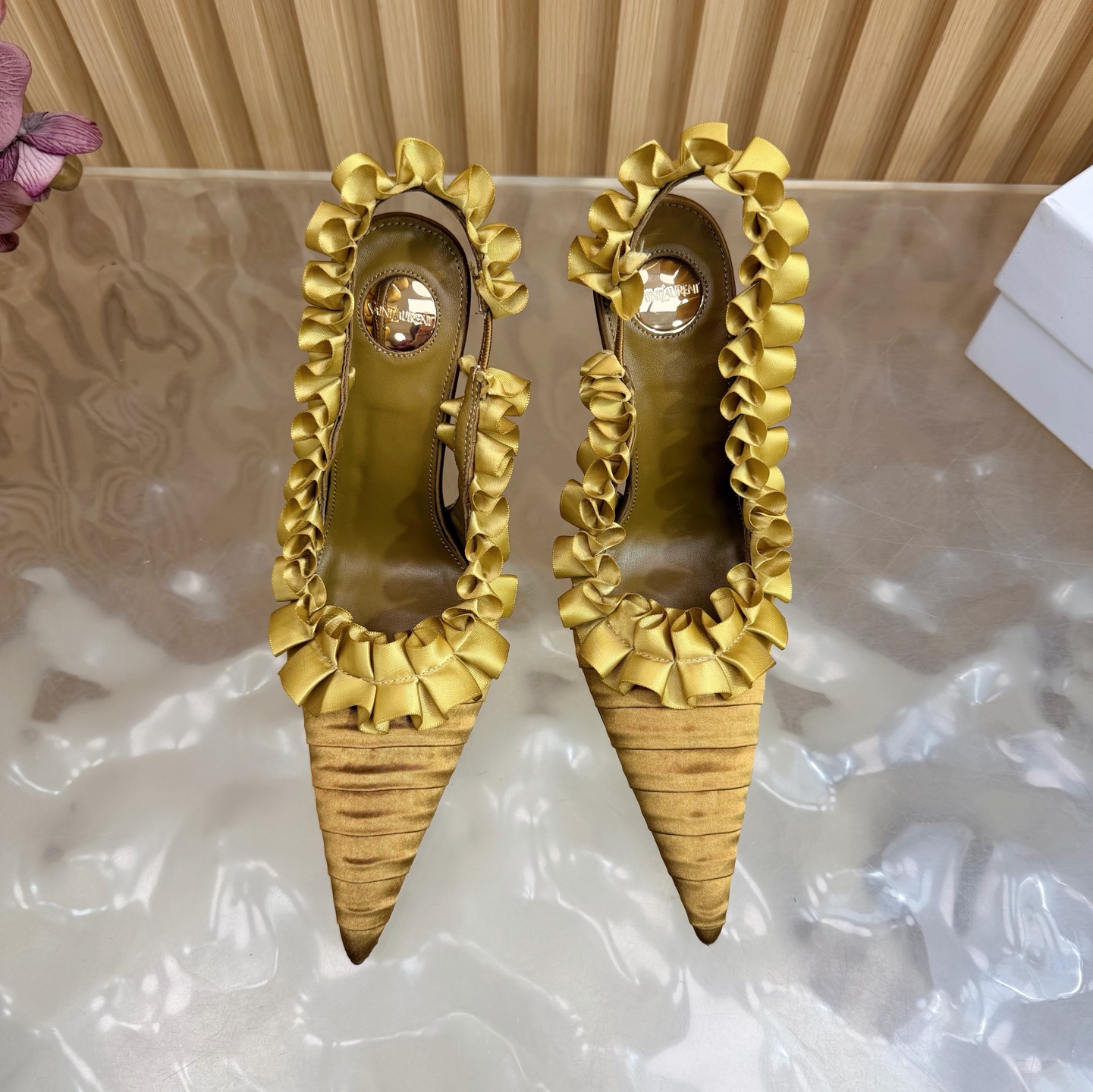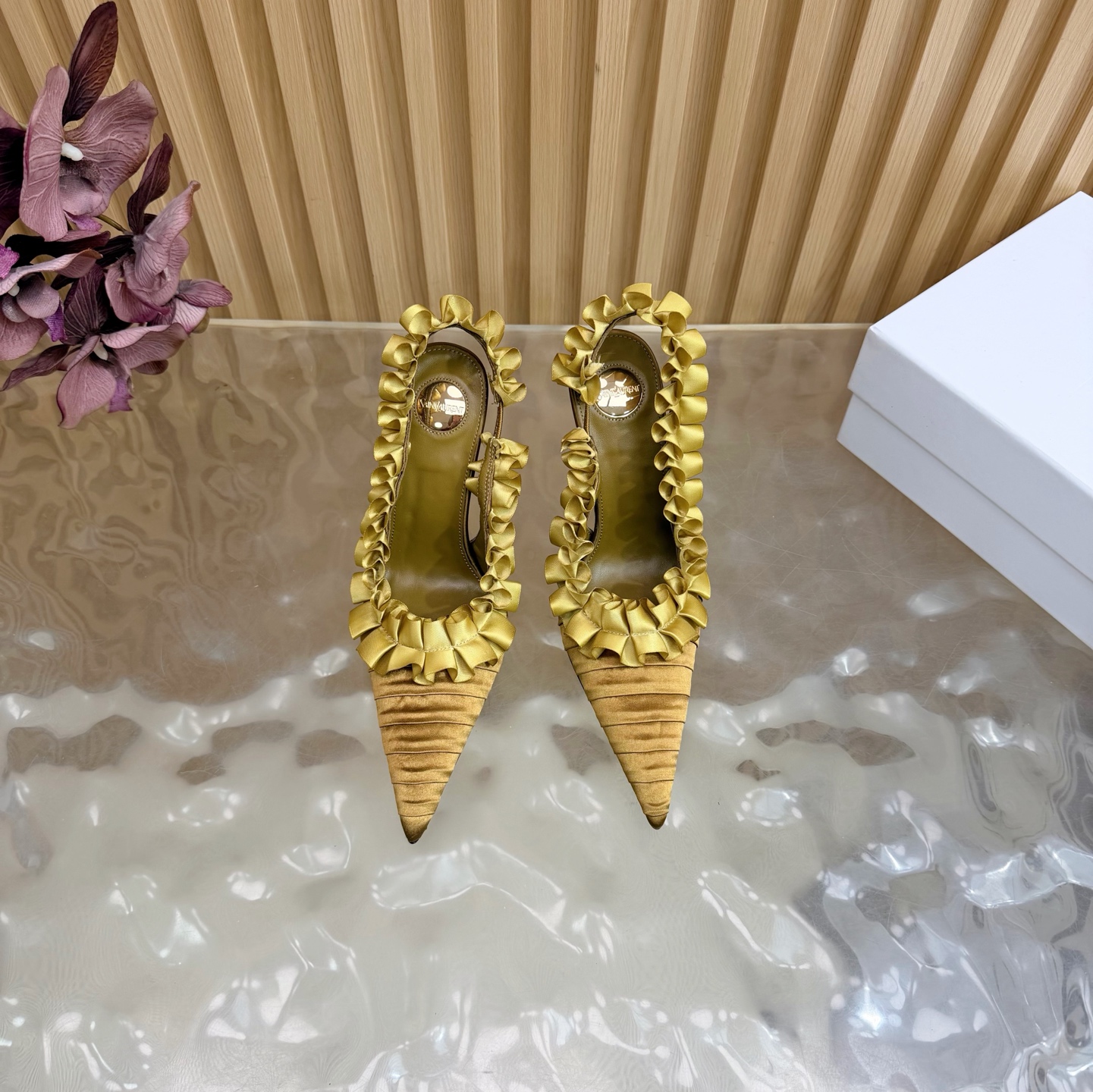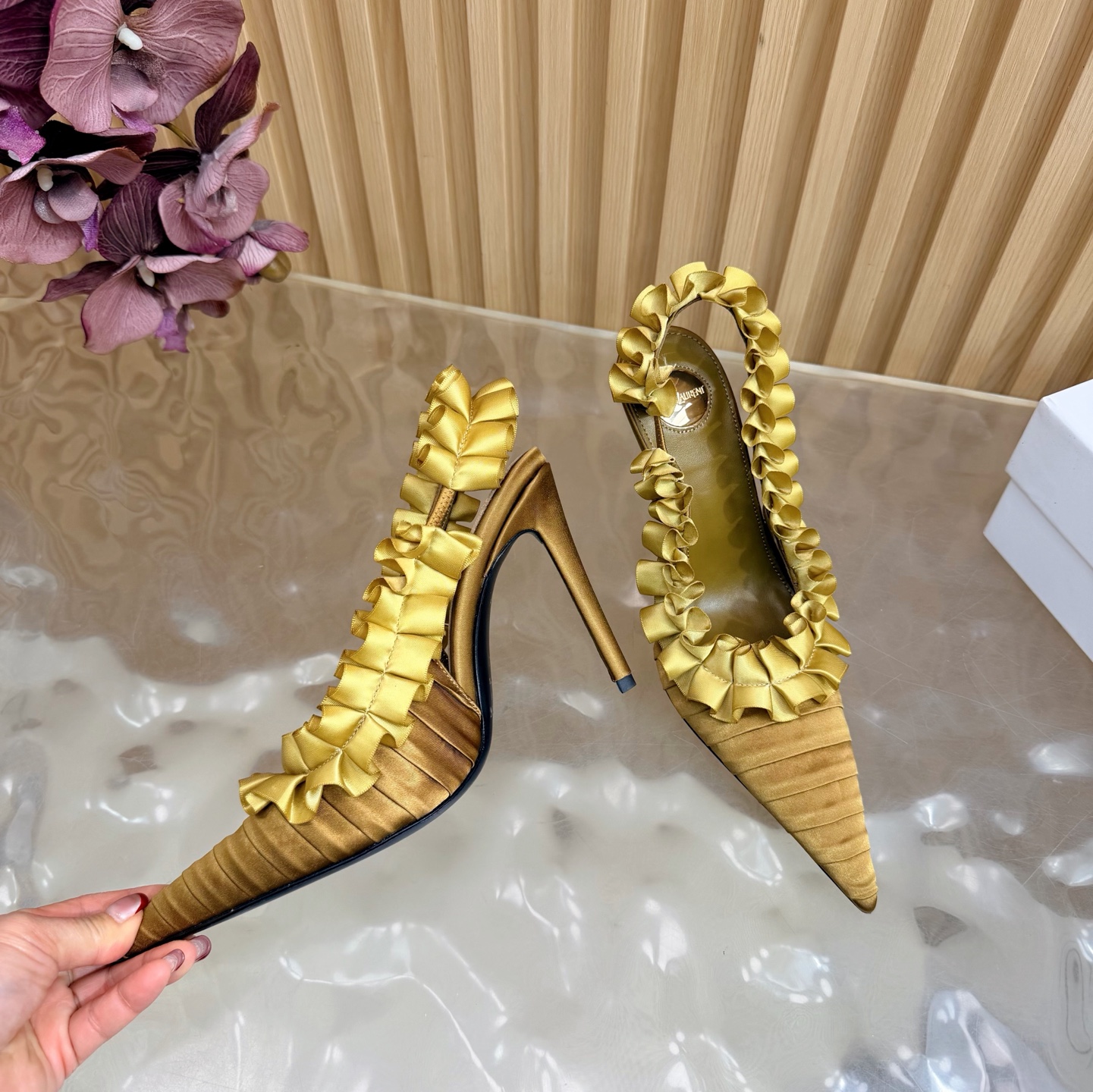 这款鞋子是AAAAA 1:1 质量 (非常棒). 使用了和原版一模一样的材料. 商标部分也保持了和圣罗兰/Saint Laurent一样. 图片拍摄是实物鞋子拍摄, 您所收到的实物保证和我们图片一模一样.