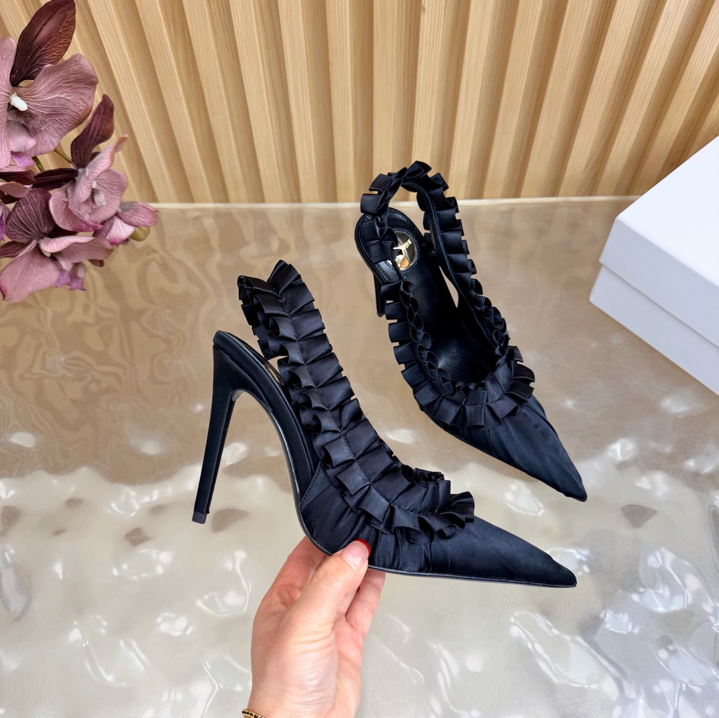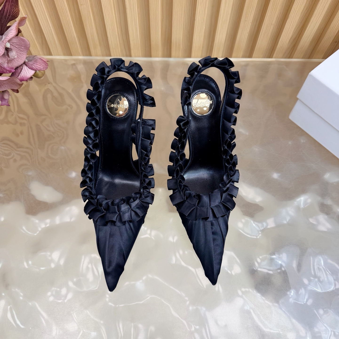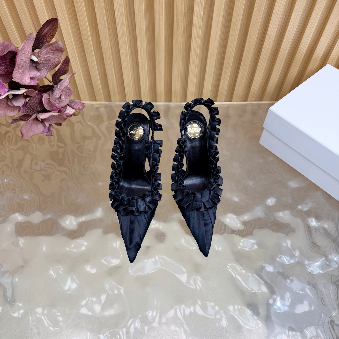 这款鞋子是AAAAA 1:1 质量 (非常棒). 使用了和原版一模一样的材料. 商标部分也保持了和圣罗兰/Saint Laurent一样. 图片拍摄是实物鞋子拍摄, 您所收到的实物保证和我们图片一模一样.