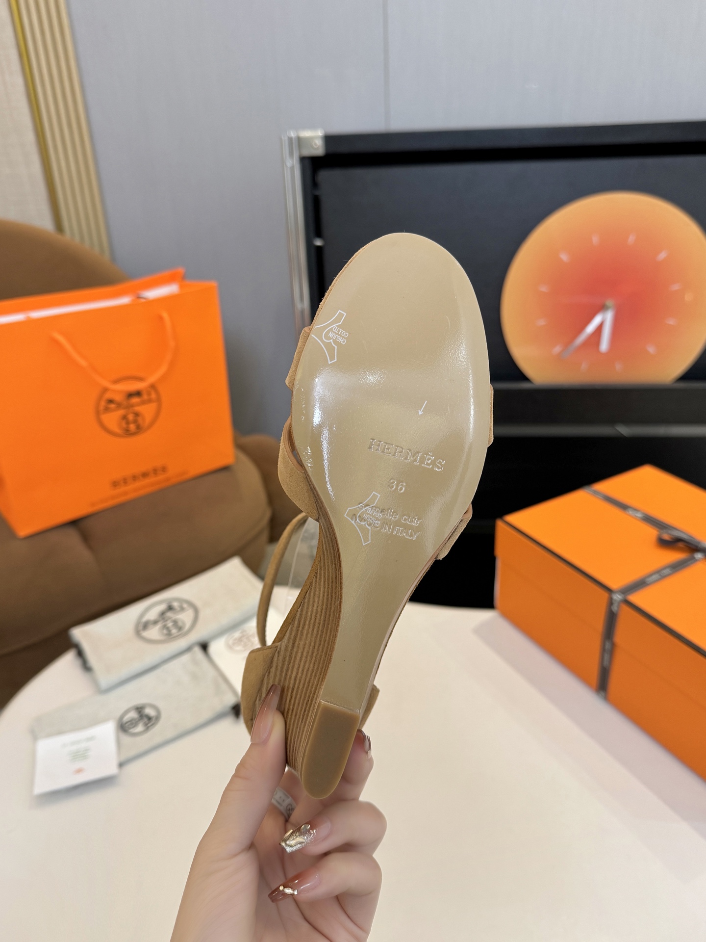 这款鞋子是AAAAA 1:1 质量 (非常棒). 使用了和原版一模一样的材料. 商标部分也保持了和爱马仕/Hermes一样. 图片拍摄是实物鞋子拍摄, 您所收到的实物保证和我们图片一模一样.