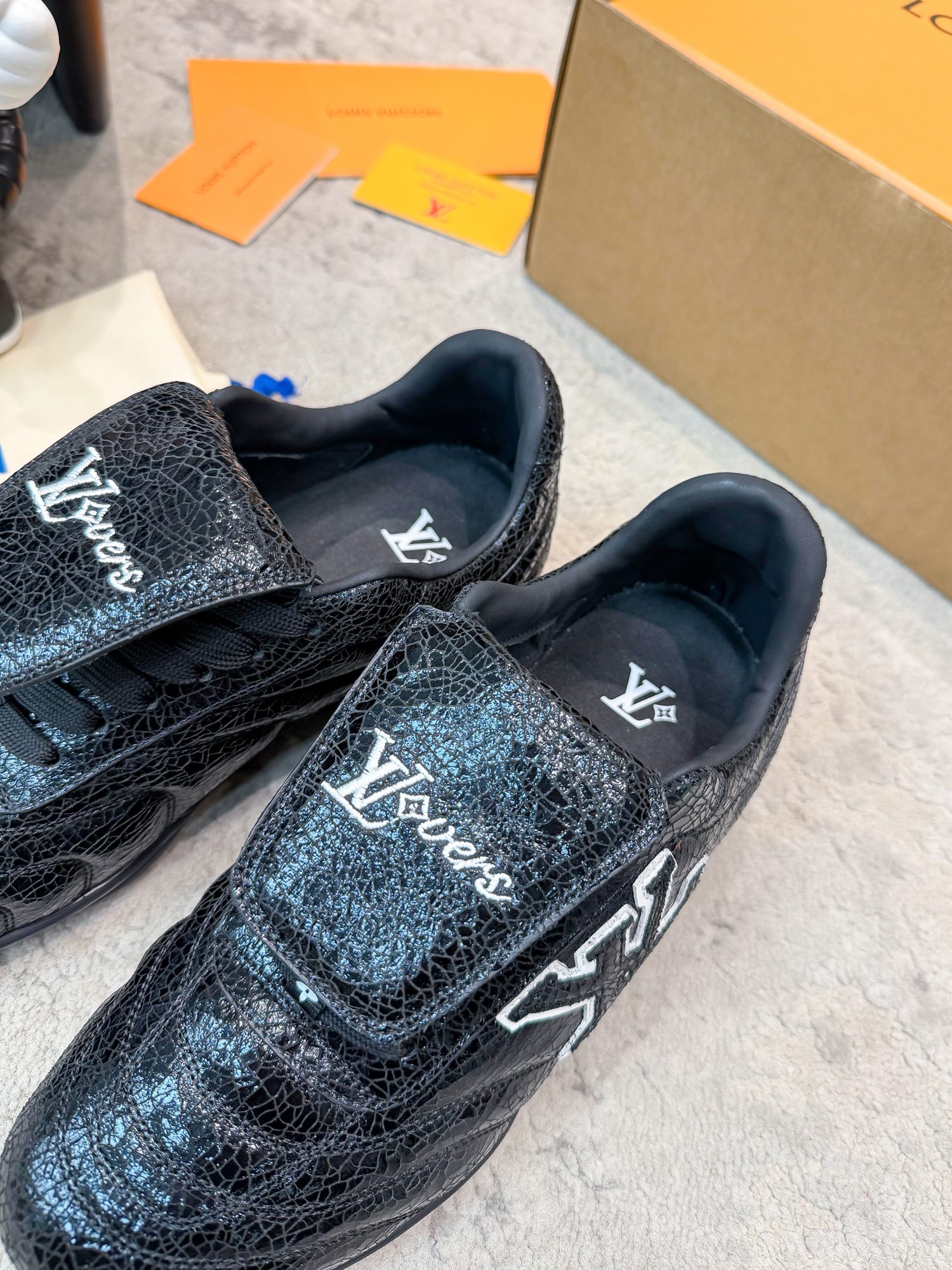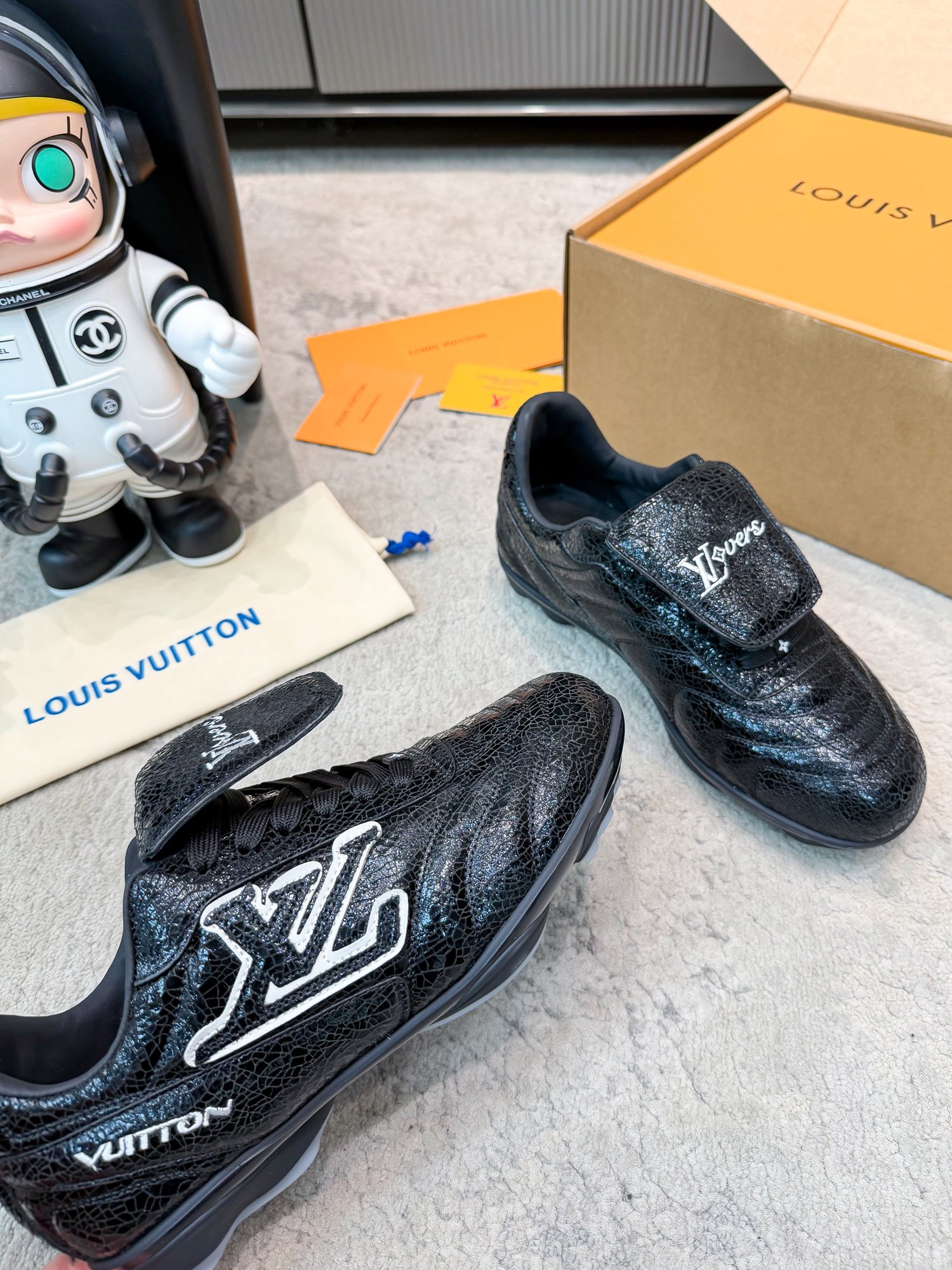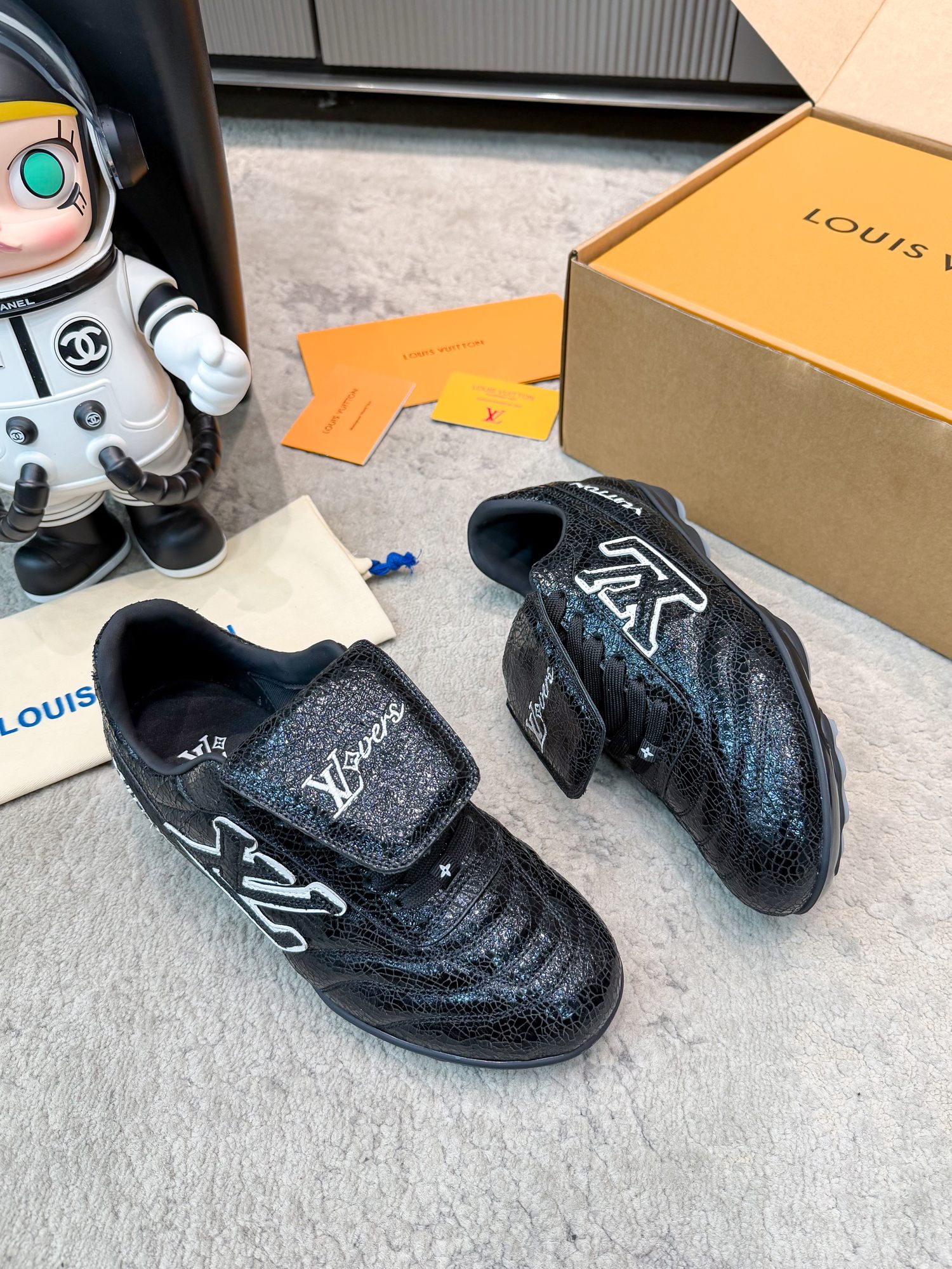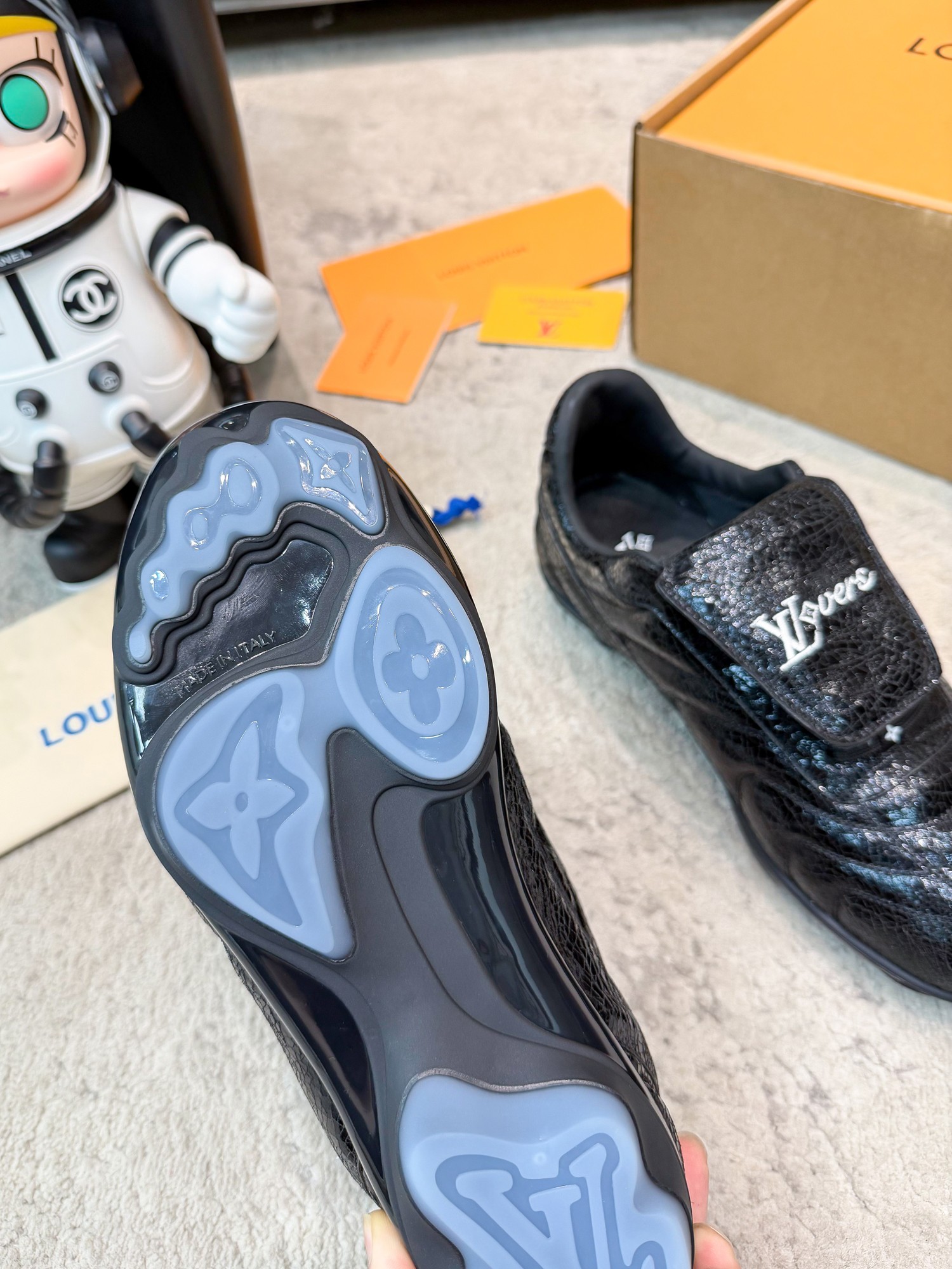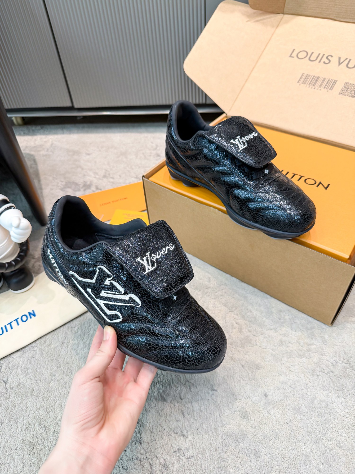 这款鞋子是AAAAA 1:1 质量 (非常棒). 使用了和原版一模一样的材料. 商标部分也保持了和路易威登/Louis Vuitton一样. 图片拍摄是实物鞋子拍摄, 您所收到的实物保证和我们图片一模一样.